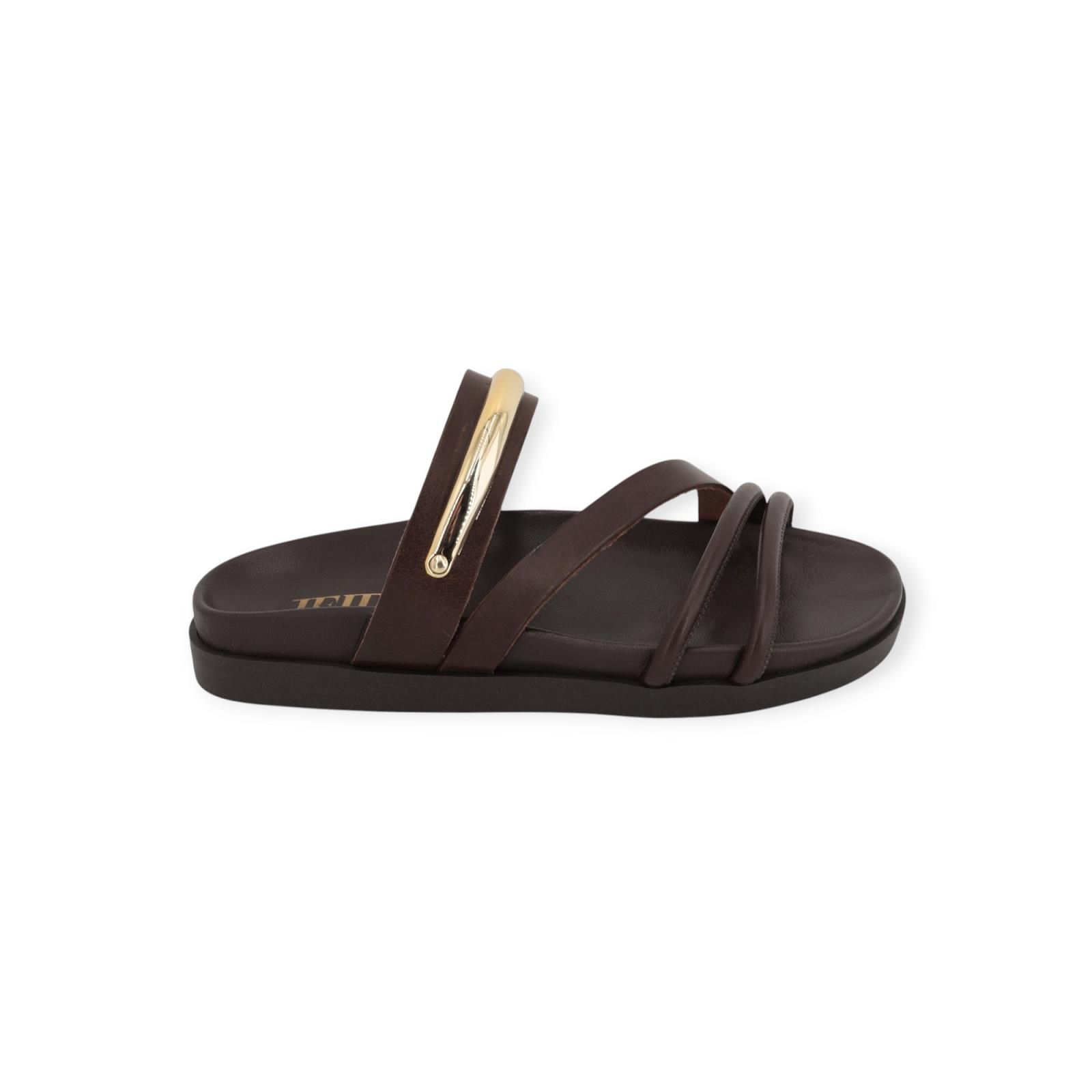 Slipper, Muil J905 van Jeida voor dames. Deze slipper is met fijne zwarte bandjes over de wreef. Mooi afgewerkt met gouden boekel. Is op een aangenaam leren voetbed met antislip buitenzool.