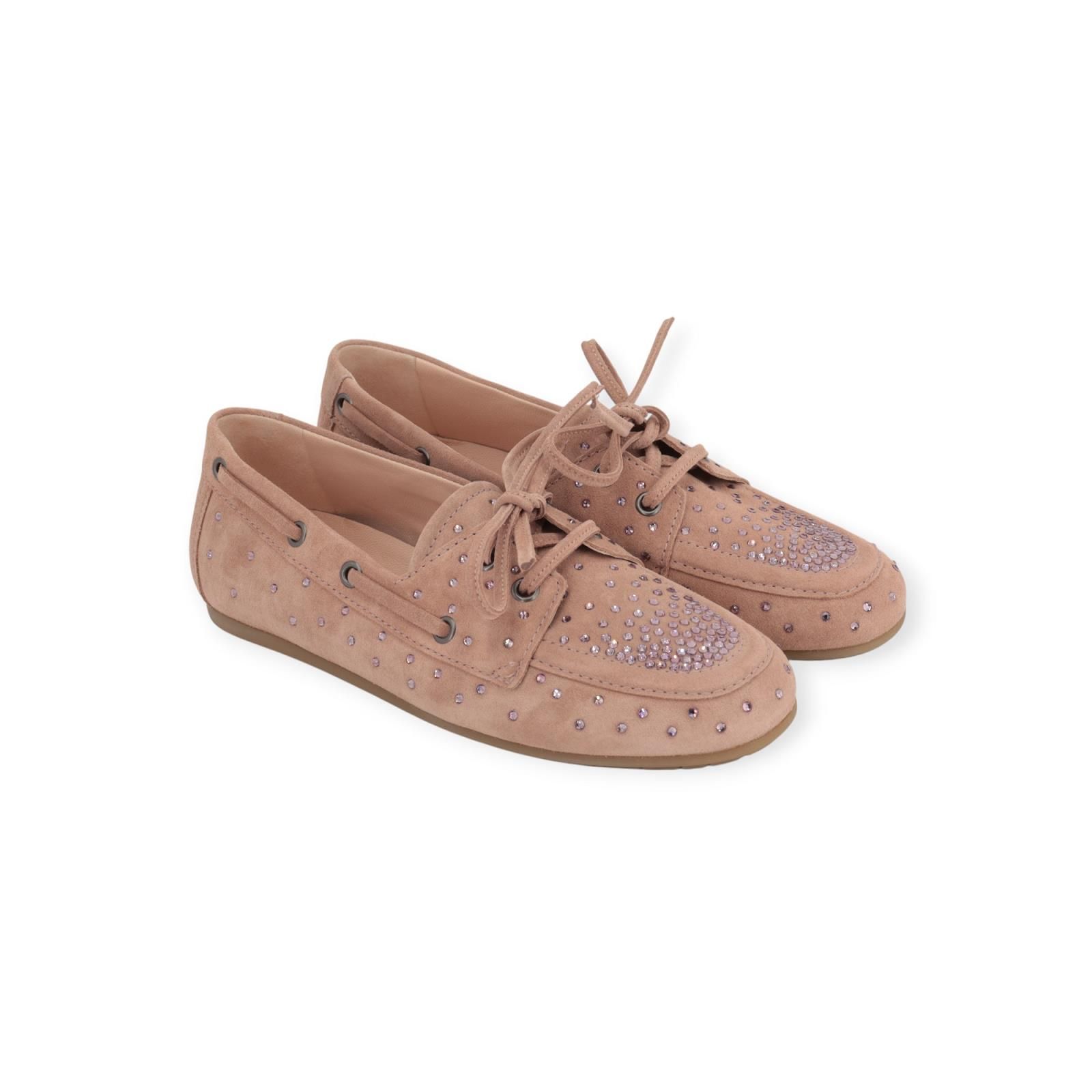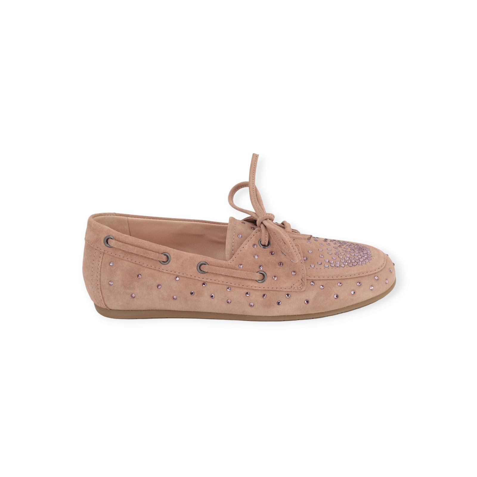 Mocassin Drop van Kennel & Schmenger voor dames. Deze mocassin is in zacht roze suède. Afgewerkt met roze steentjes. Deze geven de klassieke mocassin een moderne ietwat rock-chique uitstraling. Heeft een zachte flexibele zool die bijzonder licht en comfortabel aanvoelt. De binnenzool is uitneembaar.