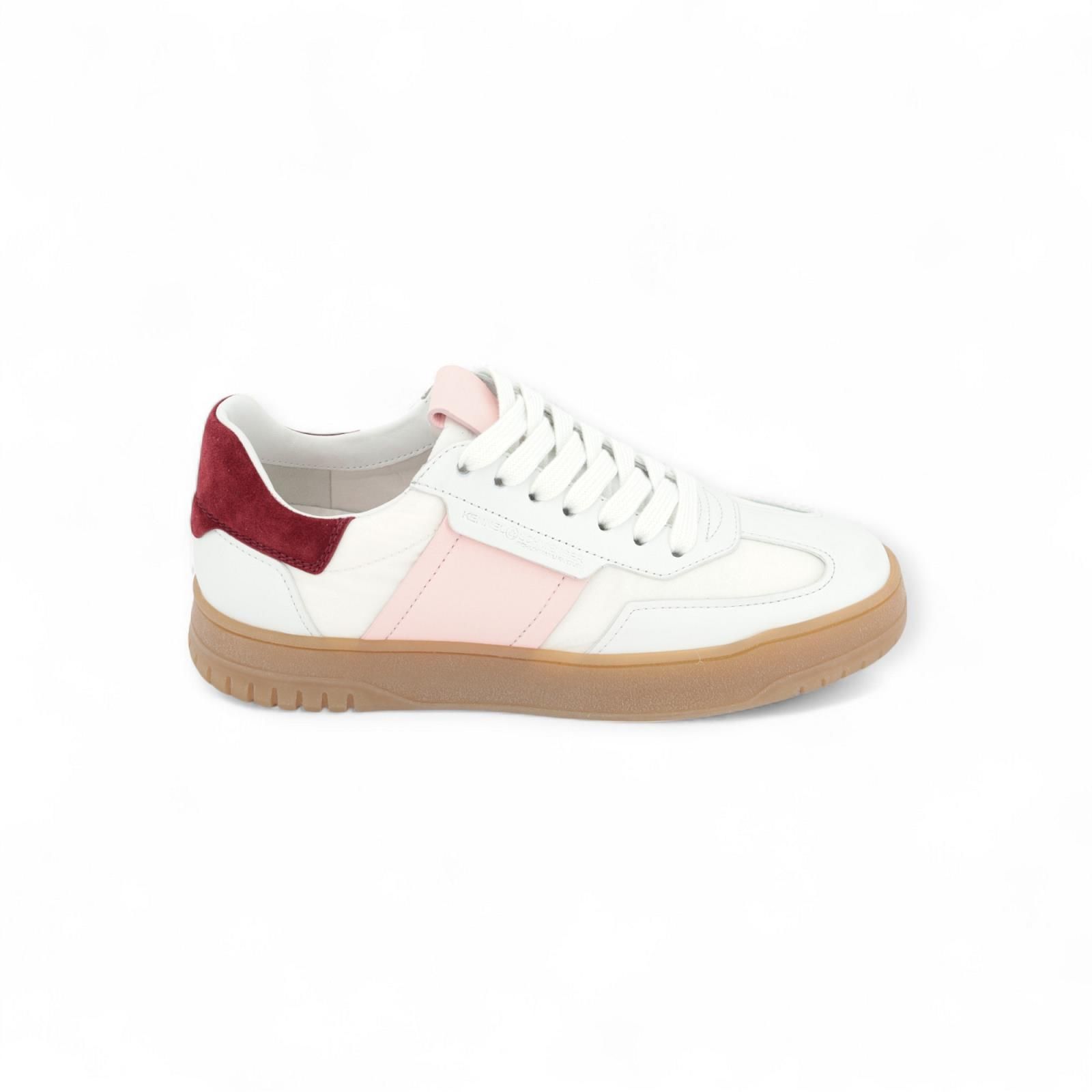 Gaz sneakers van Kennel & Schmenger voor dames. Deze witte sneaker is gemaakt van zacht kalfsleer die voor een comfortabele pasvorm zorgt. De kleurrijke details aan de hielflap en aan de zijkanten in roze en bordeaux zorgen voor een sportief accent. De binnenzool is uitneembaar.