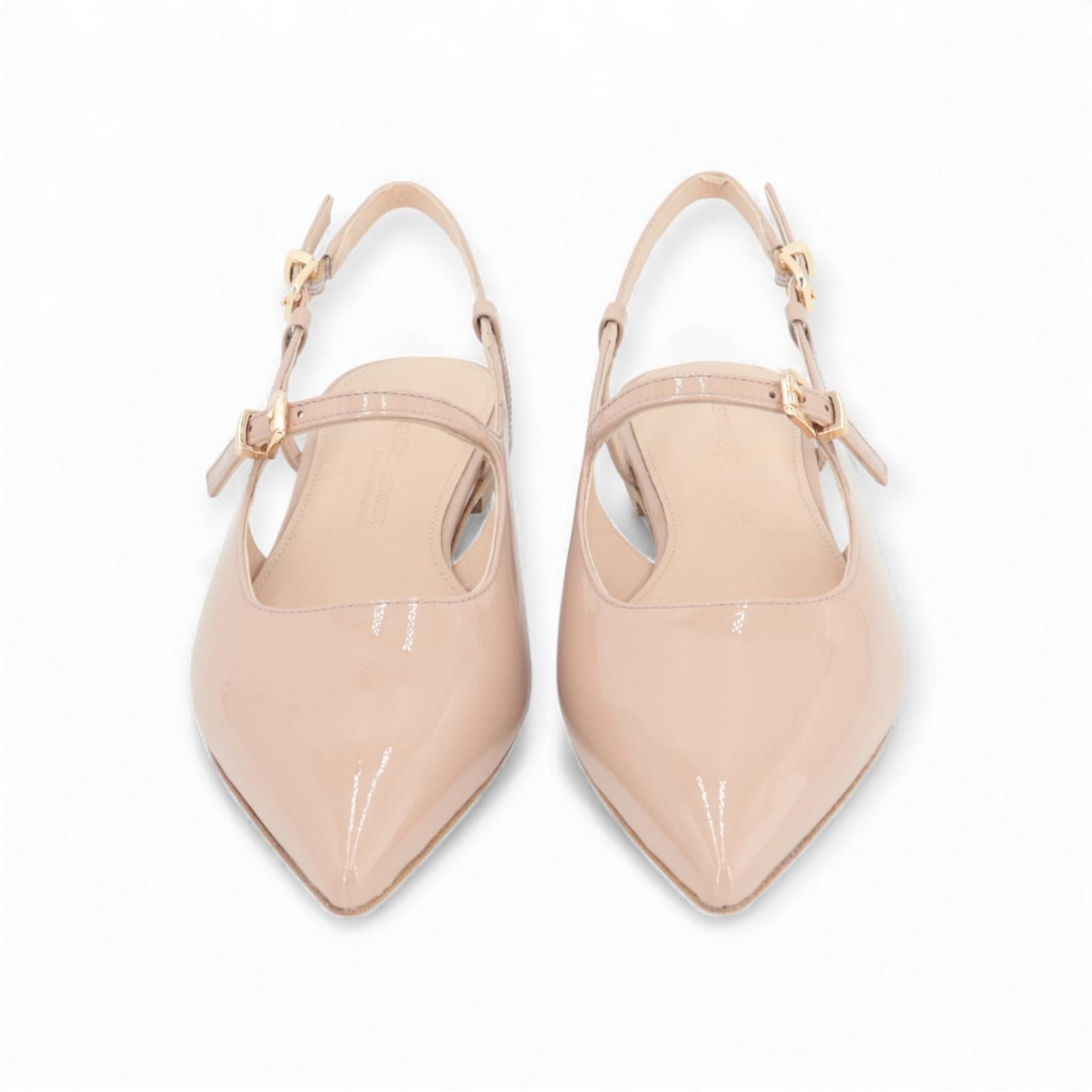 Ballerina Greta van Kennel & Schmenger voor dames. Deze elegante slingback is in roze fijn lakleer. Heeft een bandje over de wreef en rond de enkel met gespsluiting. De puntige silhouet zorgt voor een vrouwelijke touch. De buitenzool is in leer.