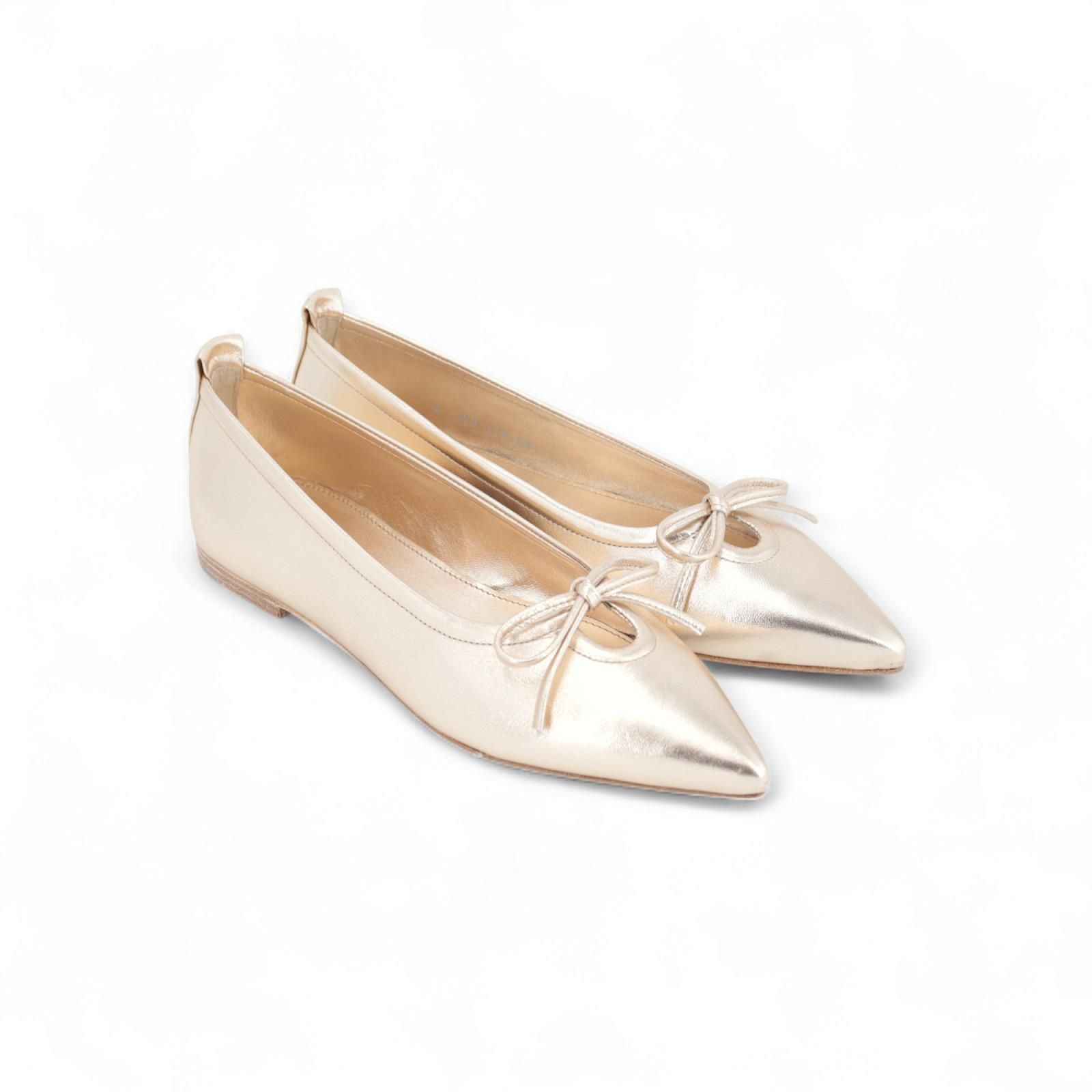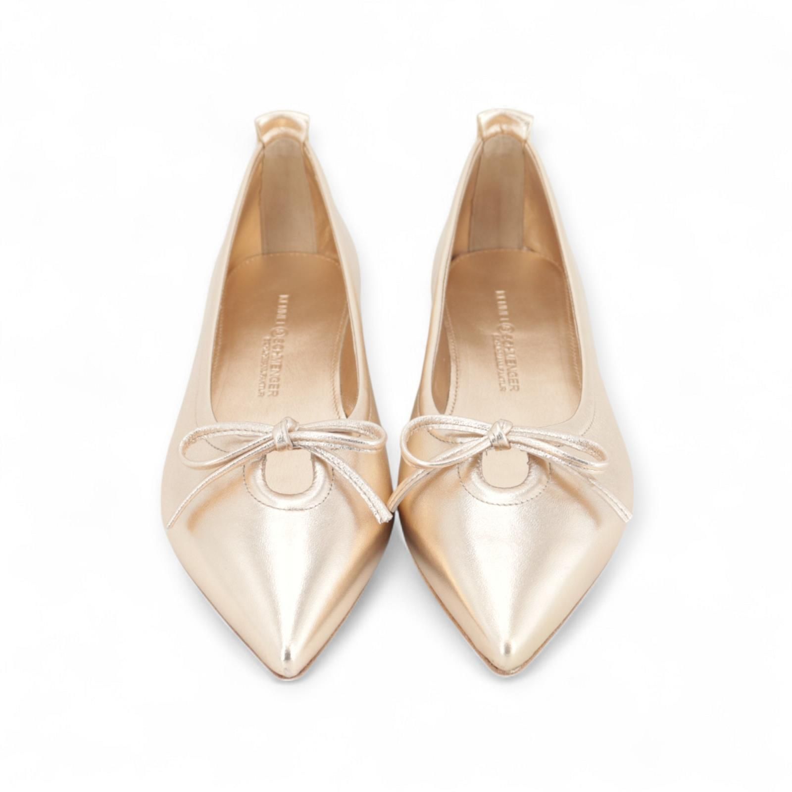 Greta ballerina van Kennel & Schmenger voor dames in goud. Het puntige silhouet van dit model zorgt voor een elegante uitstraling. De gouden tint en het zachte leder maken ons model tot de perfecte basic voor iedere dag. De subtiele strik zorgt voor een vrouwelijke touch.