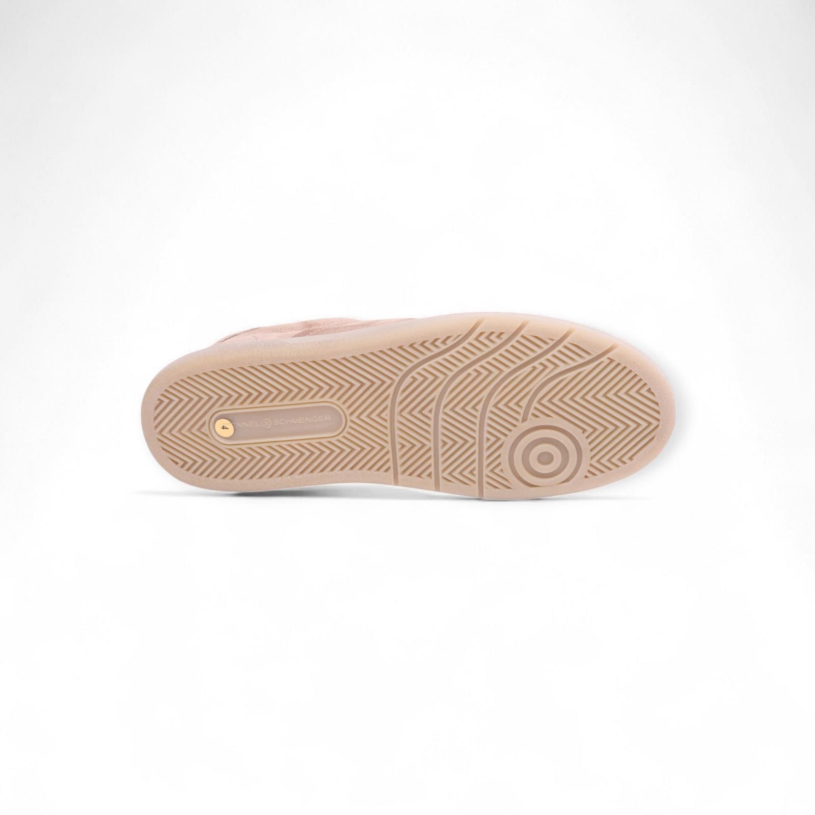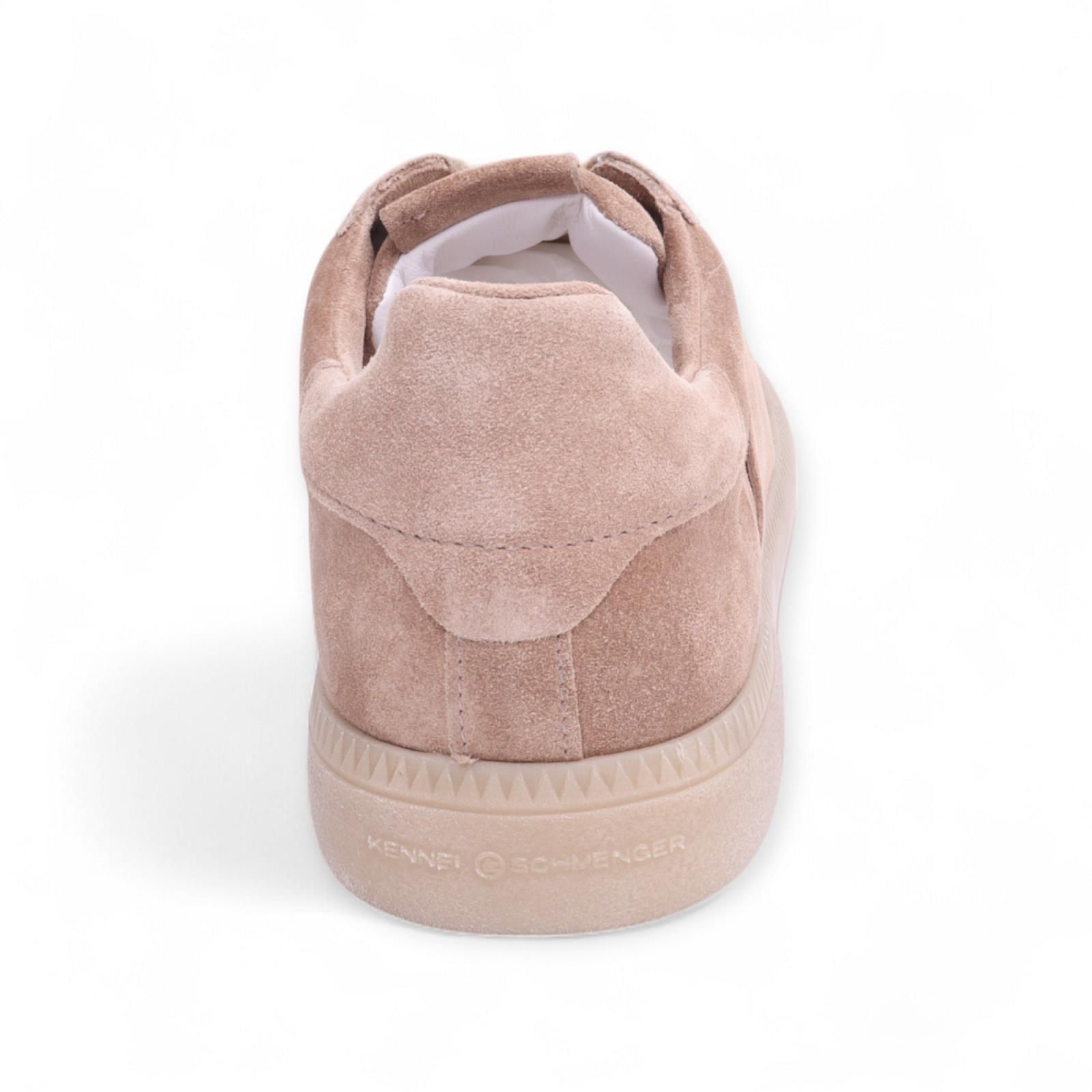 Sneaker Pop van Kennel & Schmenger voor dames. Deze sneaker is zand suède afgewerkt met witte wollen veters. Is op een beige zachte plooibare zool en de binnenzool is uitneembaar.
