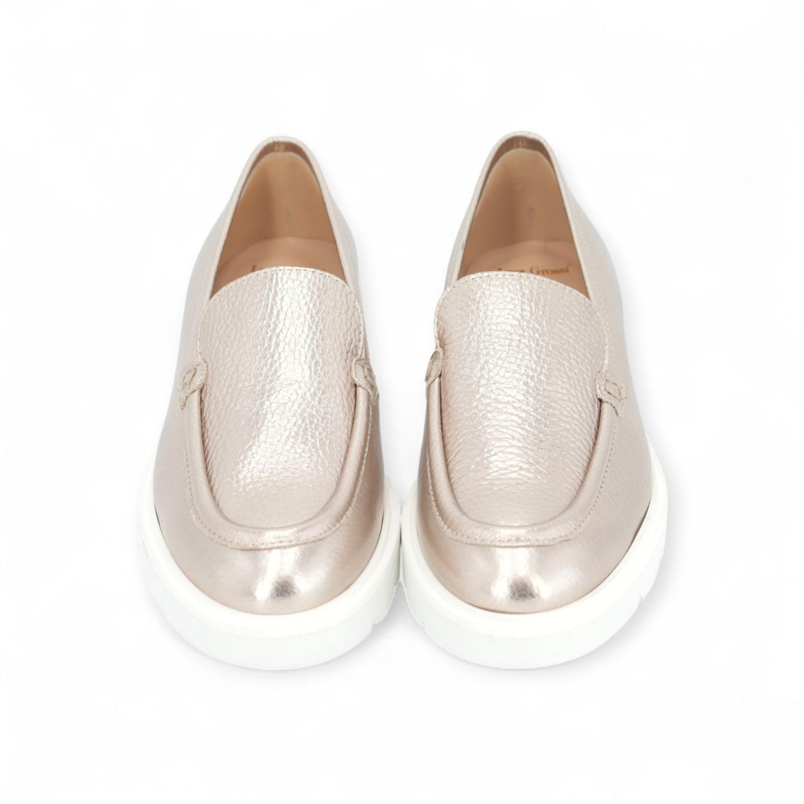 Dames mocassin in rosé goud van Luca Grossi is volledig vervaardigt uit leder. De witte microzool zorgt voor comfort.