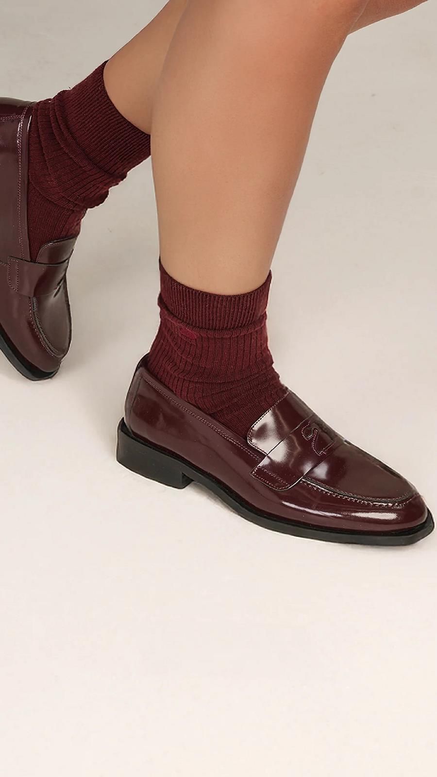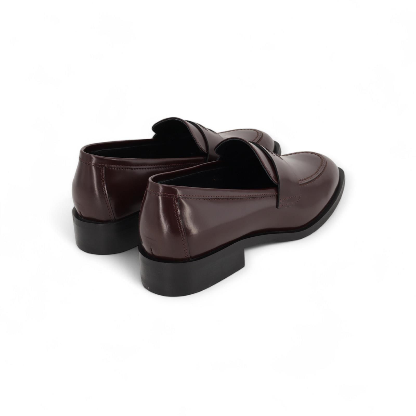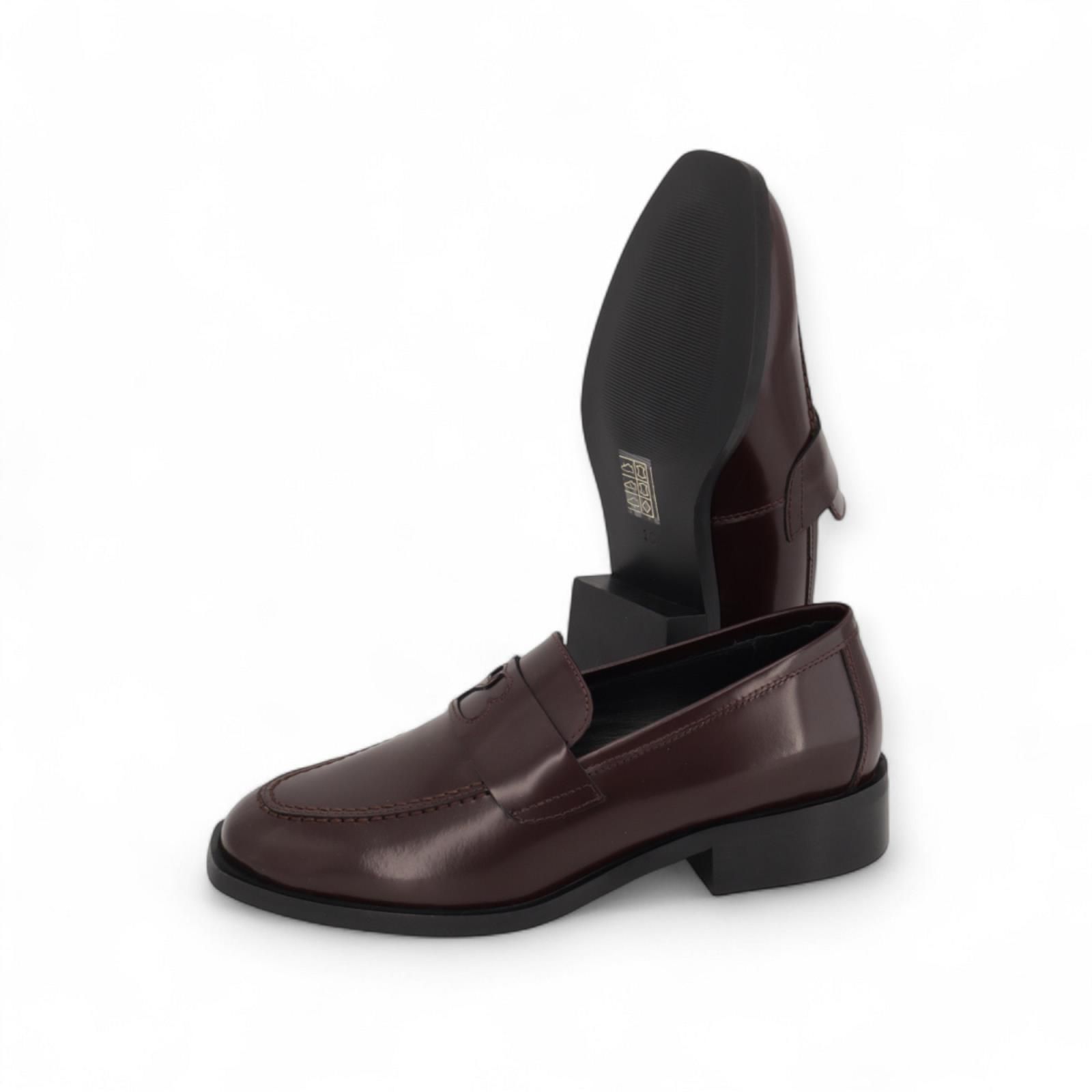 Mocassin Coral van March 23 voor dames. Deze mocassin is in zacht bordeaux leer. Heeft een band over de wreef met logo. Is op een zwarte antislipzool.