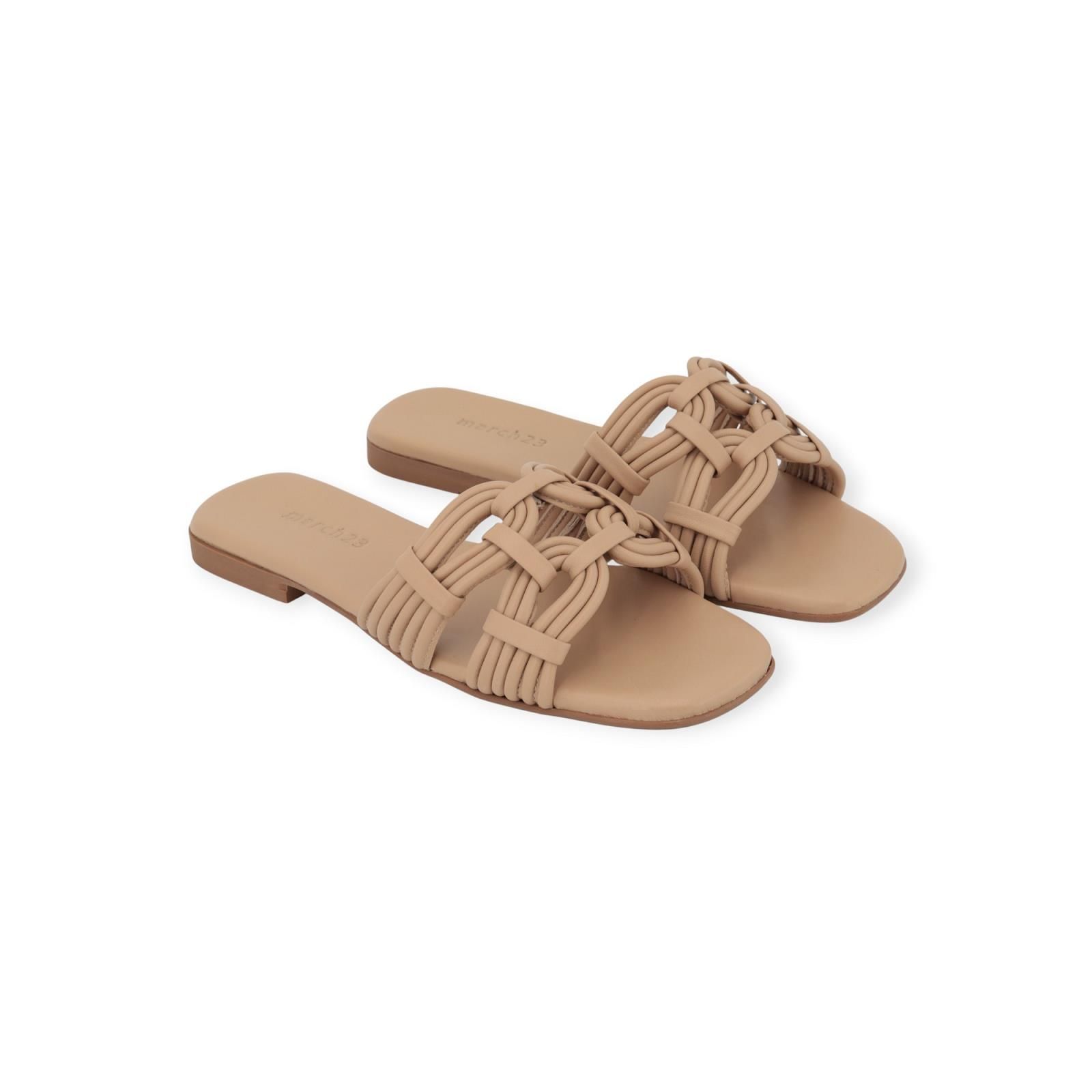 Slipper Palermo van March23 voor dames. Dit elegant muiltje is in beige leer. Is met een brede band over de wreef met verschillende texturen. Heeft een lichte carré neus en een antislip buitenzool.
