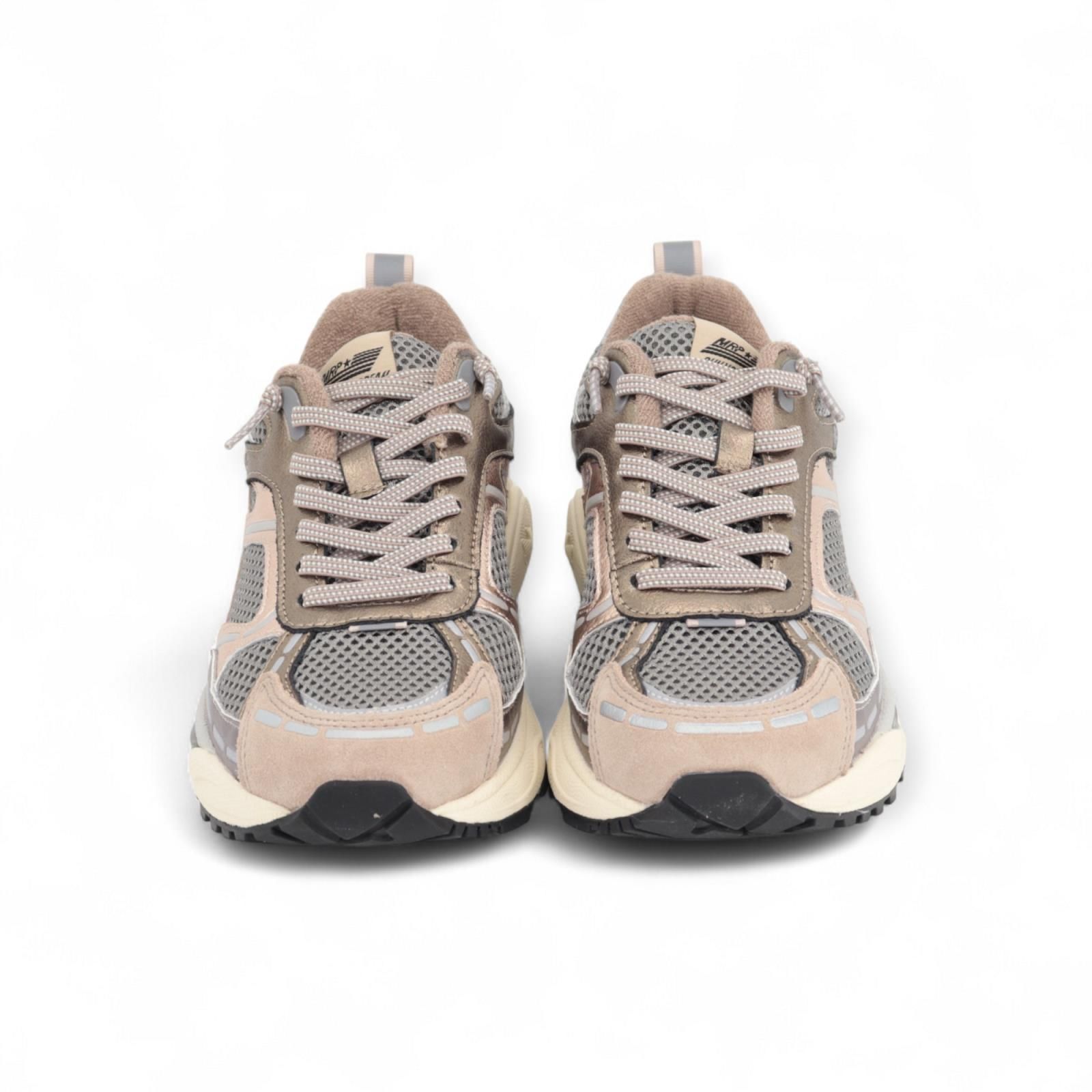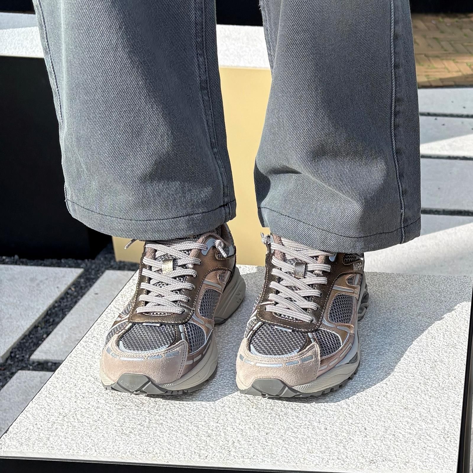 Sneaker MRP01 AMSTERDAM van Maripé voor dames. Deze grijze multi runner is de ultieme schoen voor je streetlook! Het innovatieve maxi mesh-materiaal gecombineerd met gemetalliseerde leren elementen geeft deze hardloopsneaker het absolute WOW-effect! Mooie details, logo's en een opvallende dikke zool maken deze sneakers tot een musthave voor je relaxte dagelijkse look! De binnenzool is uitneembaar.