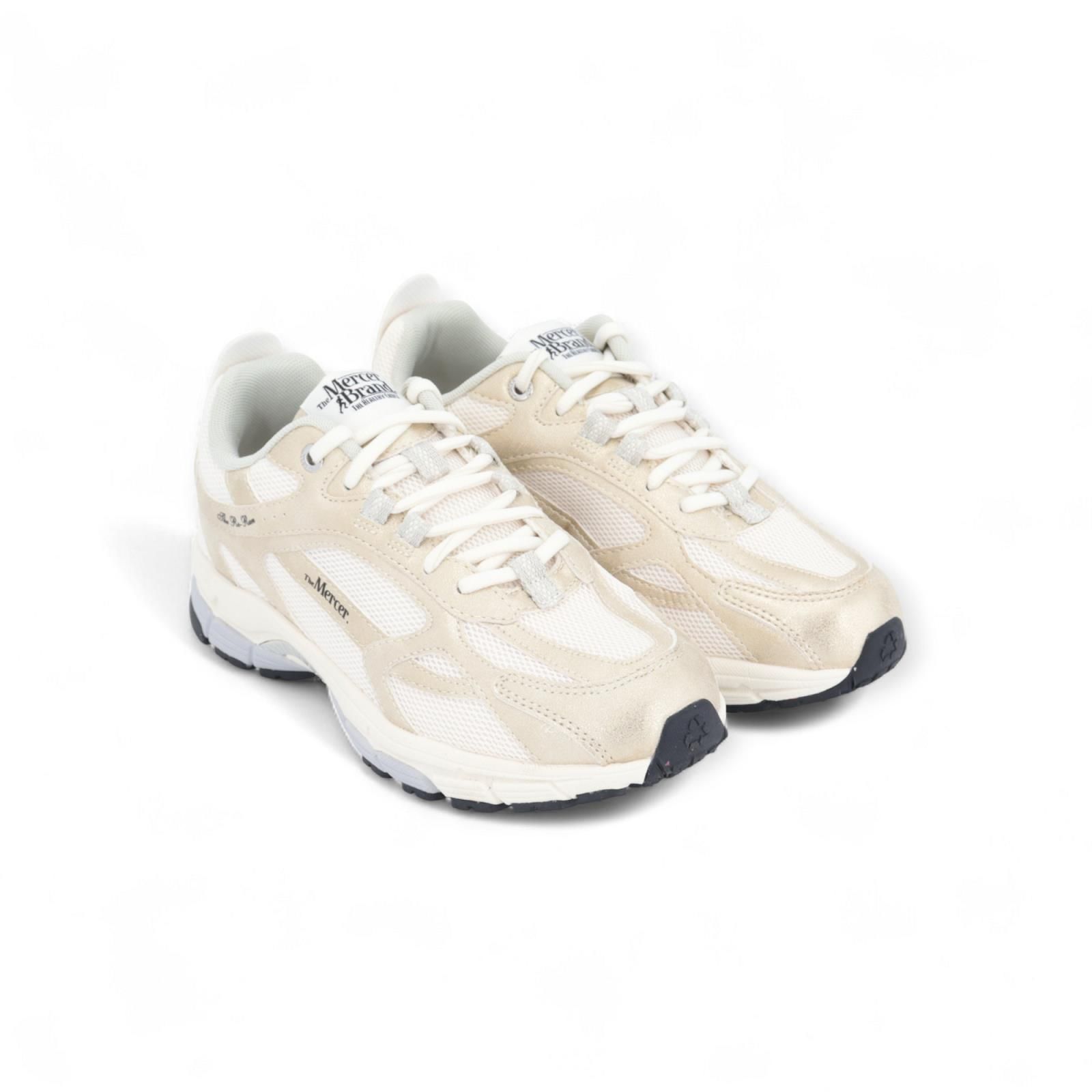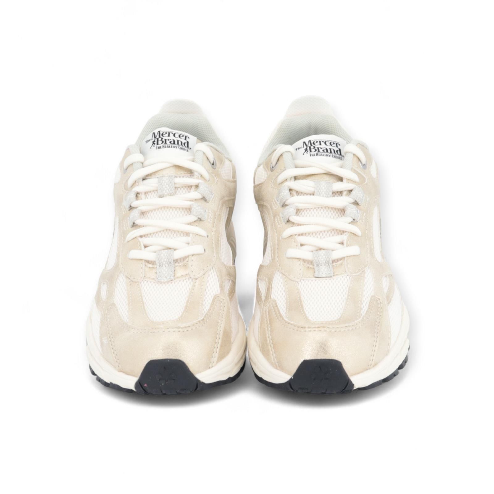 Sneaker Re Run Metallic van Mercer voor dames. De klassieker waar het allemaal mee begon. Mooie gouden metallic lederstukken met witte mesh en een gerecycled zool. De binnenzool is uitneembaar.