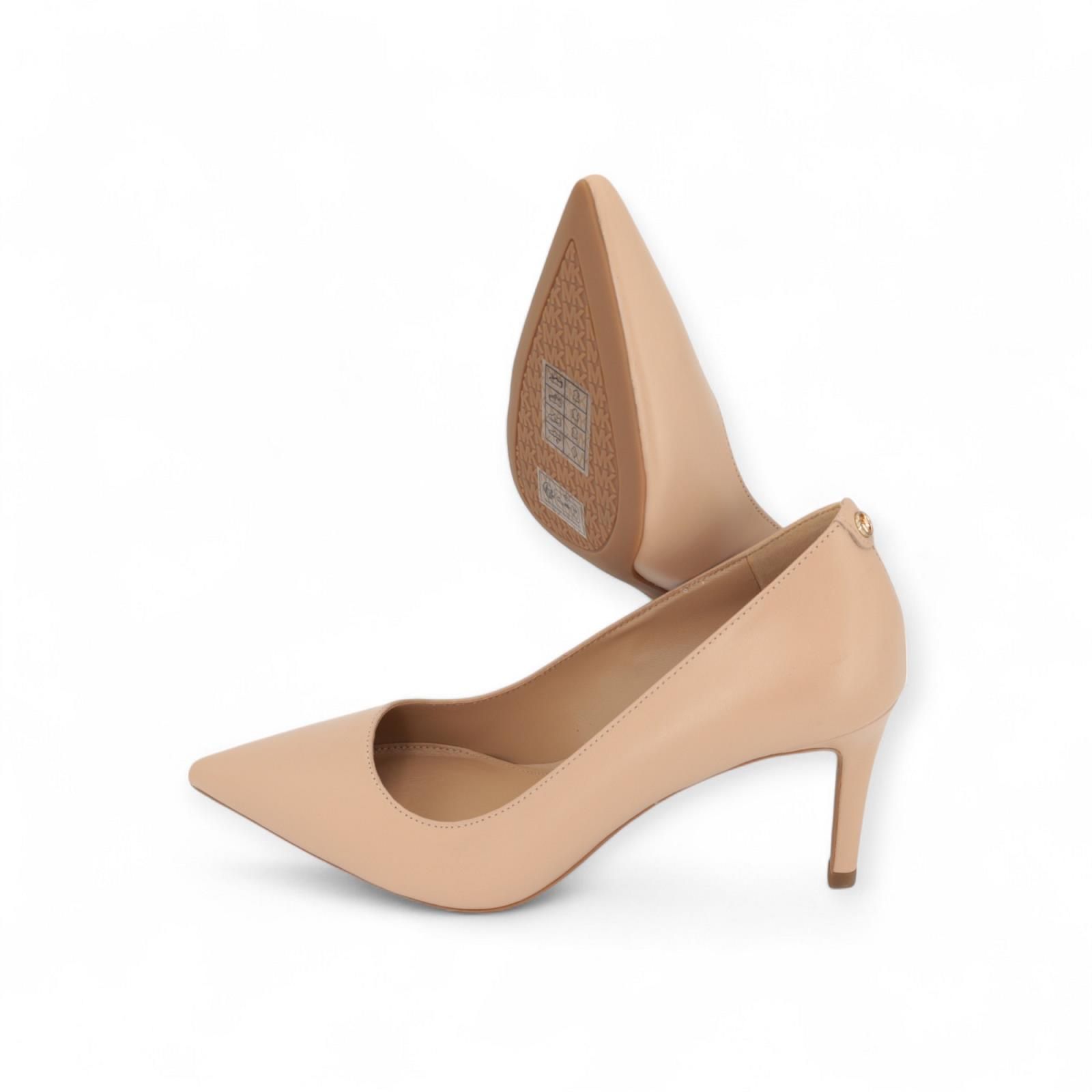 Deze Alina Flex Pump van Michael Kors voor dames in nude. Is zeer elegant en stijlvol afgewerkt met een scherpe top. Volledig in leer en de hak is ongeveer 8cm-8.5cm hoog.