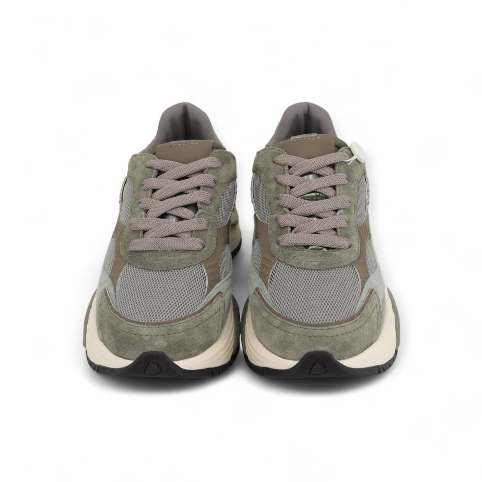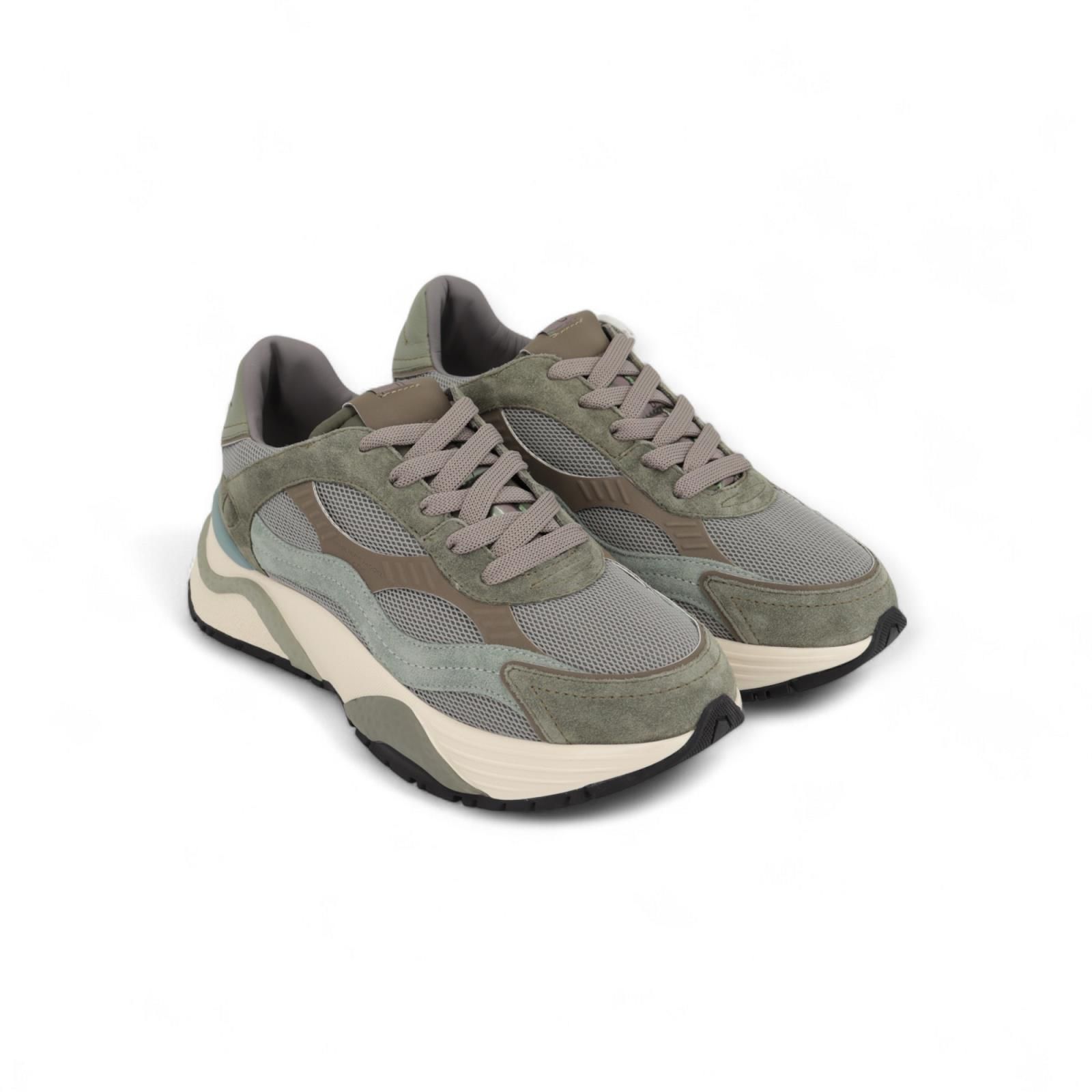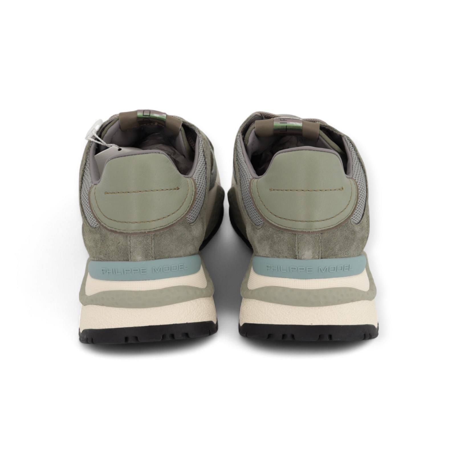 Sneaker Odeon van Philippe Model voor dames. Deze runner is de nieuwe inspiratie van Philippe Model met eigentijdse vormen en een gedurfde stijl! Gemaakt van groene, grijze tinten suède met zigzag , mesh, borduursels en inzetstukken. Is op een plateauzool en een uitneembare binnenzool.