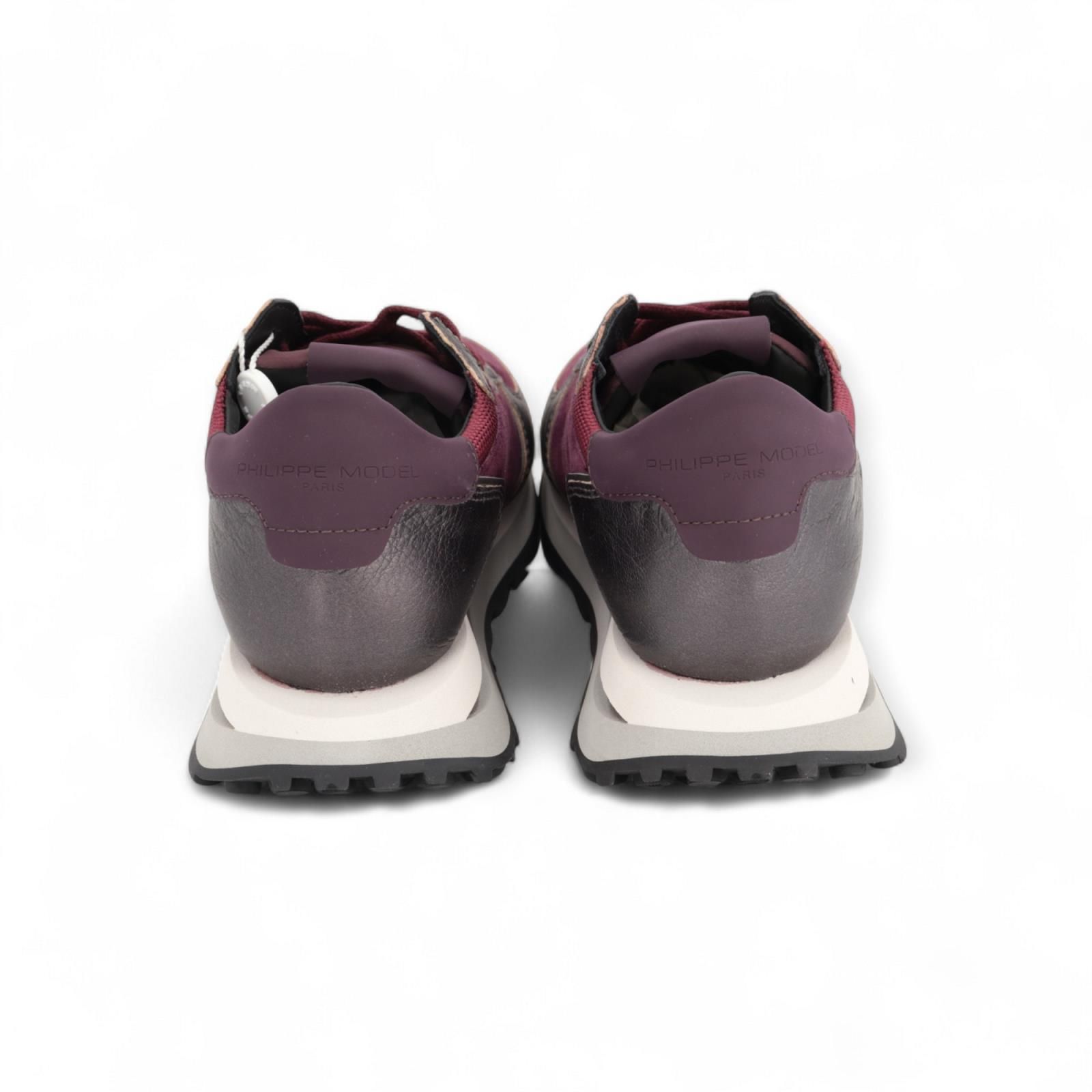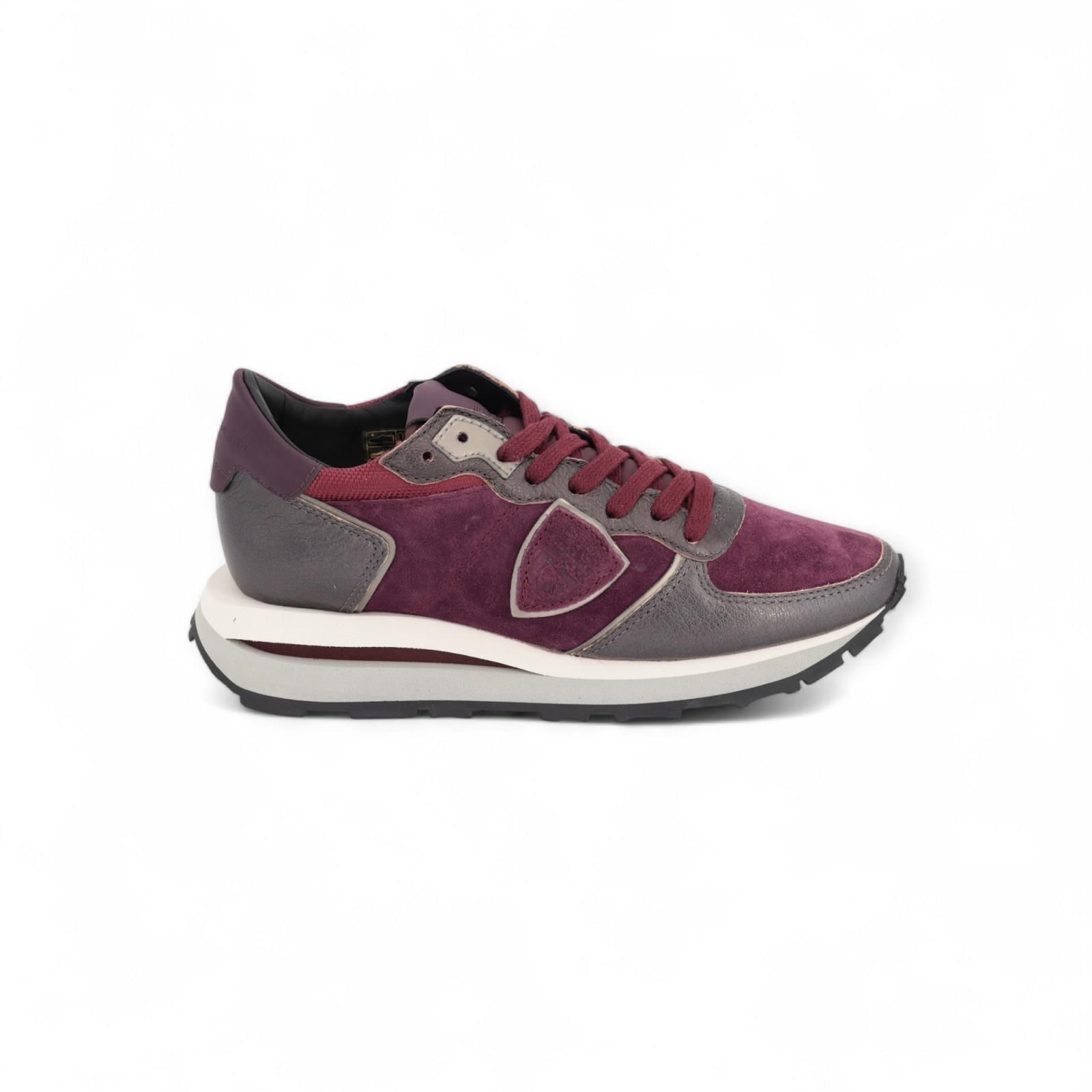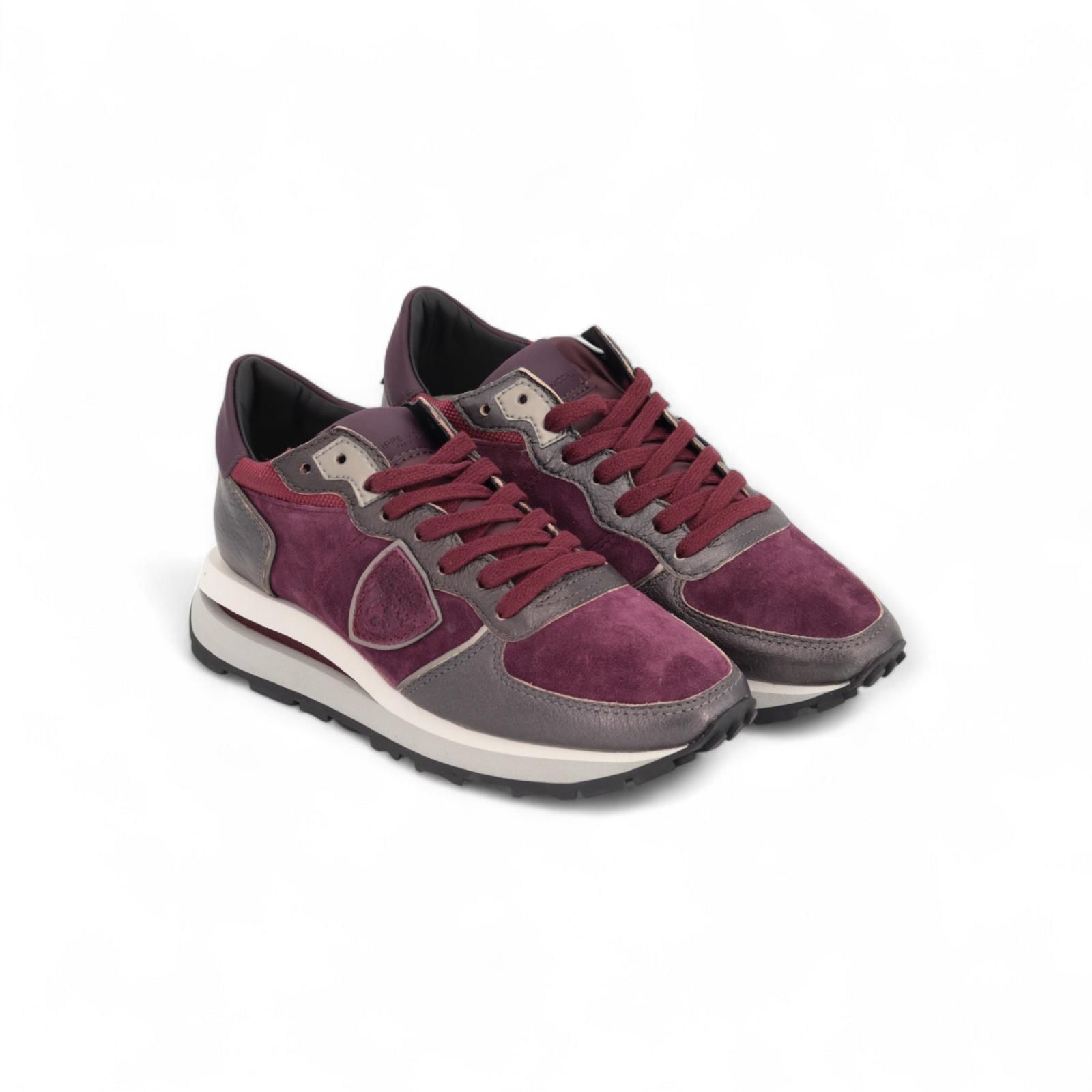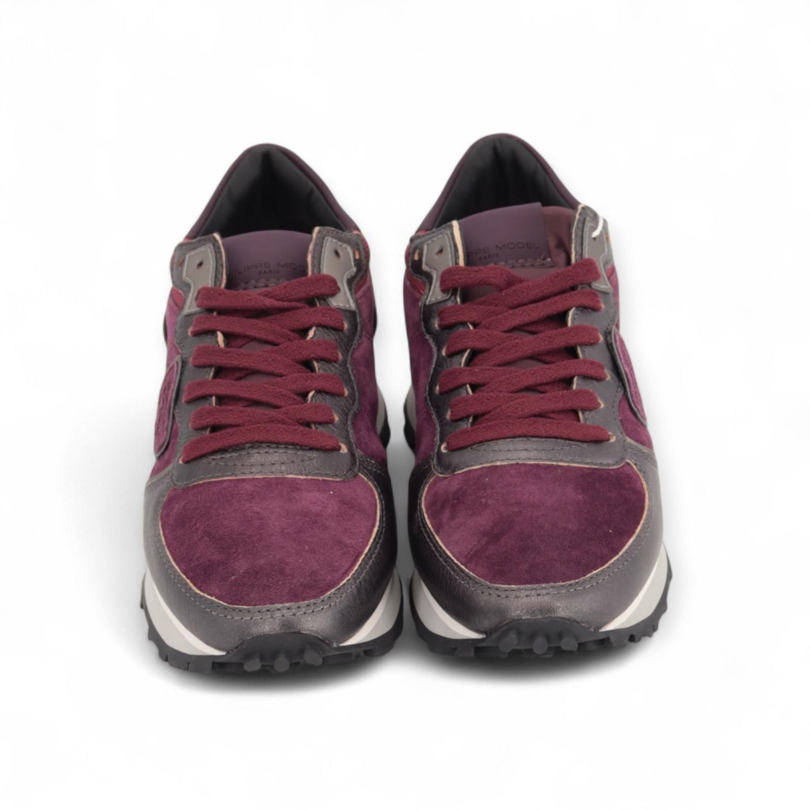 Sneaker Tropez Haute Low van Philippe Model voor dames. Deze bordeaux runner in suède is het meest elegante kleur! Afgewerkt met zilver aan de hielflap en het Philippe Model schild aan de zijkant. Is op een zool van ultralicht rubber met een uitstulping op de hiel en een contrasterend inzetstuk voor een 3D-effect. Heeft een uitneembare binnenzool.