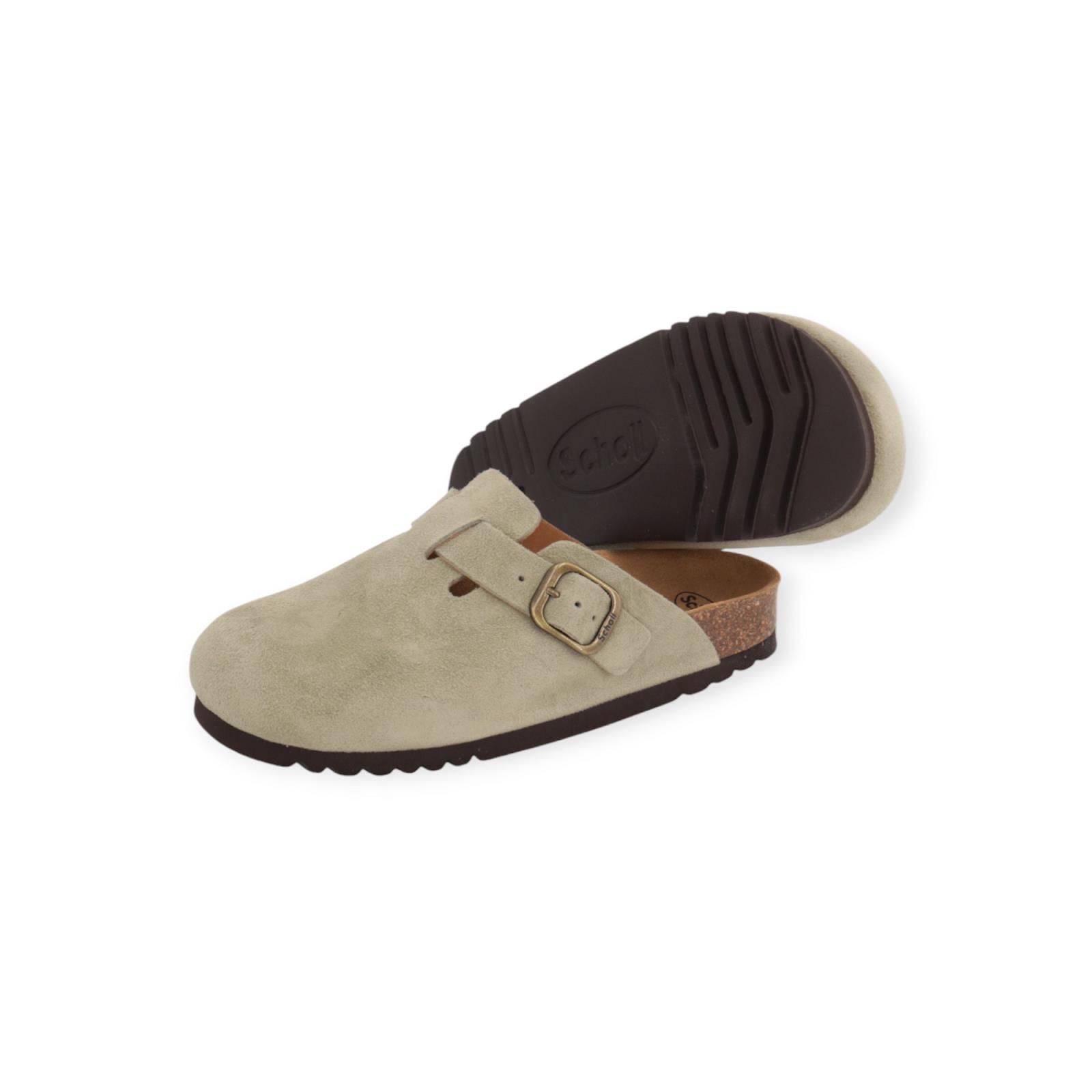 Slipper Fae van Scholl voor dames. Deze slipper is een feilloze samensmelting van mode en functionaliteit. De Fae is gemaakt in licht groen suède met een verstelbare gesp. Biedt uitstekende flexibiliteit en lichtgewicht comfort. Heeft een ergonomisch voetbed op een donkere antislipzool.