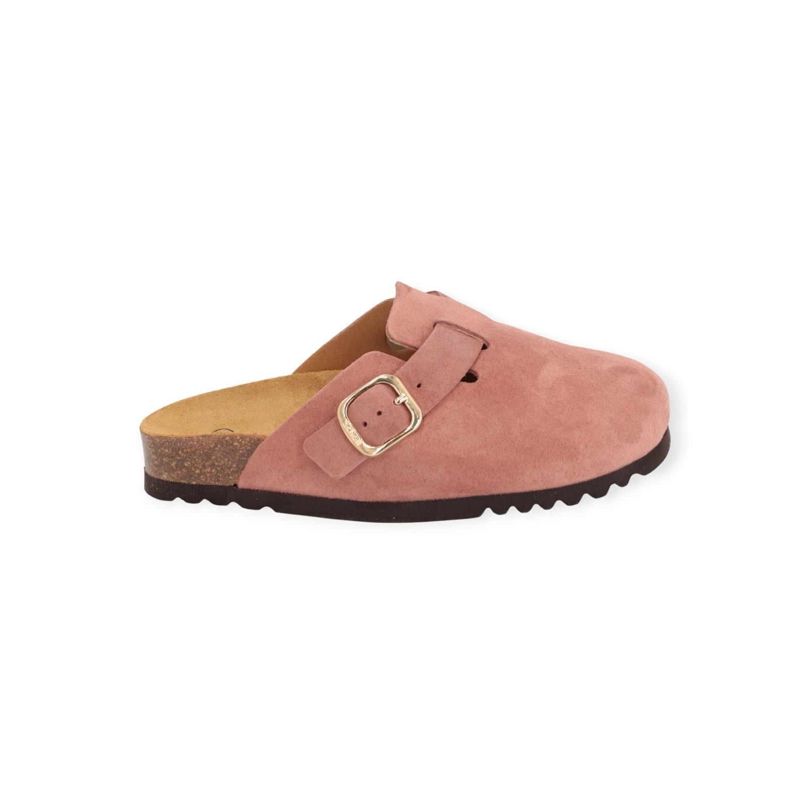 Slipper Fae van Scholl voor dames. Deze slipper is een feilloze samensmelting van mode en functionaliteit. De Fae is gemaakt in donker roze suède met een verstelbare gesp. Biedt uitstekende flexibiliteit en lichtgewicht comfort. Heeft een ergonomisch voetbed op een donkere antislipzool.