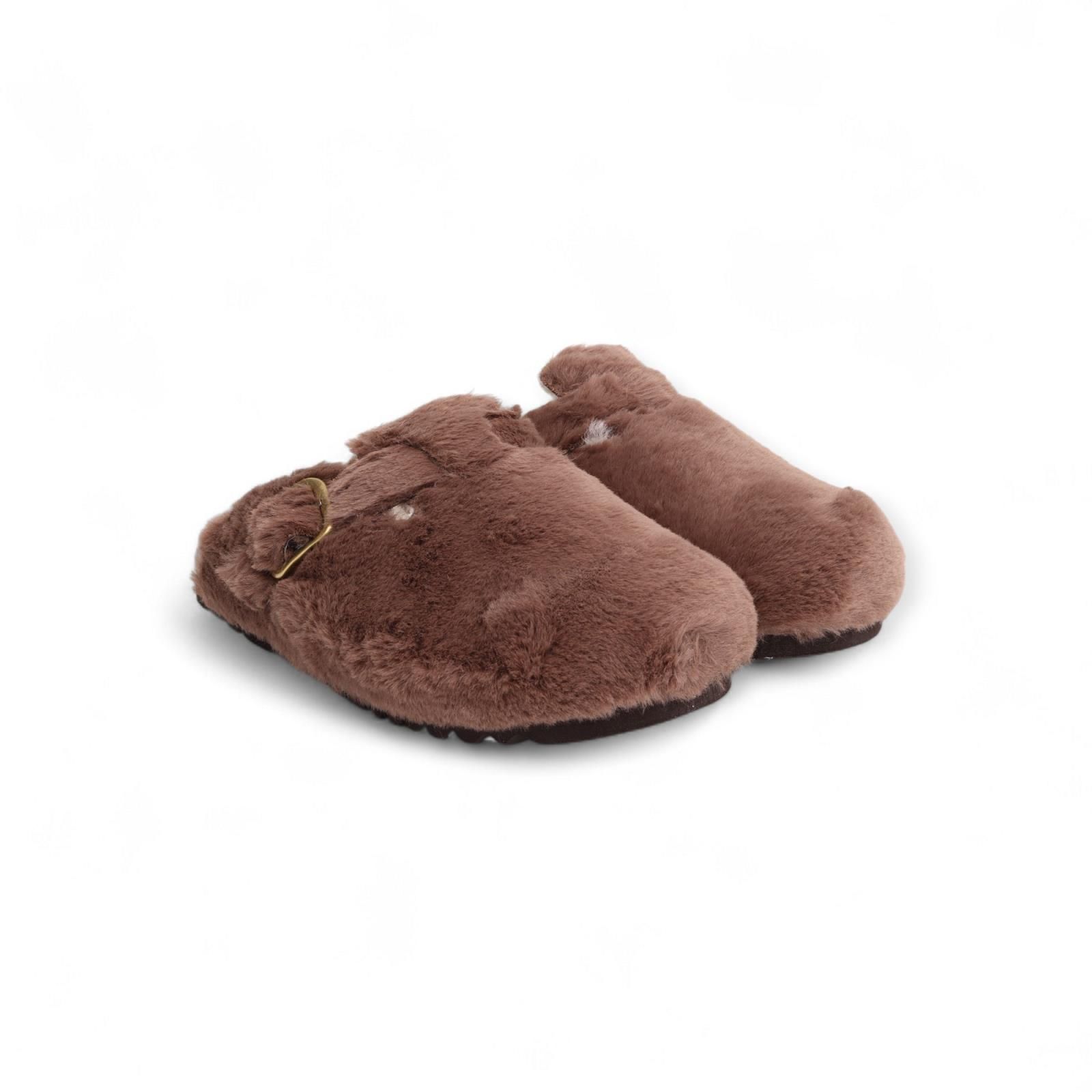 Deze pantoffels in bruin bont zijn de perfecte combinatie van mode en functionaltieit. De met bont gevoerde klompen hebben een chic design. Ze zijn verstelbaar dankzij de gespsluiting en bieden de hele dag comfort en warmte. Is op een vaste antislipzool.