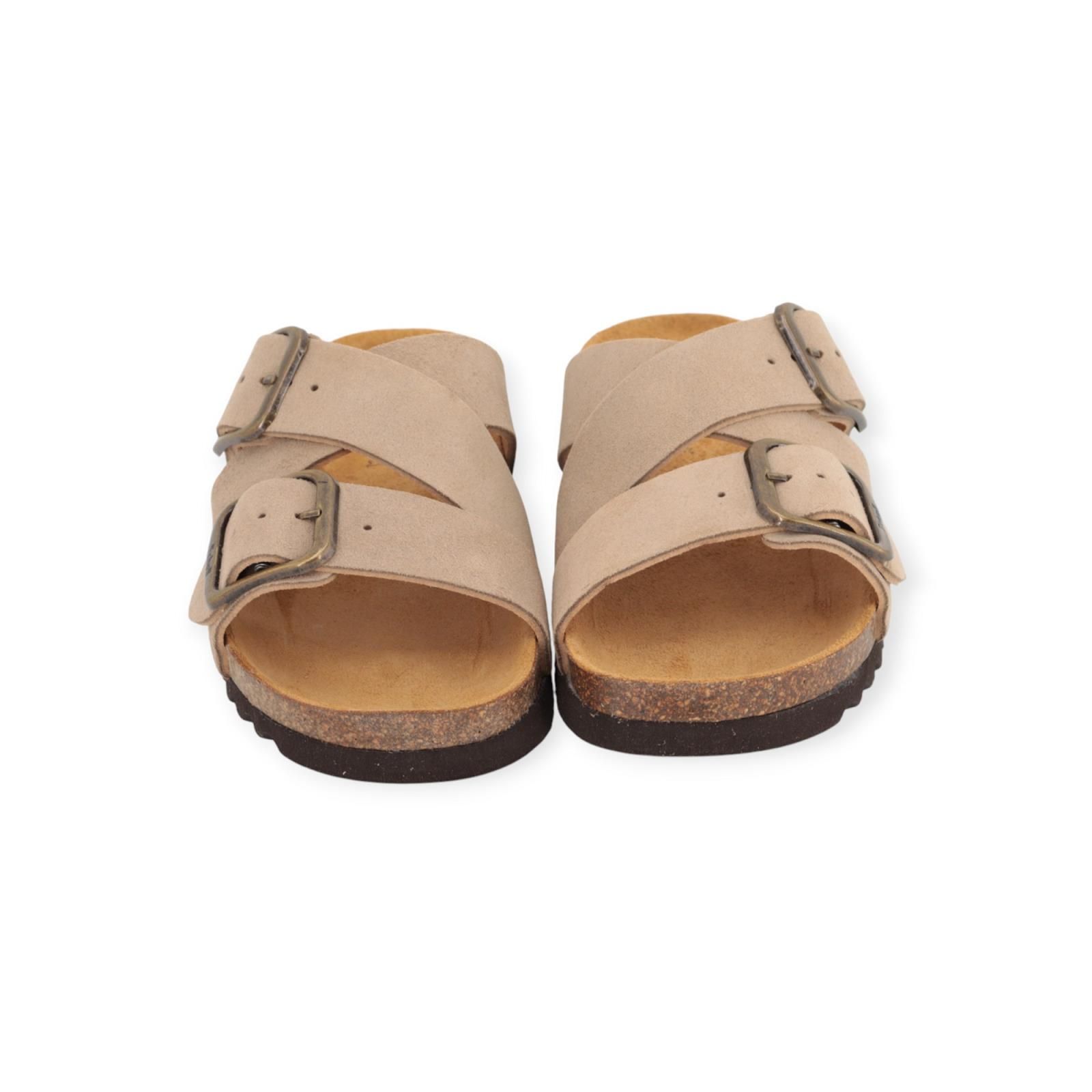Slipper Selene van Scholl voor dames. Deze slipper is in beige suède. Is met gekruiste banden over de wreef en verstelbare gespen. Het Softstep®-voetbed helpt uw gewicht te ondersteunen bij elke stap.