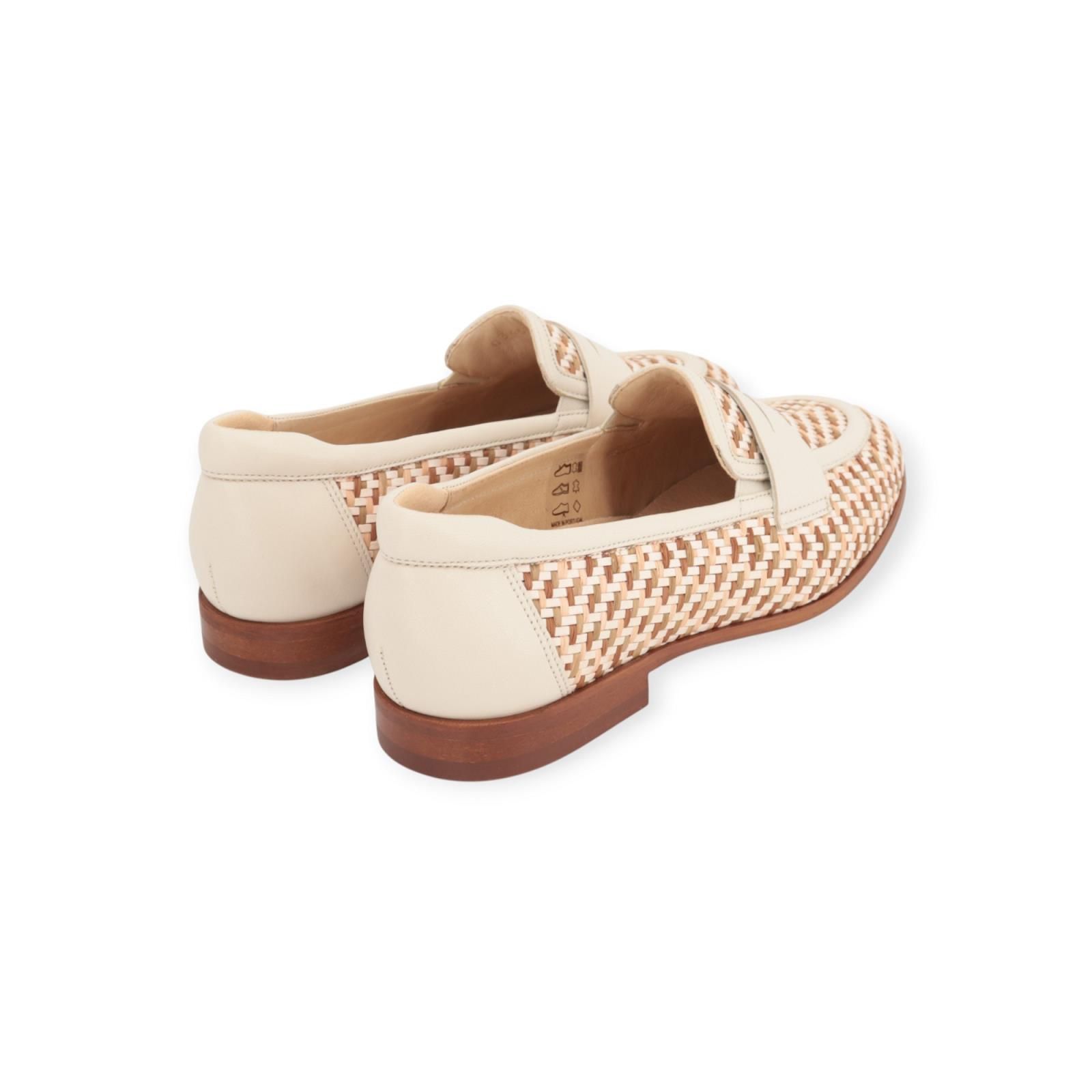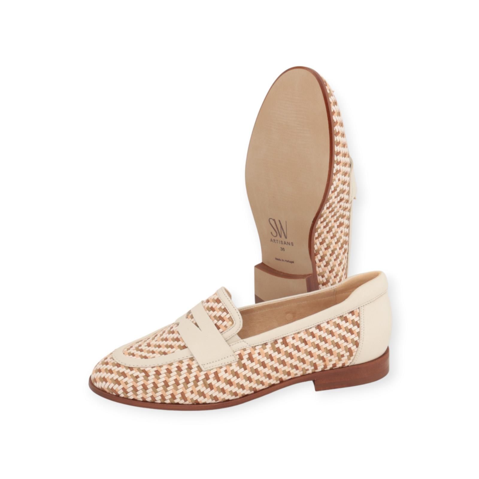 Mocassin Sel van Softwaves voor dames. Deze elegante mocassin is in multi tressé met beige leer afgewerkt. Heeft een leren buitenzool en de binnenzool is uitneembaar.