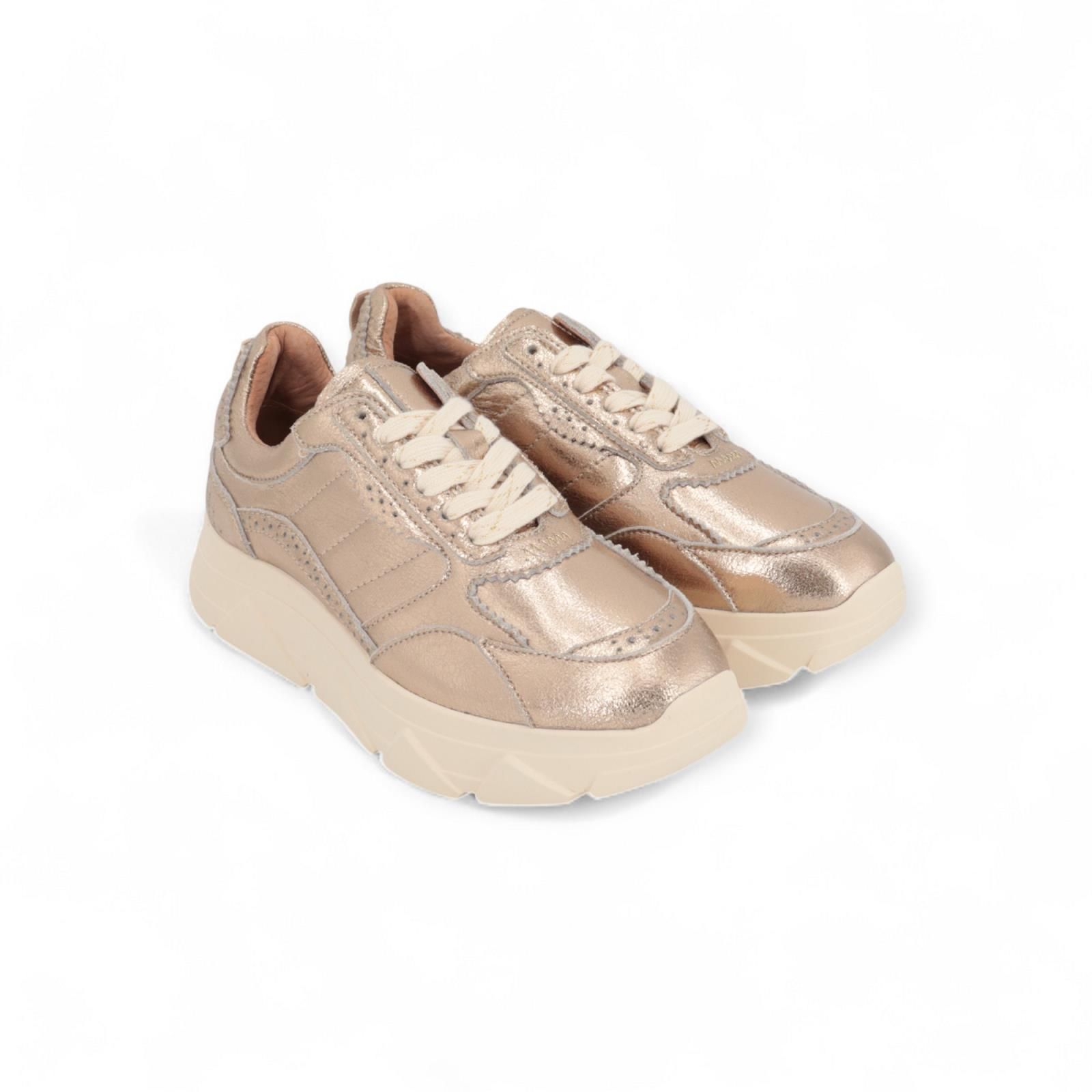 Sneaker Kady Fat 444-d van Tango voor dames. Deze runner is comfortabel en makkelijk te matchen bij elke outfit. Is in goud shining leer met stiksels. Heeft een dikke zool van +/-4cm die voor aangenaam comfort en goeie grip zorgt. De binnenzool is uitneembaar.