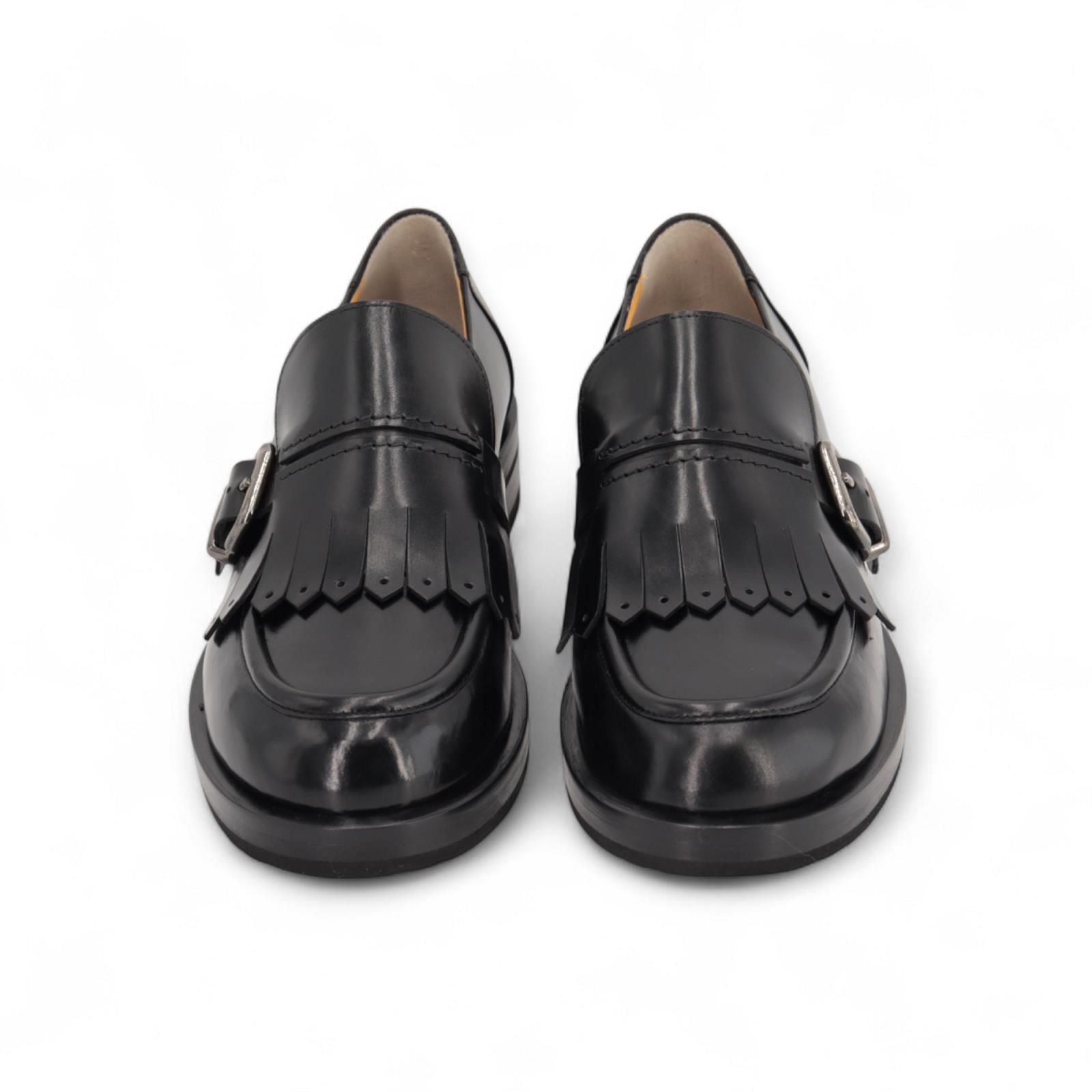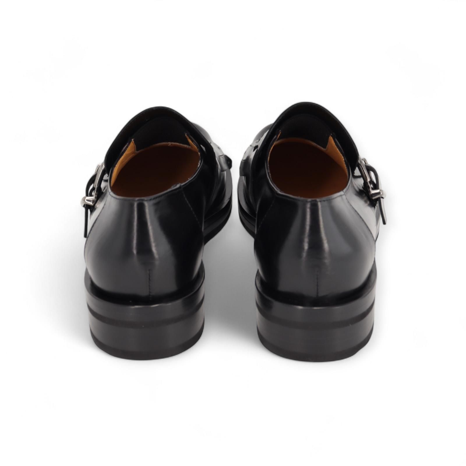 Mocassin 4272 van Truman’s voor dames. Dit elegant mocassin model is in zwart leer. Afgewerkt met een flap met zilveren gesp over de wreef en een dikke stekking. Is op een zwarte fijne antislipzool.