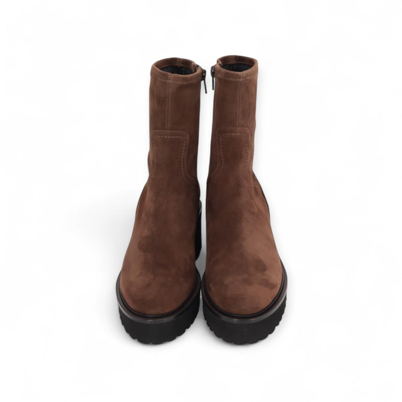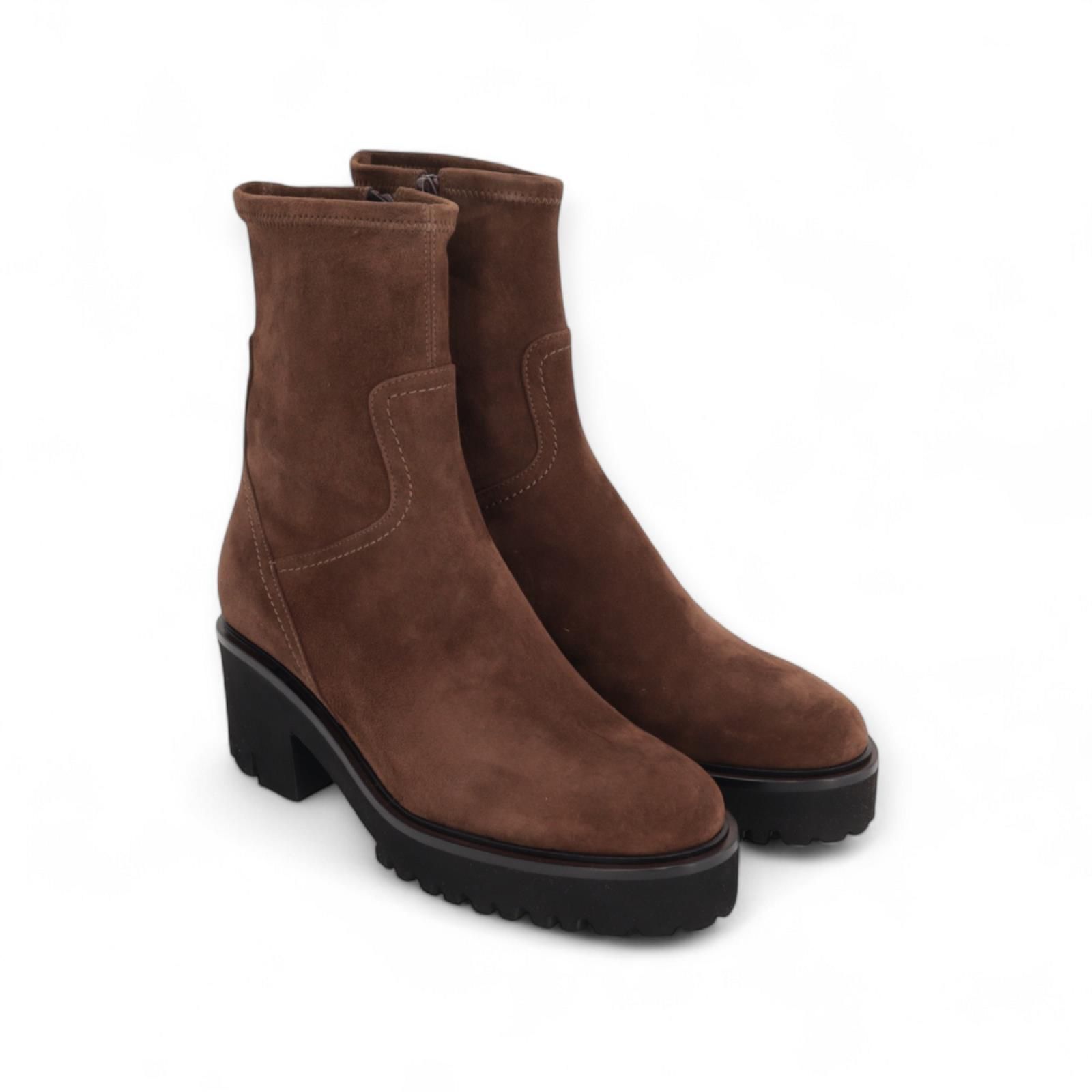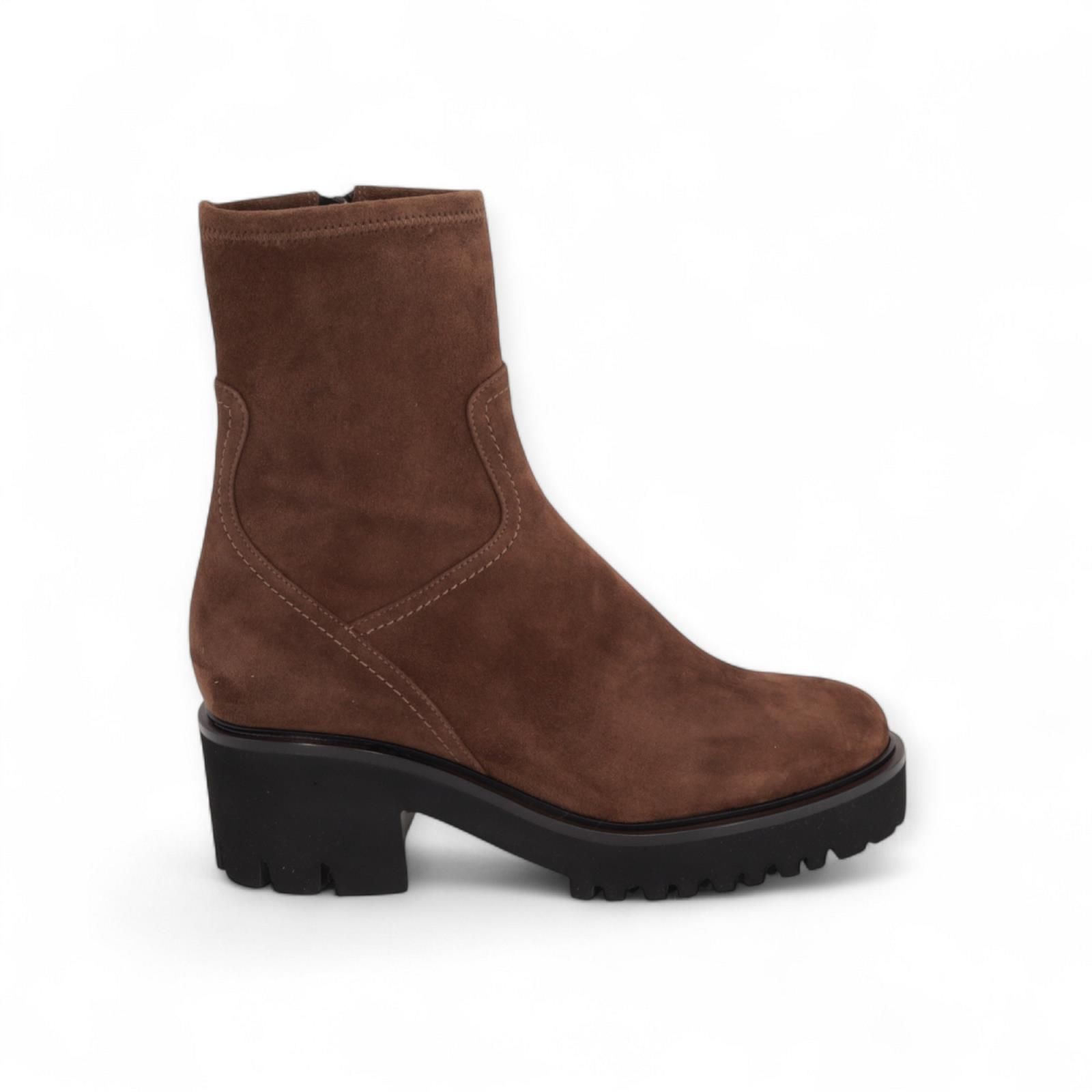 Enkellaars 7644 van Truman’s voor dames. Deze bruine enkellaars is in zacht suède met stiksels. Is met een ronde neus en een ritssluiting aan de zijkant. De zwarte antislipzool is vooraan licht verhoogd met een blokhakje van 3-3.5cm hoog.