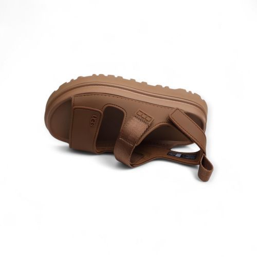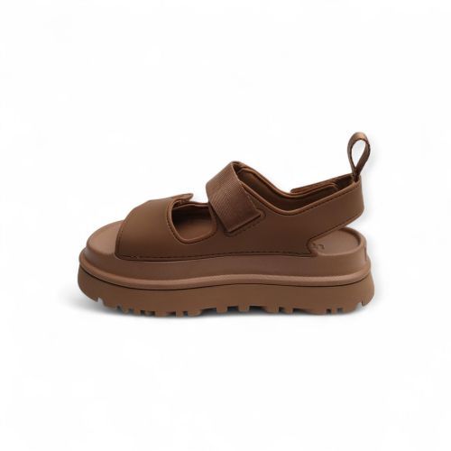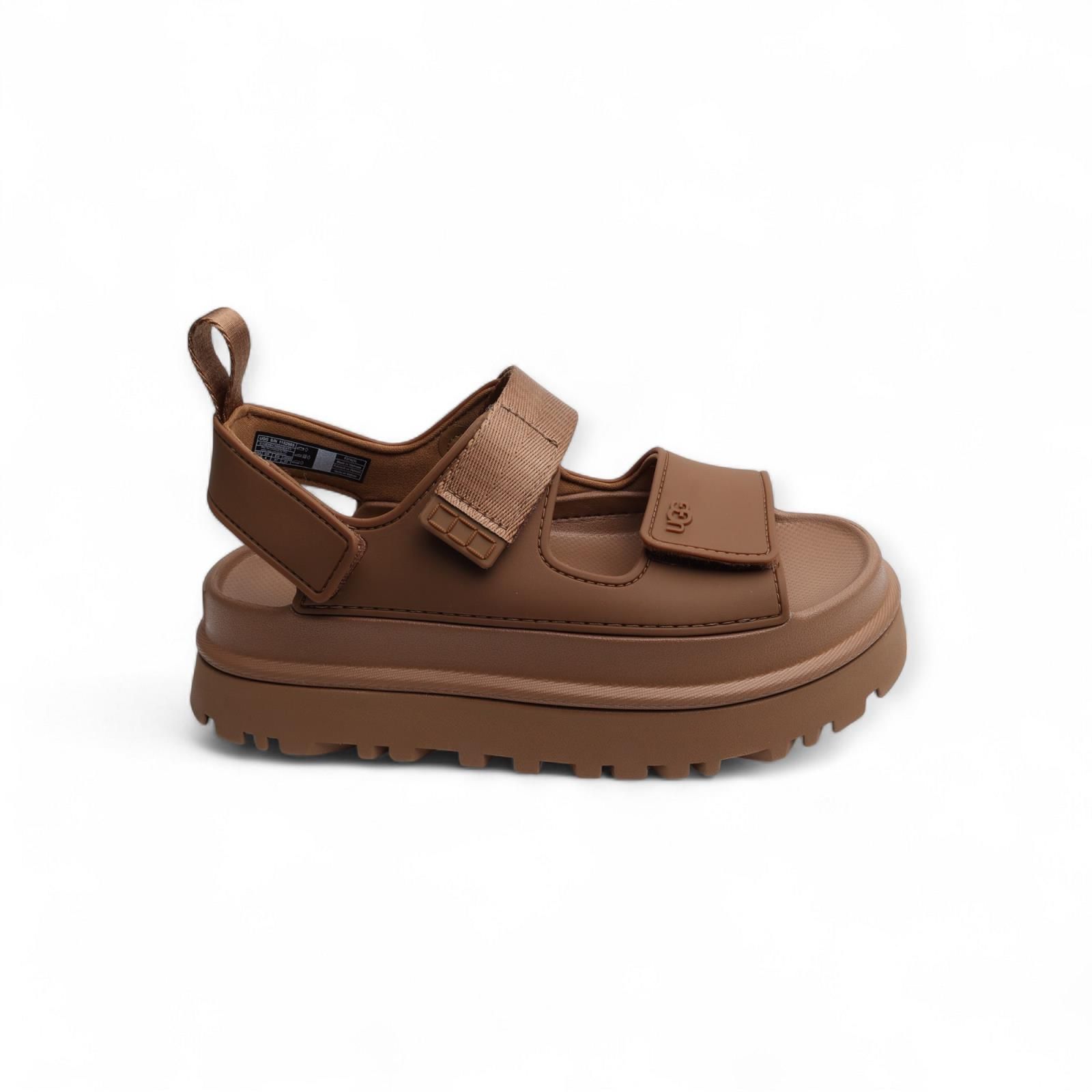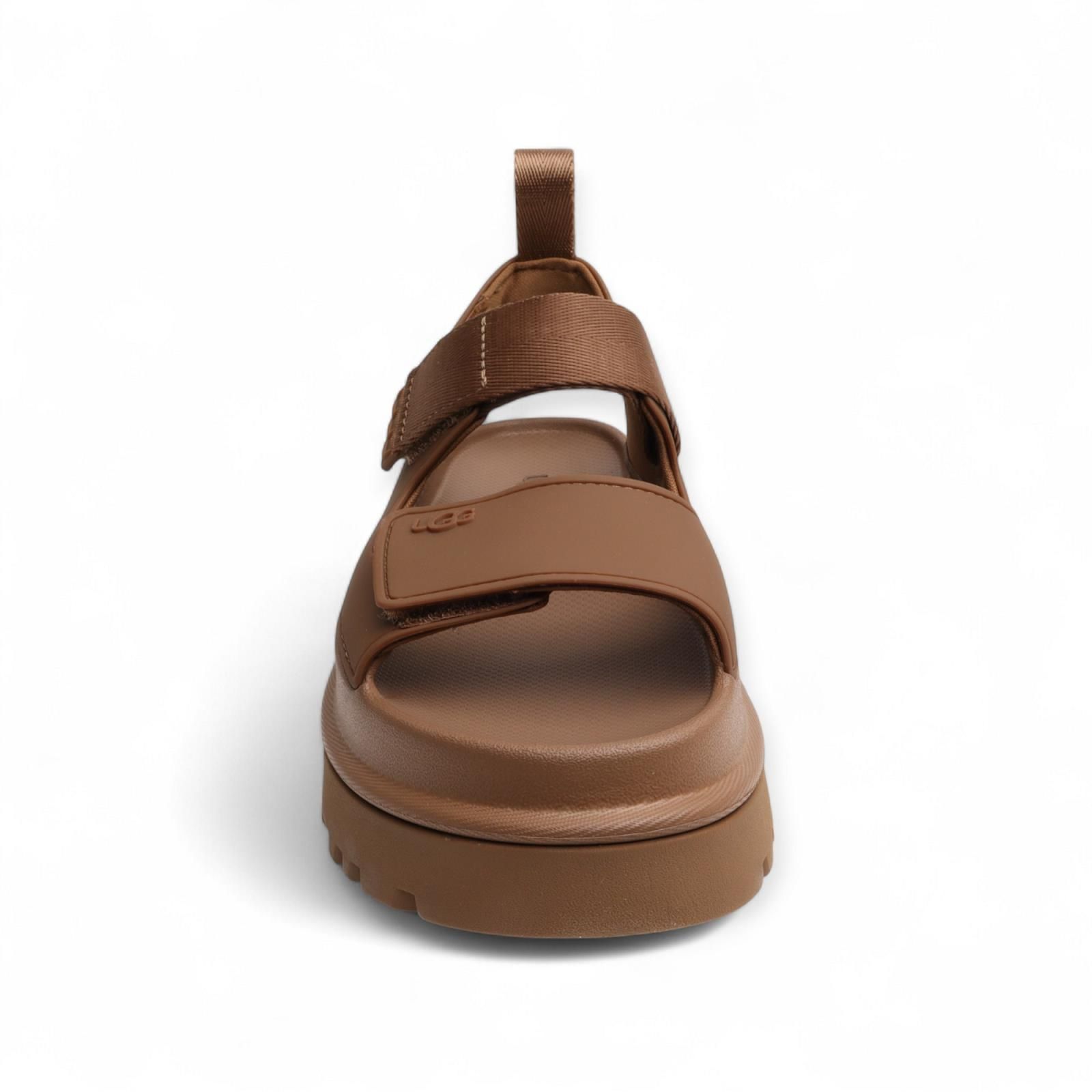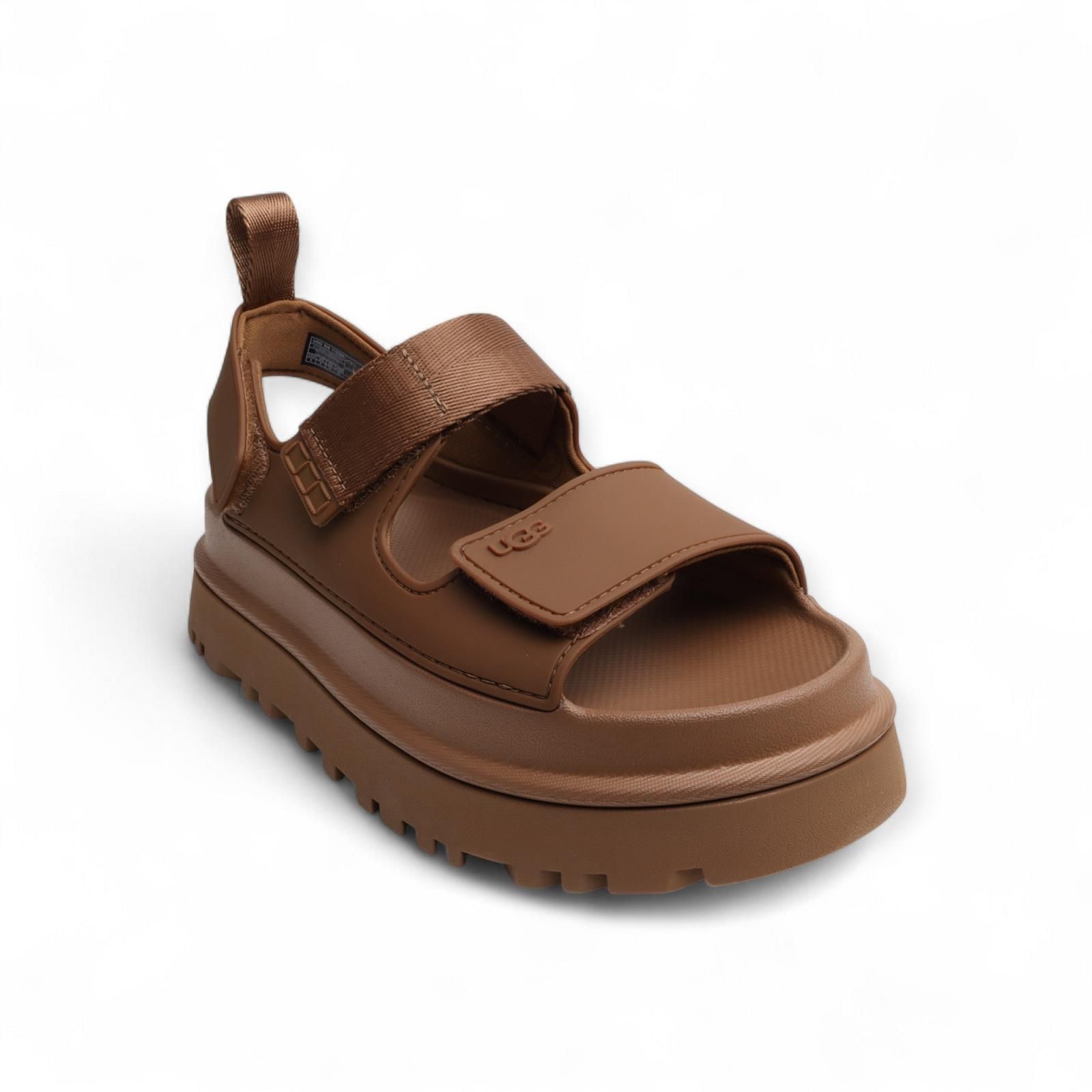 Sandaal GoldenGlow van Ugg in bruin voor dames. Stap in deze lichtgewicht zomerknaller. Deze GoldenGlow is een volledig verstelbare sandaal. Hij is gemaakt van een verend en ondersteunende zool in suikerriet. Deze schoen, op een plateauzool met profiel en uitgevoerd met een voetbed met grip, ziet er net zo dynamisch uit als jij je voelt zodra je hem aan hebt.