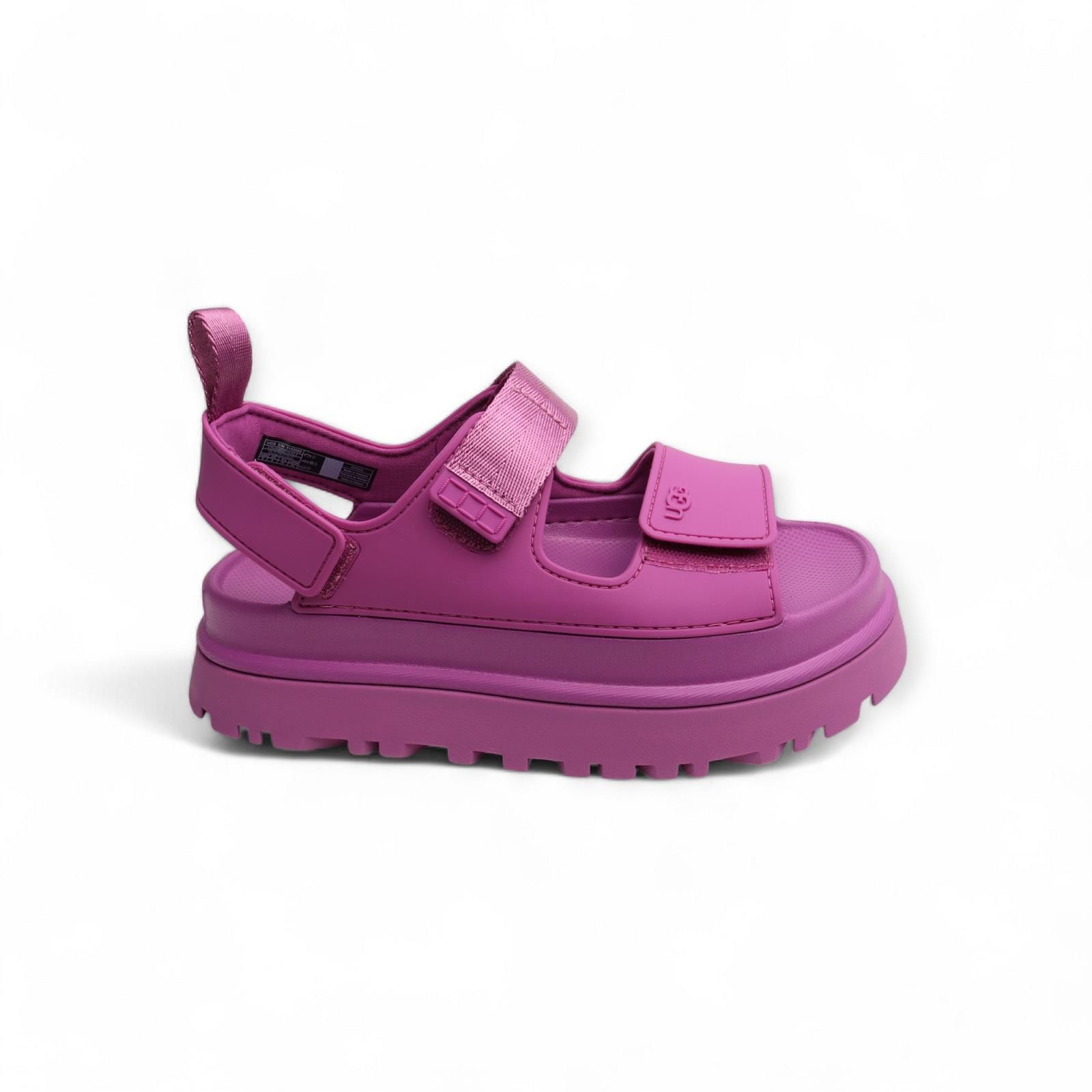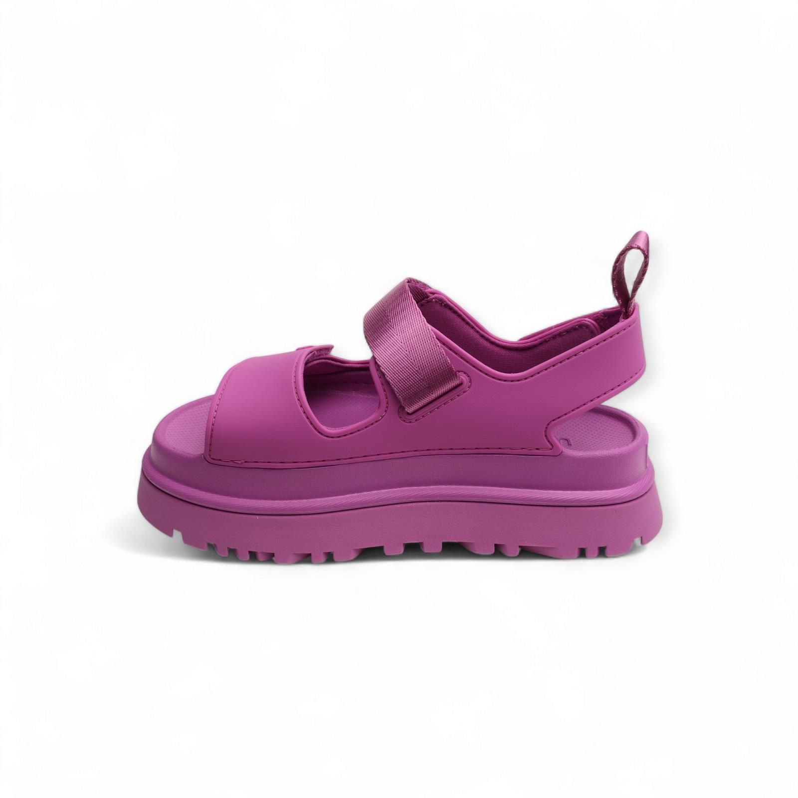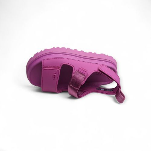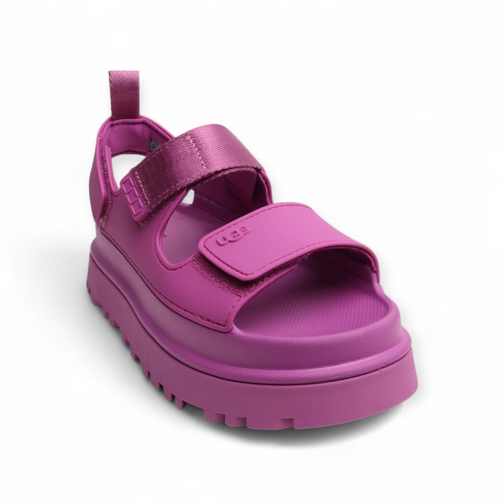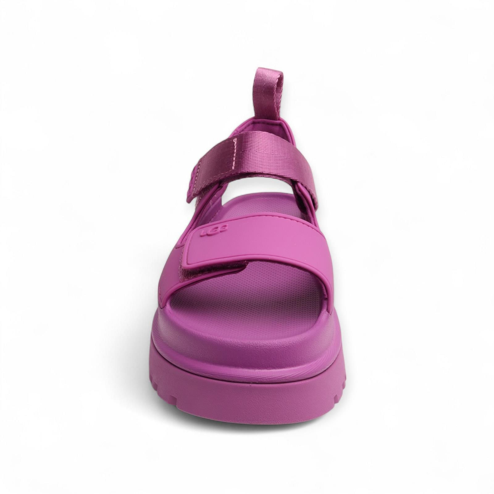 Sandaal GoldenGlow van Ugg in paars voor dames. Stap in deze lichtgewicht zomerknaller. Deze GoldenGlow is een volledig verstelbare sandaal. Hij is gemaakt van een verend en ondersteunende zool in suikerriet. Deze schoen, op een plateauzool met profiel en uitgevoerd met een voetbed met grip, ziet er net zo dynamisch uit als jij je voelt zodra je hem aan hebt.