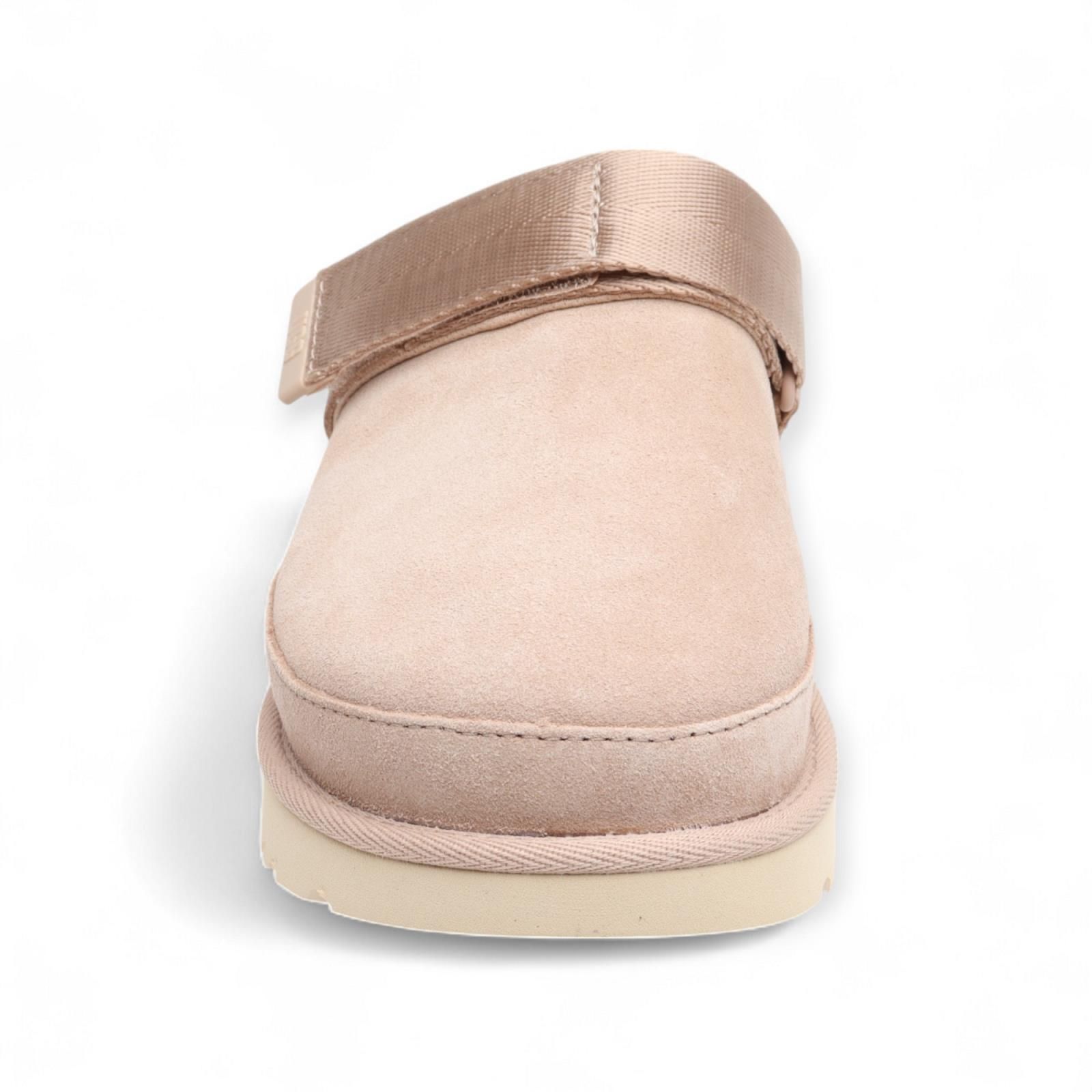 Deze veelzijdige klomp van UGG in zandkleur met plateauzool is gemaakt van fluweelachtig suède en past overal bij. Als je naar een klomp grijpt, wil je comfort, en de Goldenstar-klomp levert dat! De hielband heeft een draaibaar ontwerp voor een 2-in-1-draagoptie. Draag hem als een hielbandje of gelaagd over de bovenkant voor gemakkelijk aan- en uittrekken. Een ultralichte buitenzool die de hele dag demping en ondersteuning biedt.