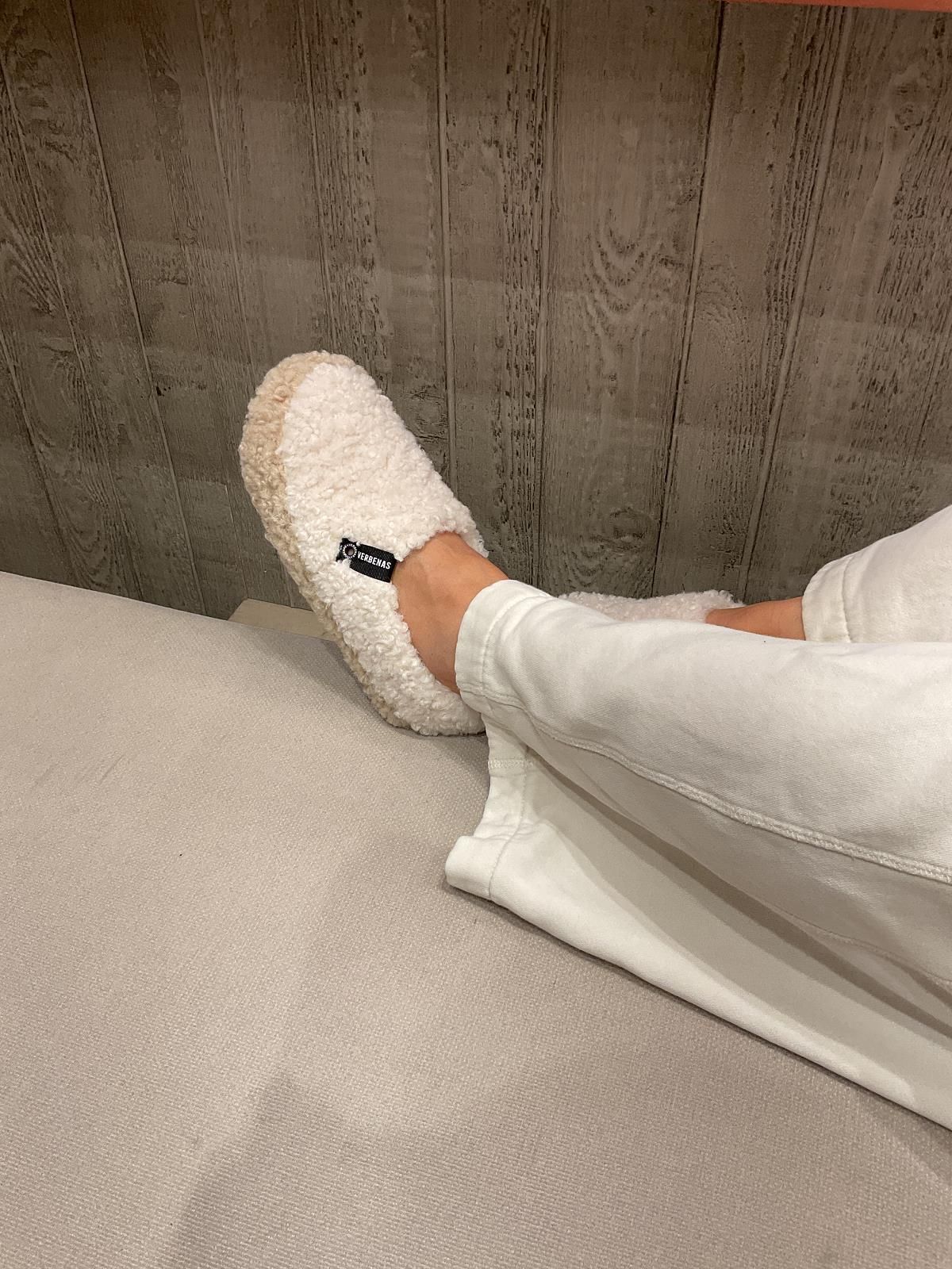 Pantoffel Yecla Curly van Verbenas voor dames. Deze pantoffel is in off wit met beige fluffy. Is toe aan de hiel waardoor deze pantoffel mooi aan de voet blijft. Voelt aangenaam en is op een antislip zool.