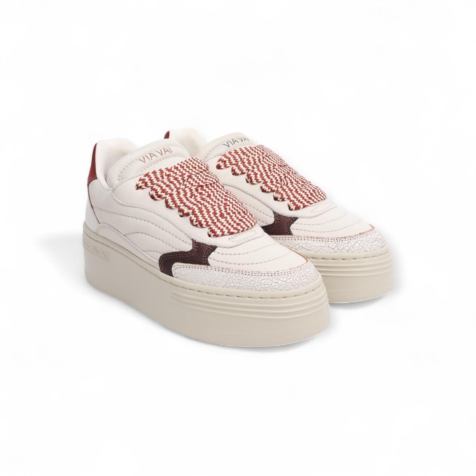 Sneaker Isa van Via Vai voor dames. Deze beige sneaker is met bordeaux accenten. Het unieke veterwerk en de speelse combinatie van materialen en kleuren maken deze sneakers extra speciaal. Is op een aangename plateauzool met een uitneembare binnenzool.
