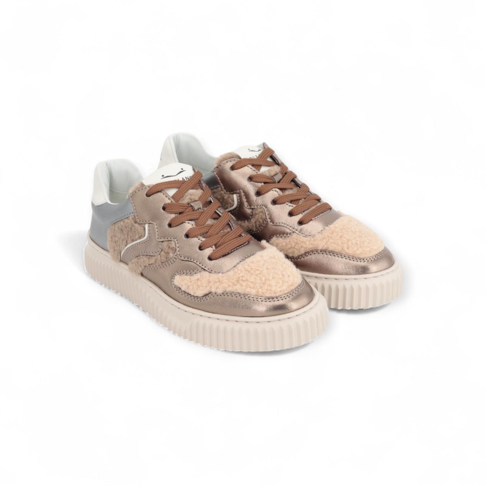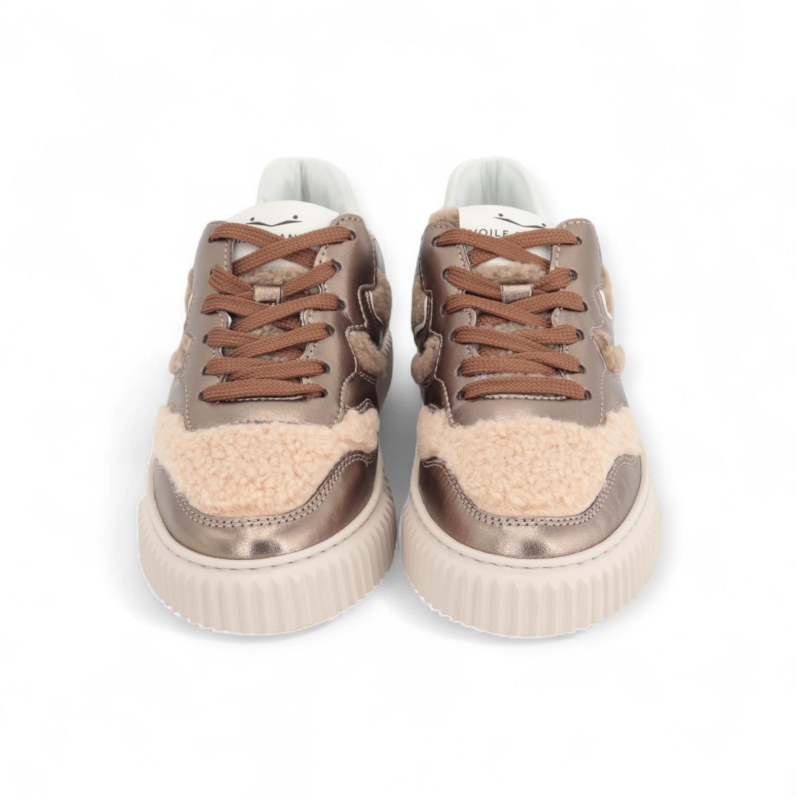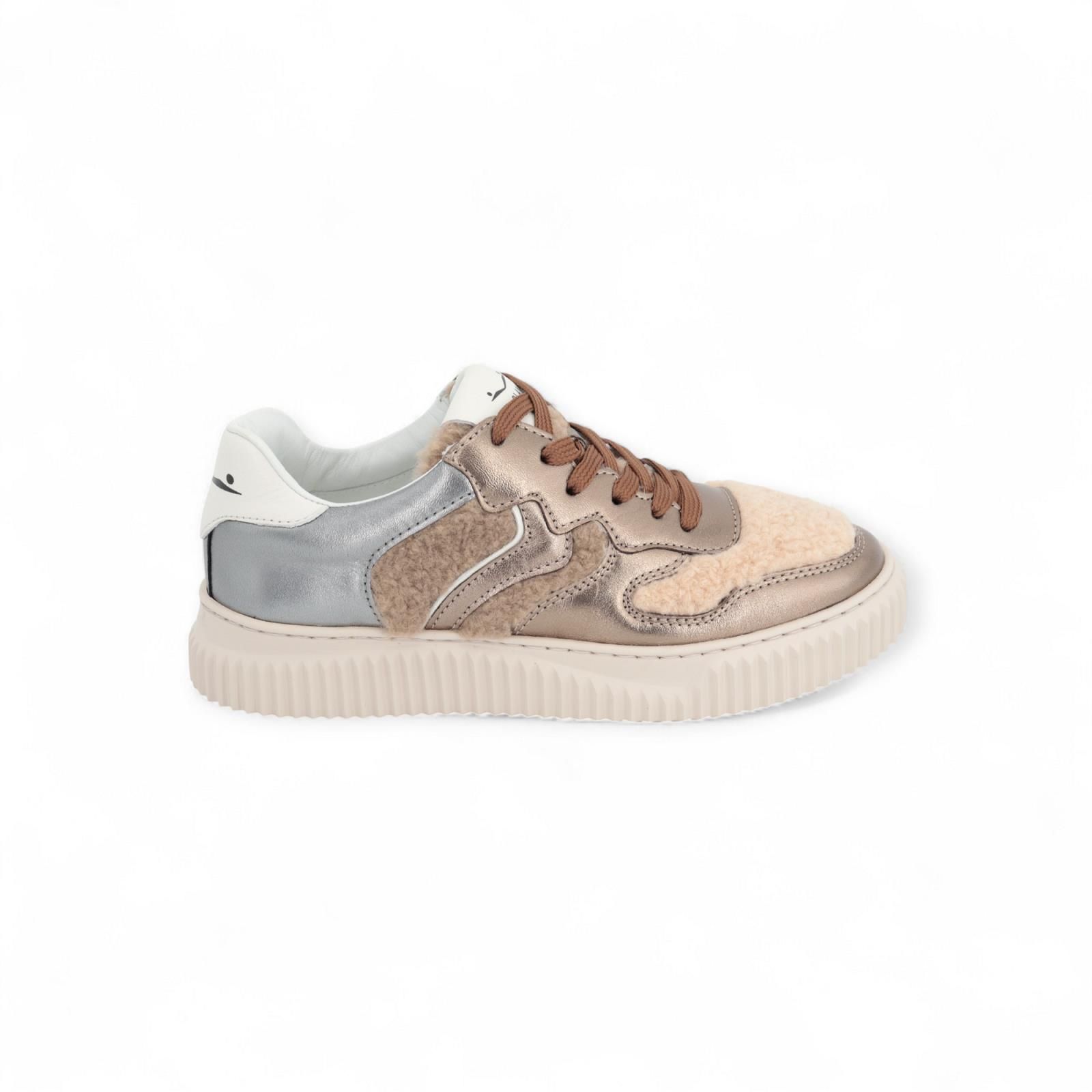 Sneaker Laura Metallic van Voile Blanche voor dames. Het metallic bovenwerk in brons en zilver wordt gecombineerd met contrasterende wollen inzetstukken. Mooi afgewerkt met witte flappen en cognac veters. Heeft een sportieve zool met uitneembare binnenzool. Deze sneaker is de perfecte combinatie tussen stijl & vintage.
