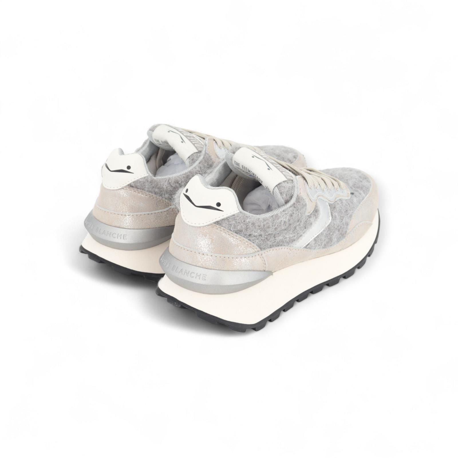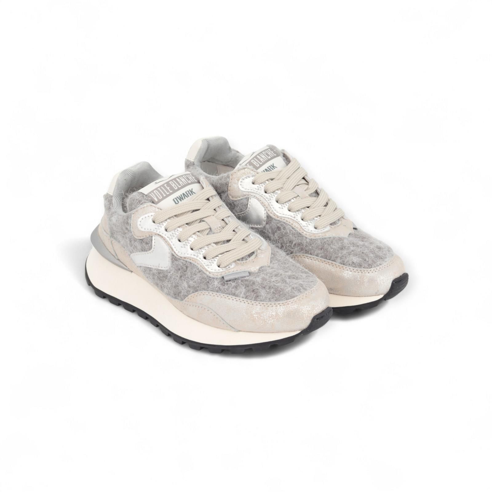 Sneaker Qwark Hype van Voile Blanche voor dames. Deze runner is in leer met grijs stof. Is mooi afgewerkt met zilver stukken en een zilver 3D hiel. Heeft een uitneembare binnenzool en een ultralichte rubberen buitenzool.