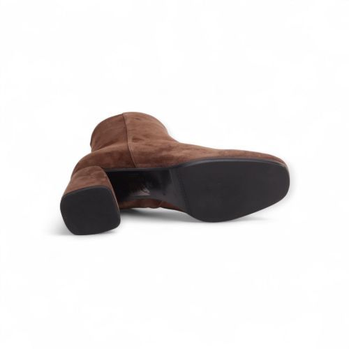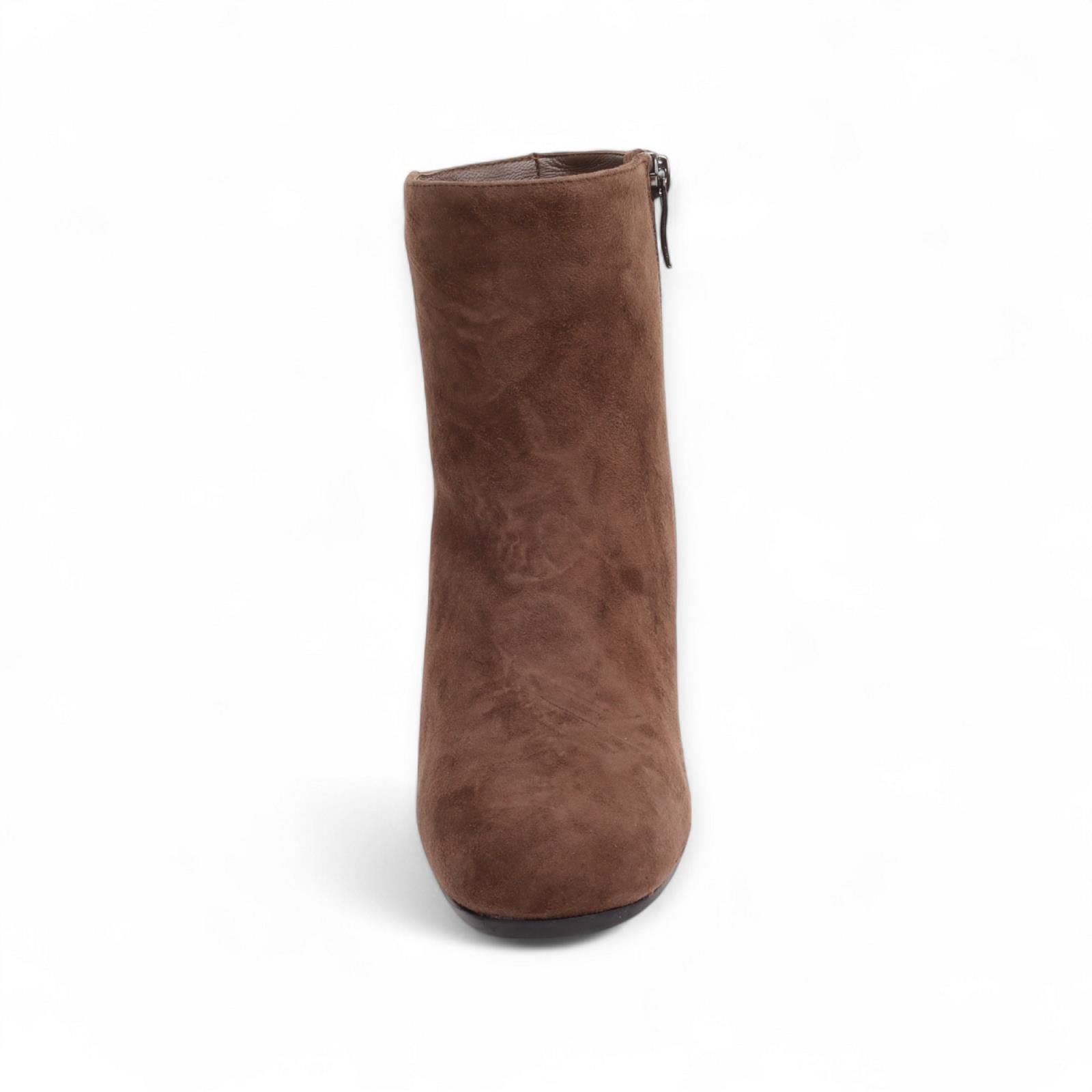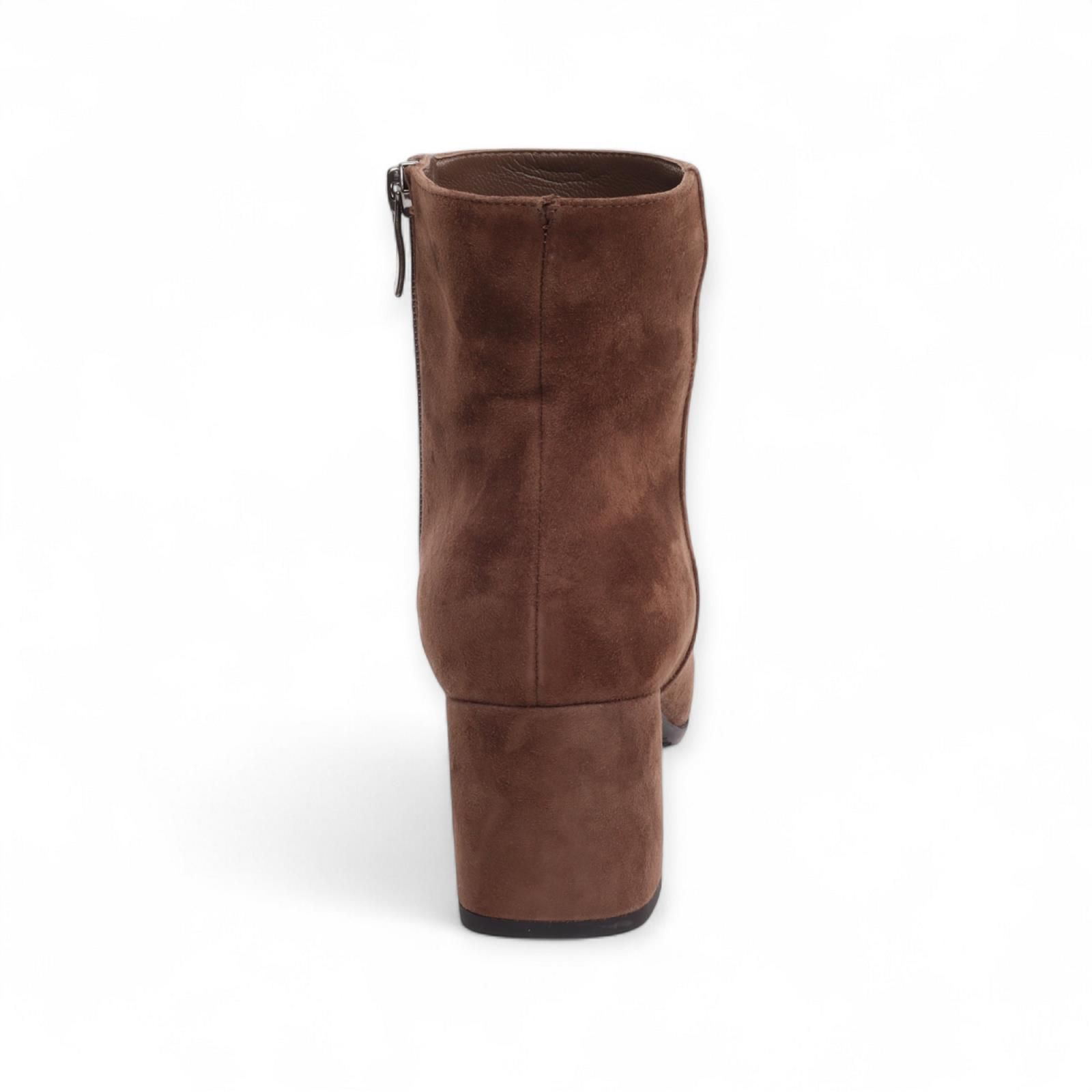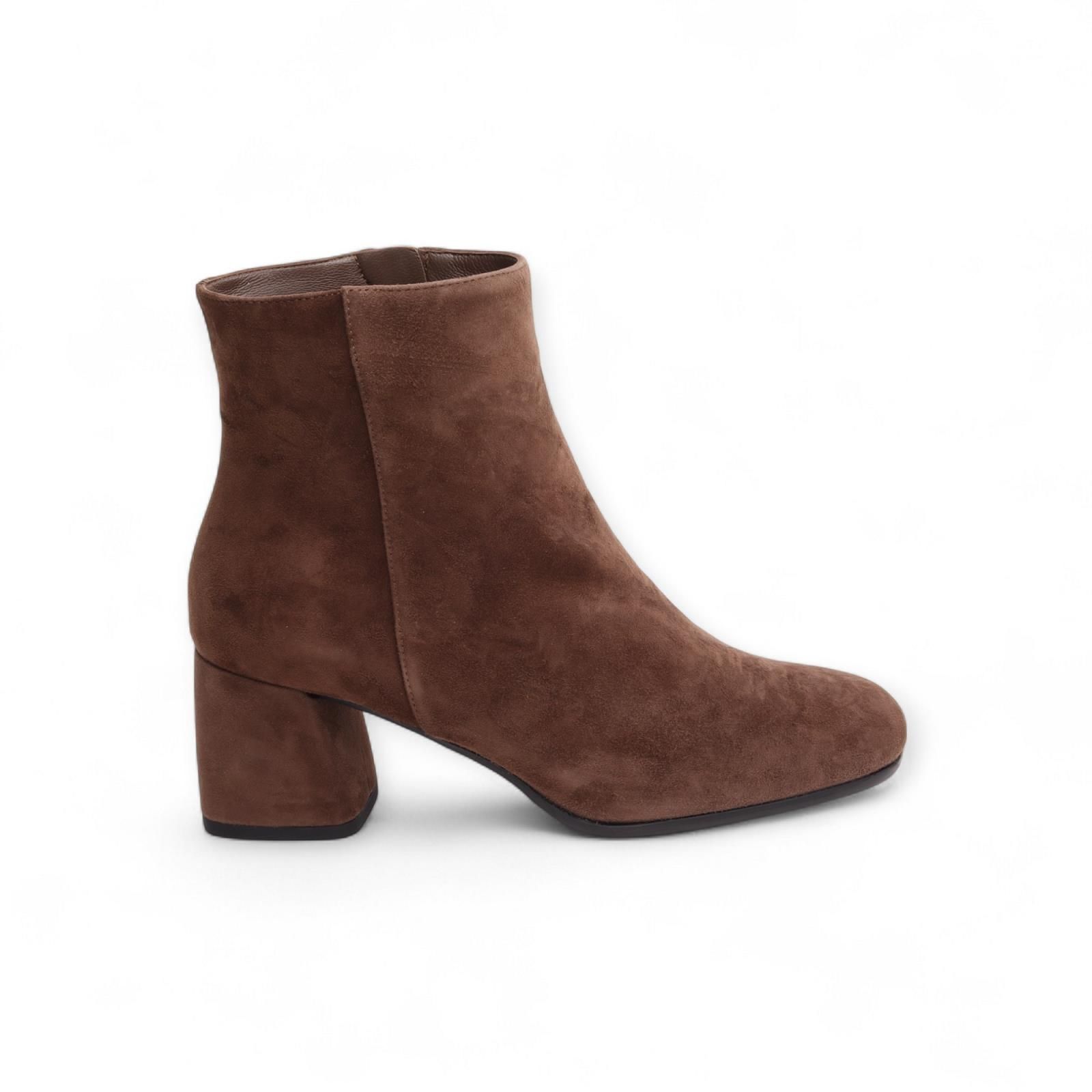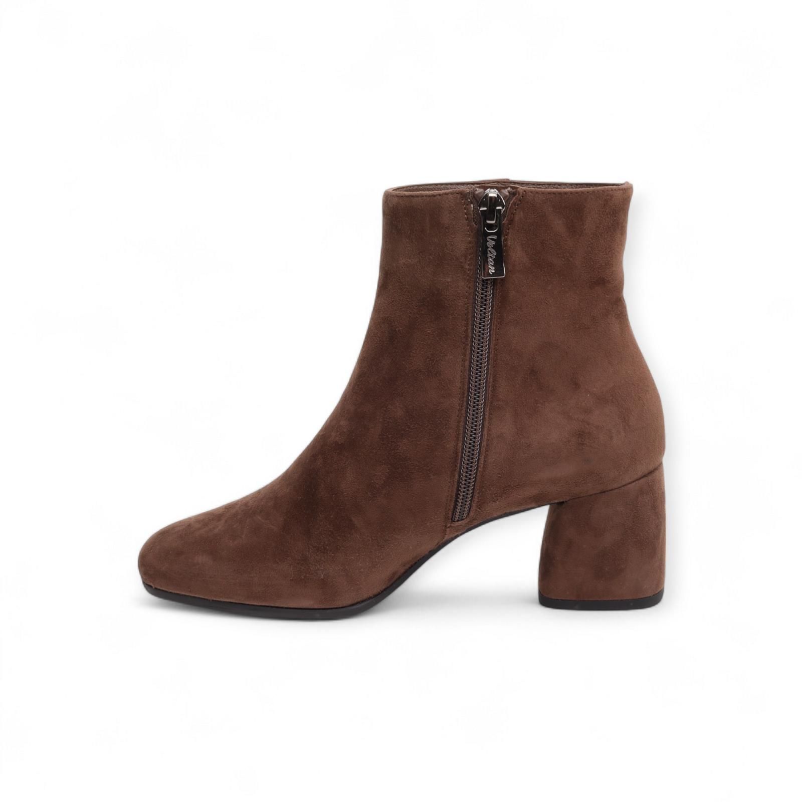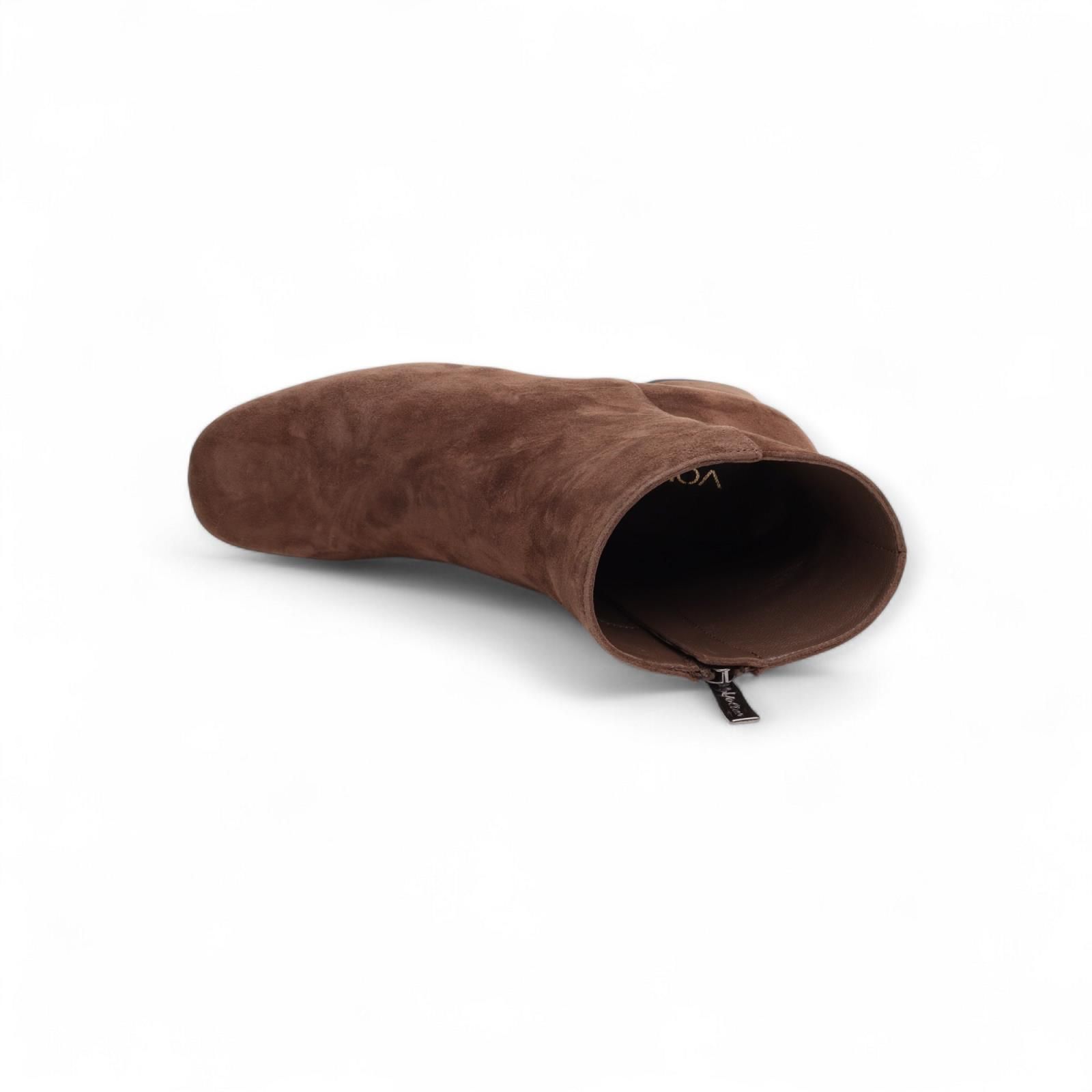 Enkellaars van Voltan voor dames . Dit tijdloos enkellaarsje is in bruin suède. Heeft een ritssluiting aan de zijkant en een stekking aan de andere kant. Is met een ronde neus en een blokhakje van 5-5.5cm hoog op een een antislipzool.