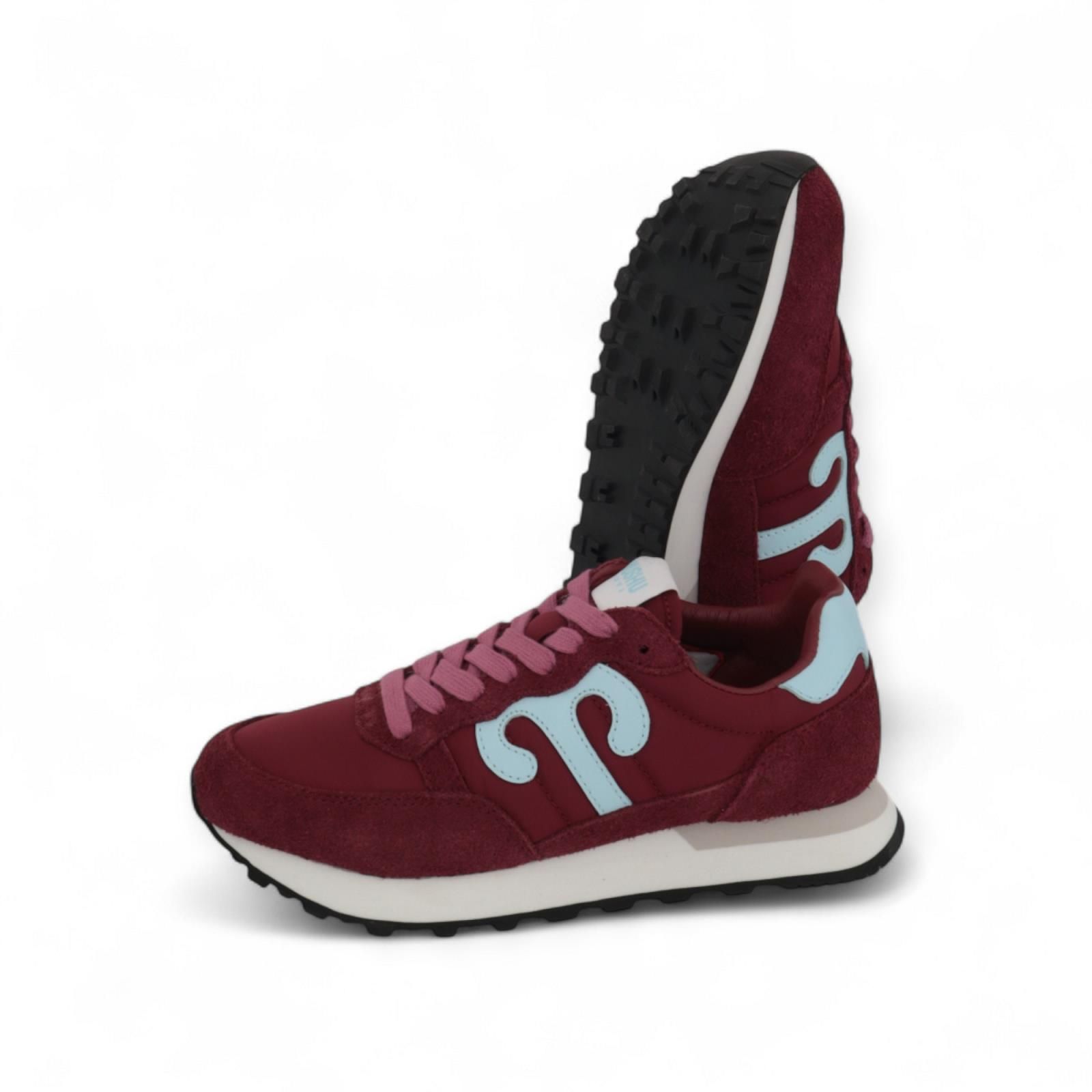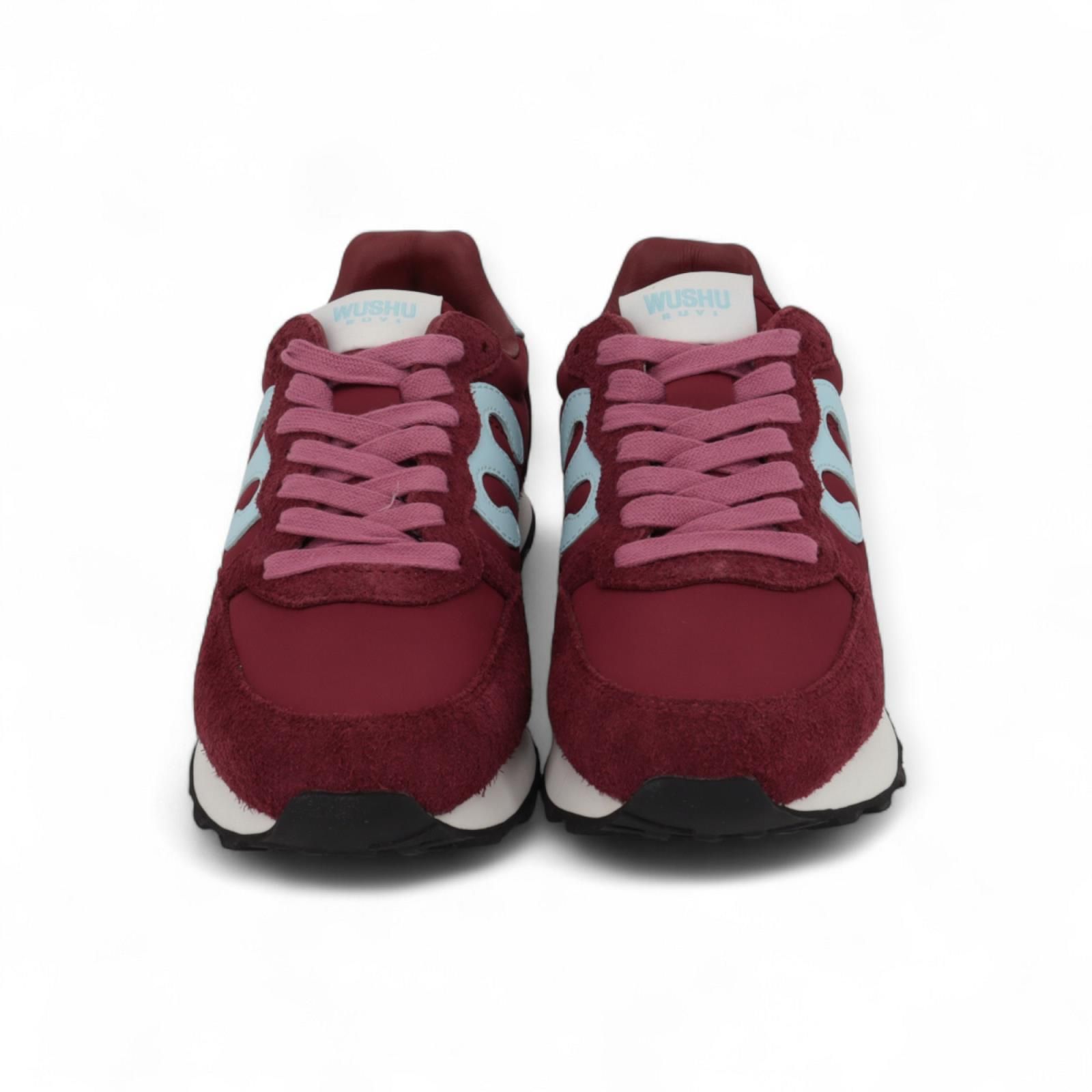 Sneaker Ruyi Art Club 56 van Wushu voor dames. Dit runnermodel is in bordeaux suède met nylon. Mooi afgewerkt met lichtblauw leer aan de zijkant met Ruyi logo en hielflap. De binnenzool voelt zeer zacht aan en is uitneembaar.