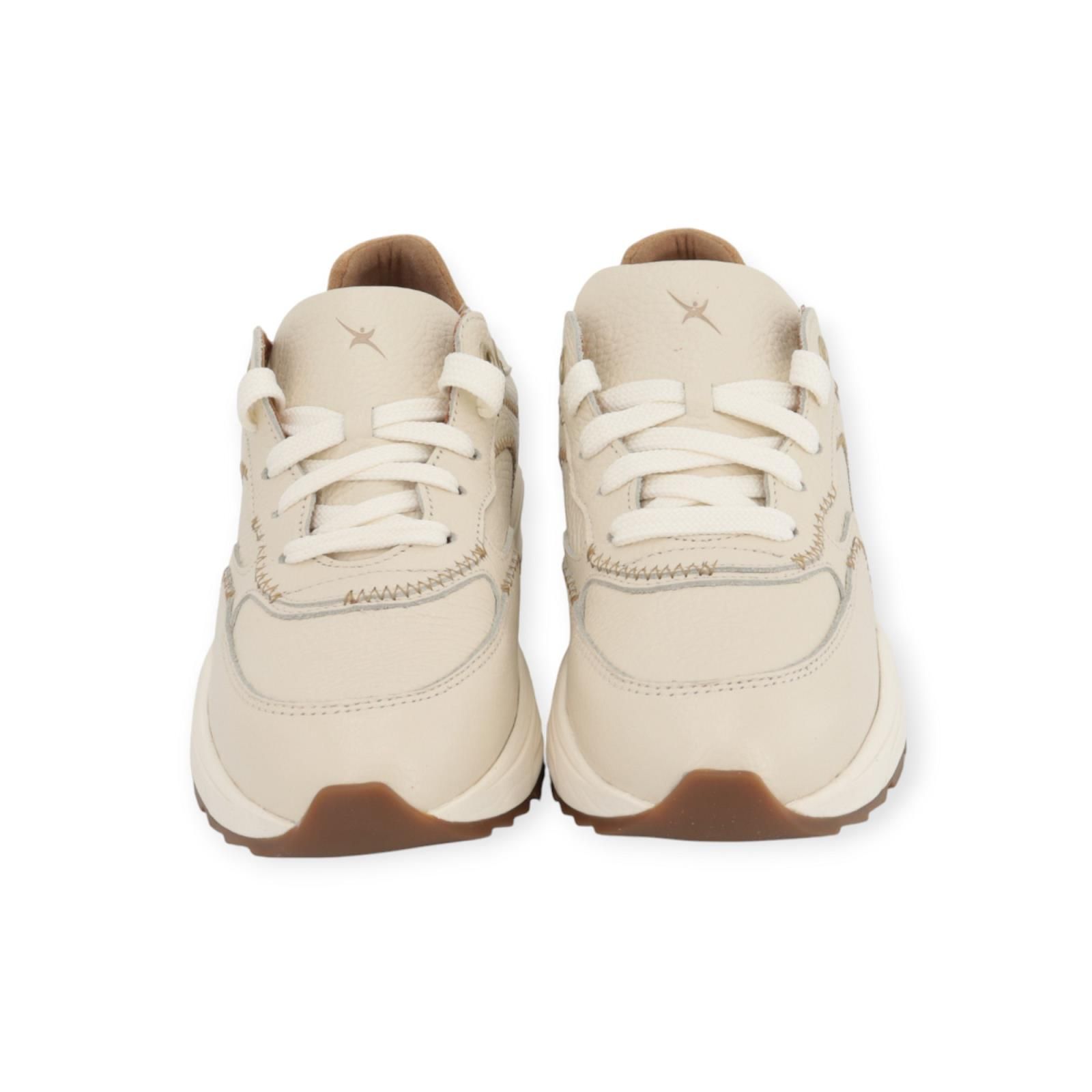 Sneaker Ponte Vecchio van Xsensible voor dames. Deze runner is gemaakt van off wit leer met camel stiksels. Witte zolen, platte veters en het gestroomlijnde design onderstrepen de moderne, dynamische look. De binnenzool is uitneembaar en heeft een G breedte.
