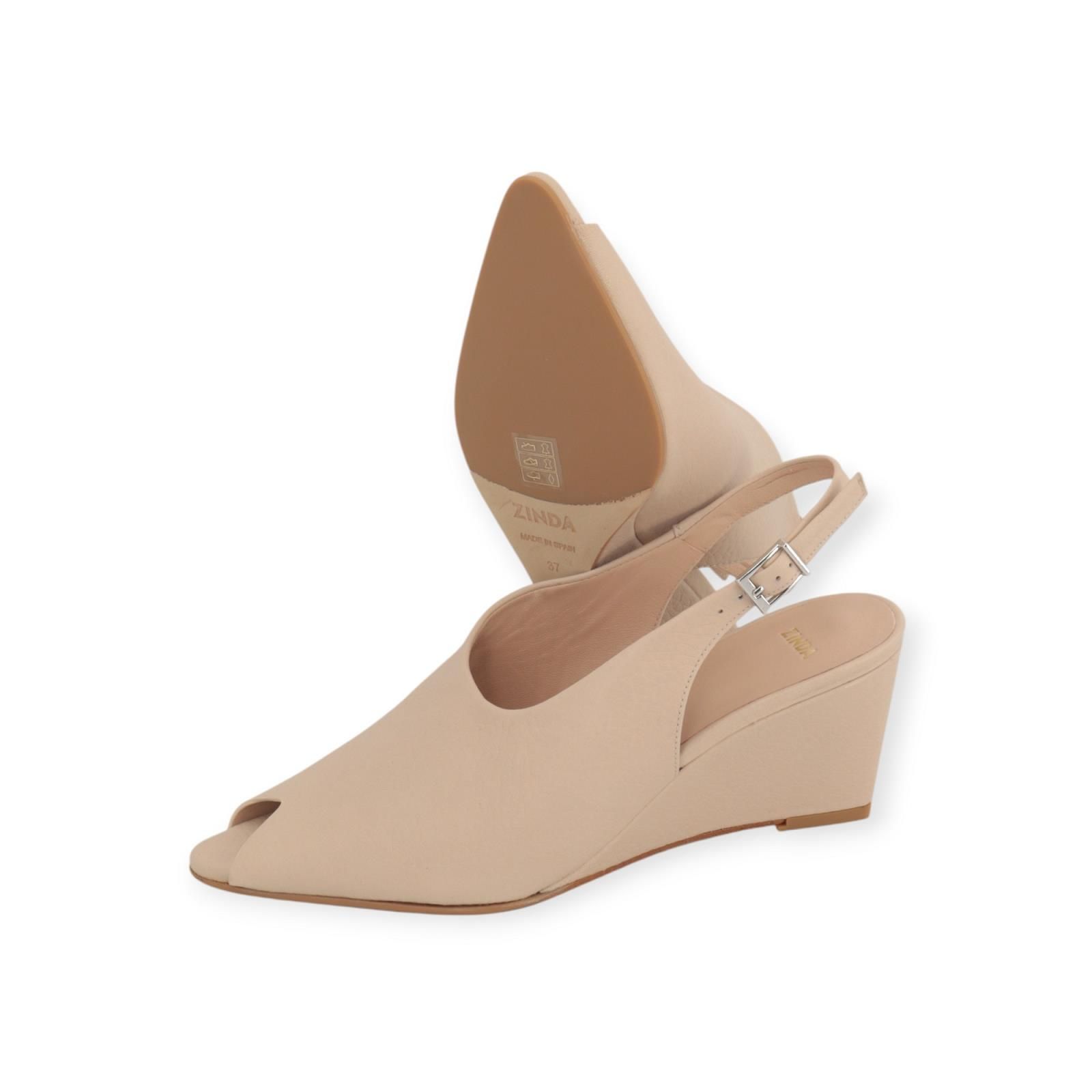 Sandaal 3418 van Zinda voor dames. Deze elegante sandaal is in beige zacht leer. Heeft een band die ver over de wreef komt. Blijft mooi vast aan de voet door het bandje rond de hiel met gespsluiting. Is op een sleehak van 5cm hoog met een antislip zool. Pure klasse in deze prachtige nieuwe stijl.