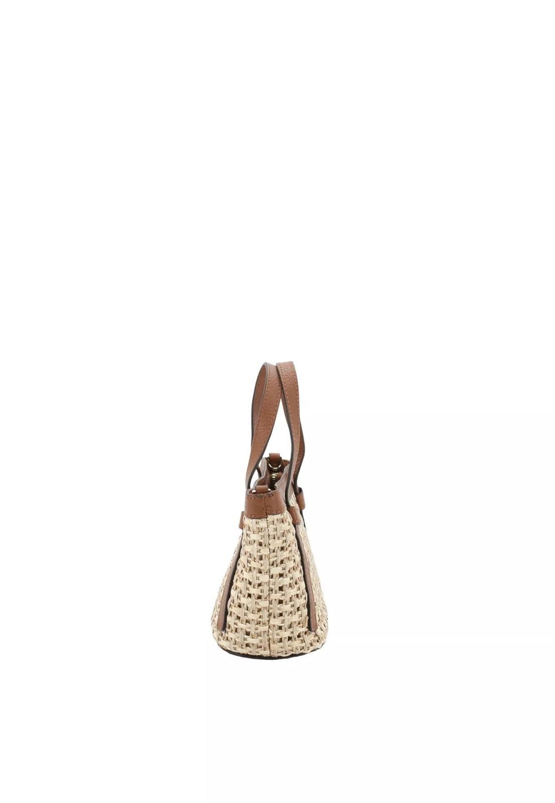 Handtas Cosmo Mini van Abro voor dames. Deze nieuwe stijl is in beige raffia gevlochten materiaal met cognac leer omrand en handvaten. Is afgesloten met een rits en heeft binnenin 2 steekvakken waarvan 1 met ritssluiting. Heeft een afneembare verstelbare schouderband. Dit model is zeer elegant en een topper voor in de zomer!