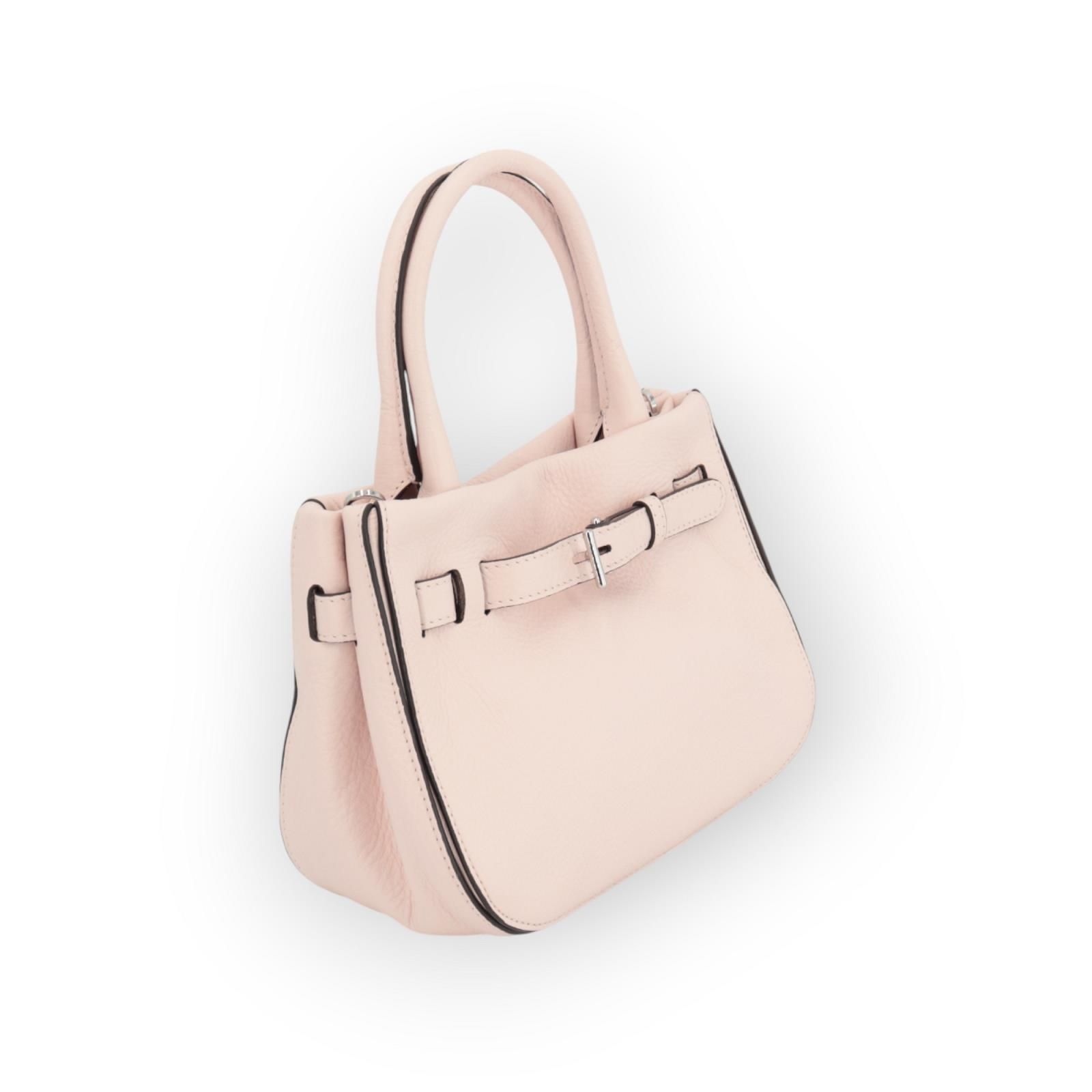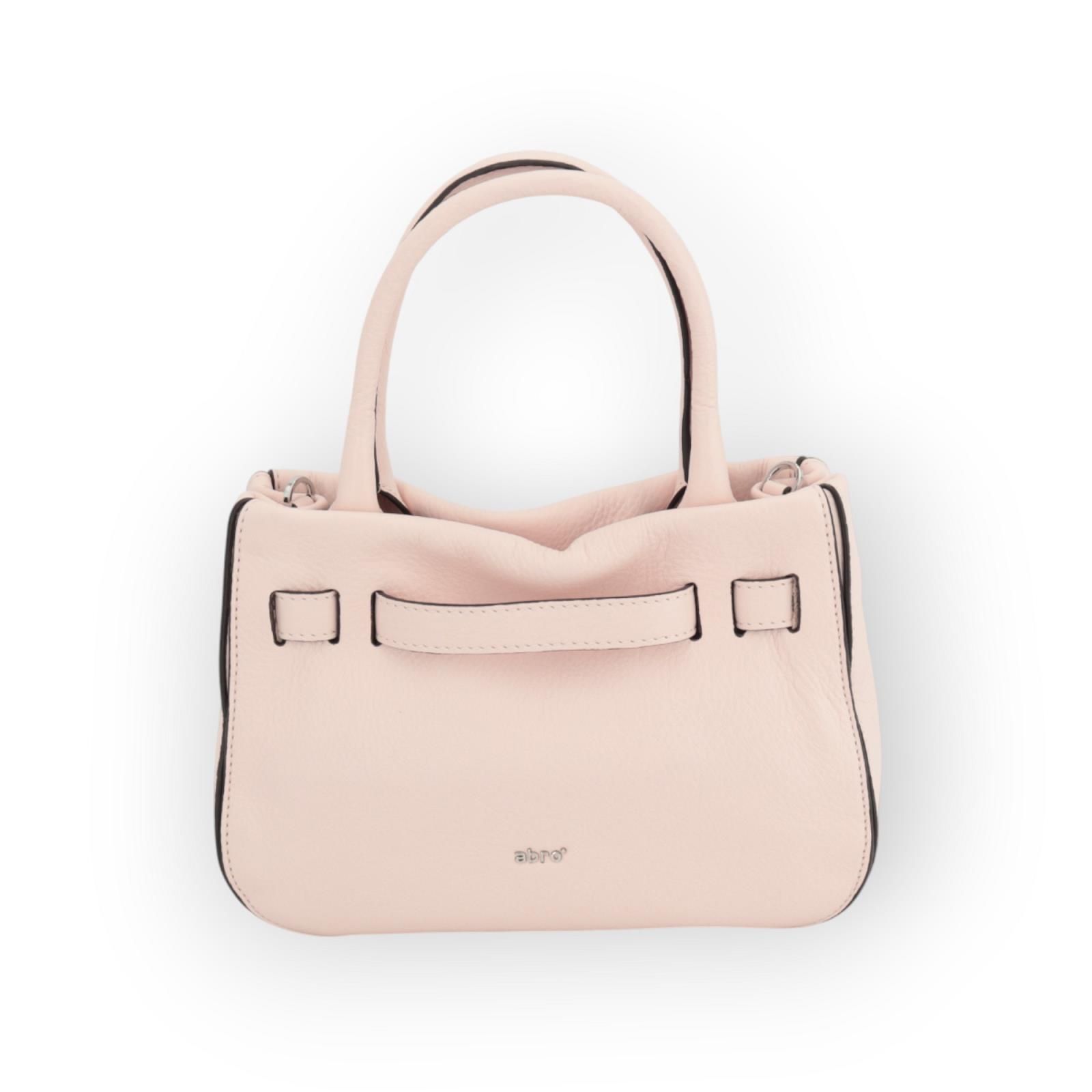 Hand-en schoudertas Jill van Abro. Deze handtas is in roze zacht leer. Heeft 2 handvaten en een afneembare, verstelbare schouderband. Is afgesloten met een magneetsluiting en heeft een ruim binnenzak met 1 steekvak met rits. Is mooi afgewerkt met zachte decoratieve leren banden. Met onderaan het logo ‘Abro’ in goud.