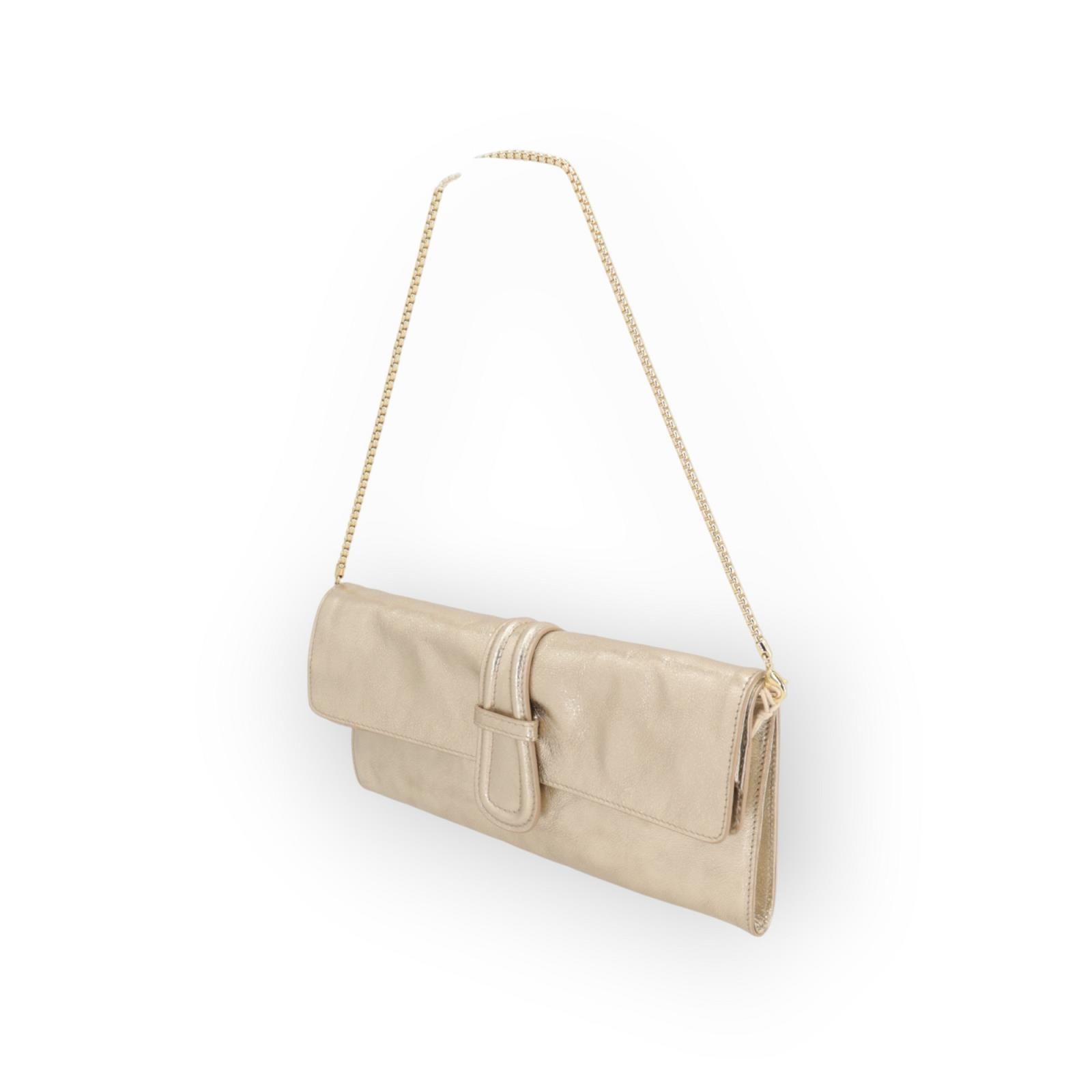 Clutch Luna van Abro voor dames. Deze clutch handtas is gemaakt in goud shining Italiaans leer. Is met een magnetische klepsluiting en heeft een ruim binnenvak en 1 vak met ritssluiting. Heeft een afneembare gouden ketting.