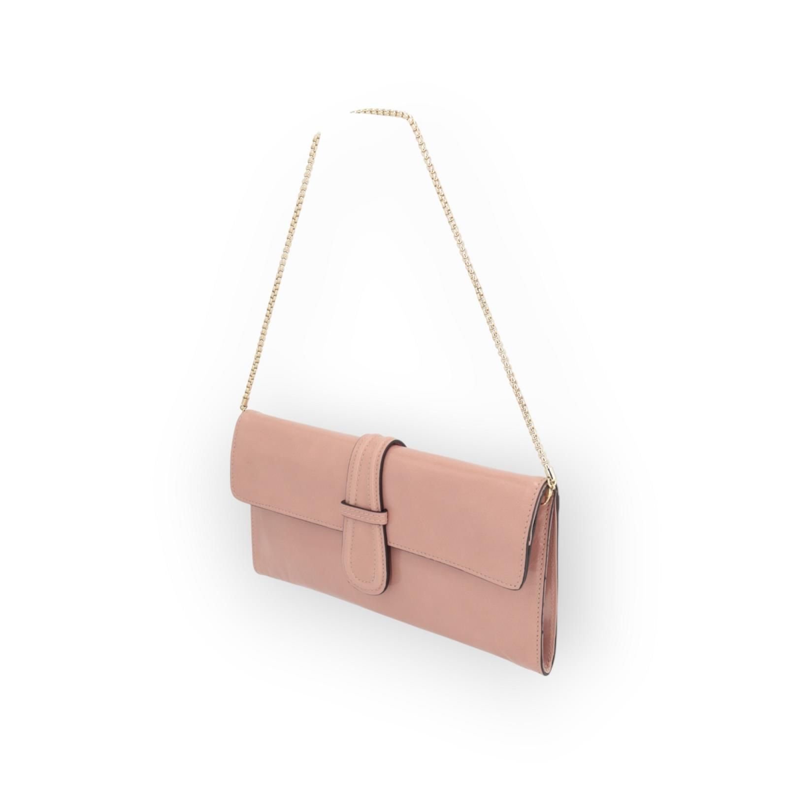Clutch Luna van Abro voor dames. Deze clutch handtas is gemaakt in roze Italiaans leer. Is met een magnetische klepsluiting en heeft een ruim binnenvak en 1 vak met ritssluiting. Heeft een afneembare gouden ketting .