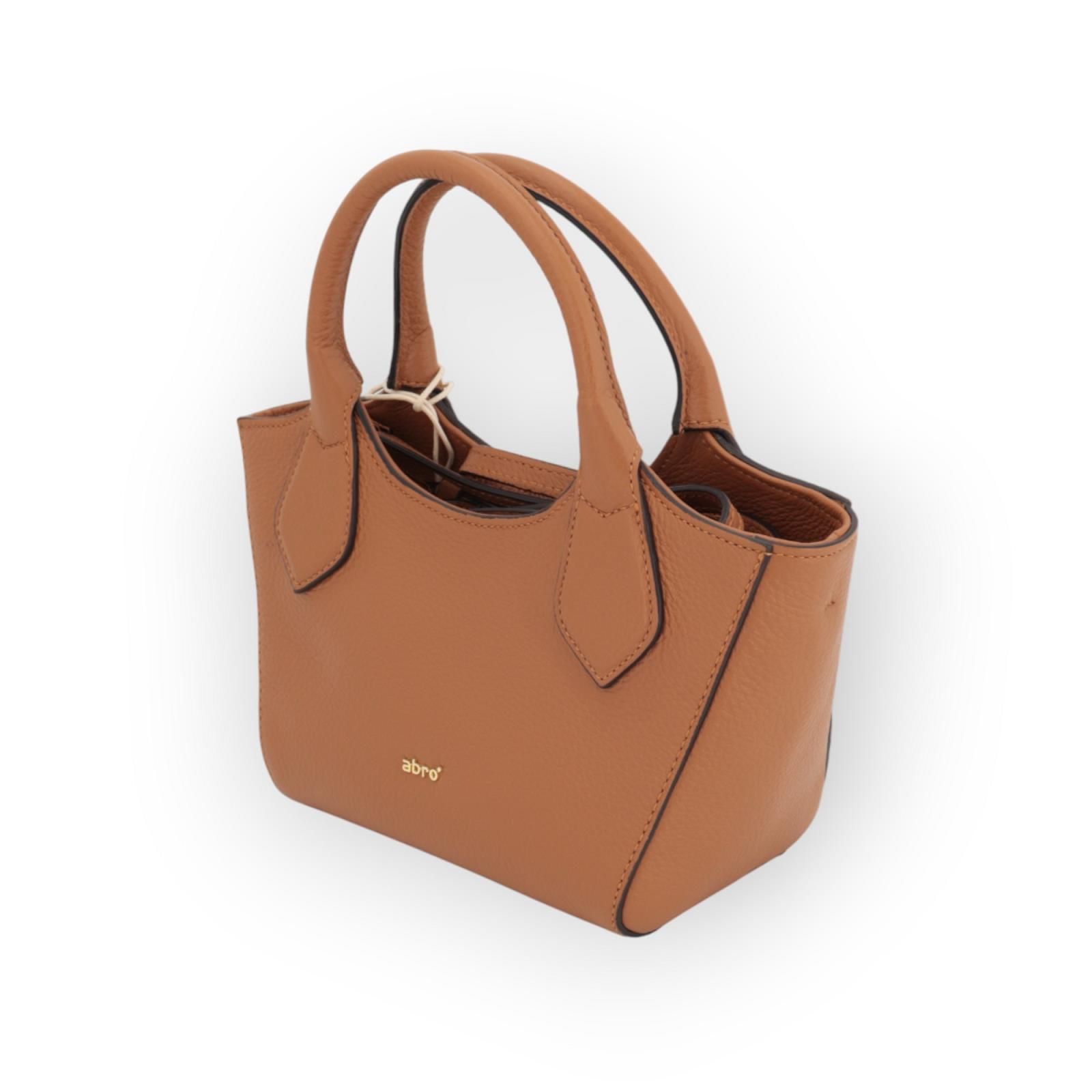 Hand- en schoudertas Senta van Abro voor dames. Deze handtas is in cognac leer. Heeft 2 korte handvaten en 1 afneembare verstelbare schouderband. Is afgesloten met een ritssluiting en heeft binnenin 2 steekvakken waarvan 1 met rits. Is een elegant, feestelijk model door zijn vormen en grootte.