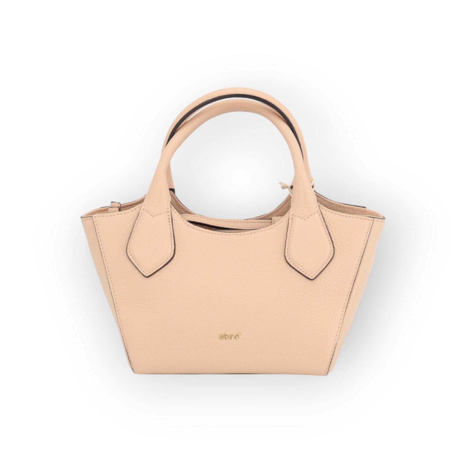 Hand- en schoudertas Senta van Abro voor dames. Deze handtas is in zacht nude leer. Heeft 2 korte handvaten en 1 afneembare verstelbare schouderband. Is afgesloten met een ritssluiting en heeft binnenin 2 steekvakken waarvan 1 met rits. Is een elegant, feestelijk model door zijn vormen en grootte.