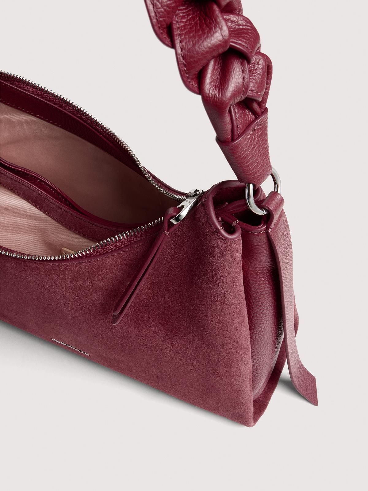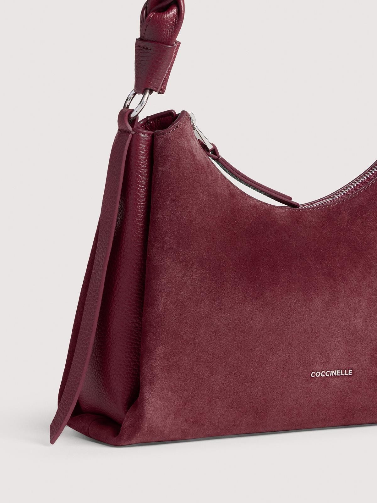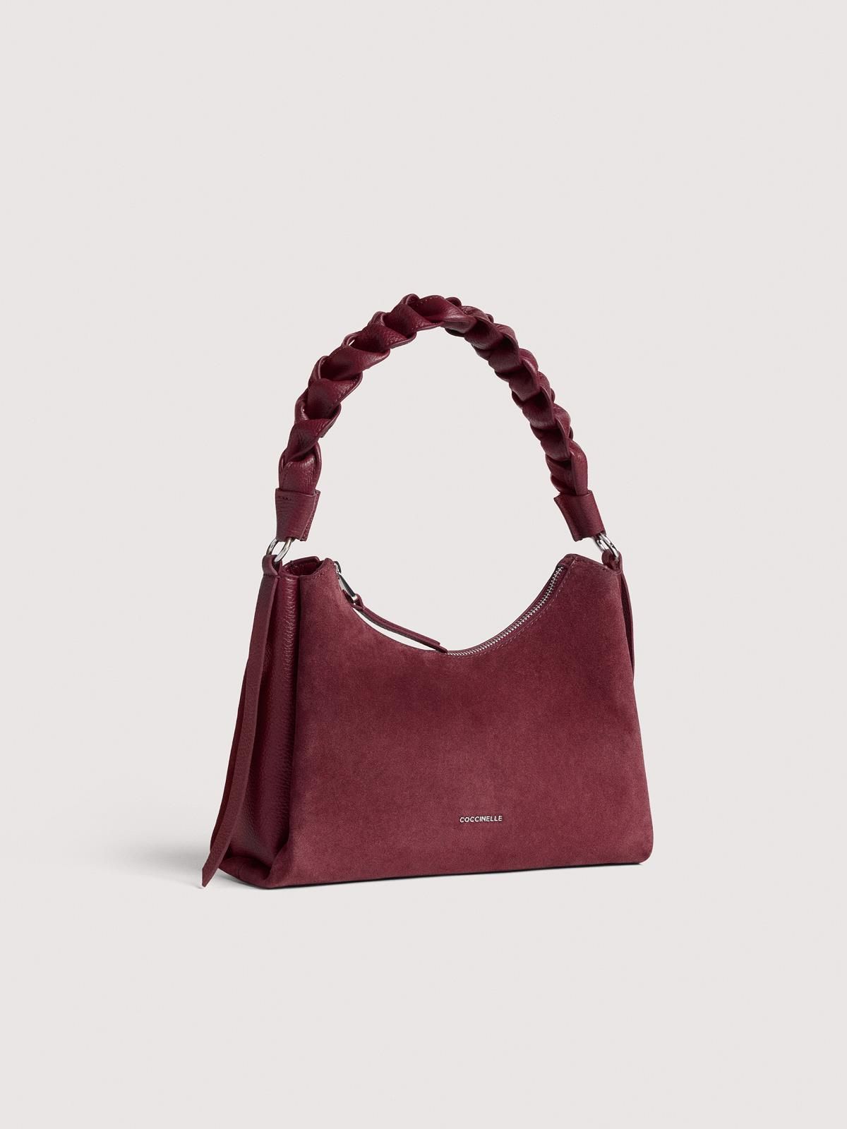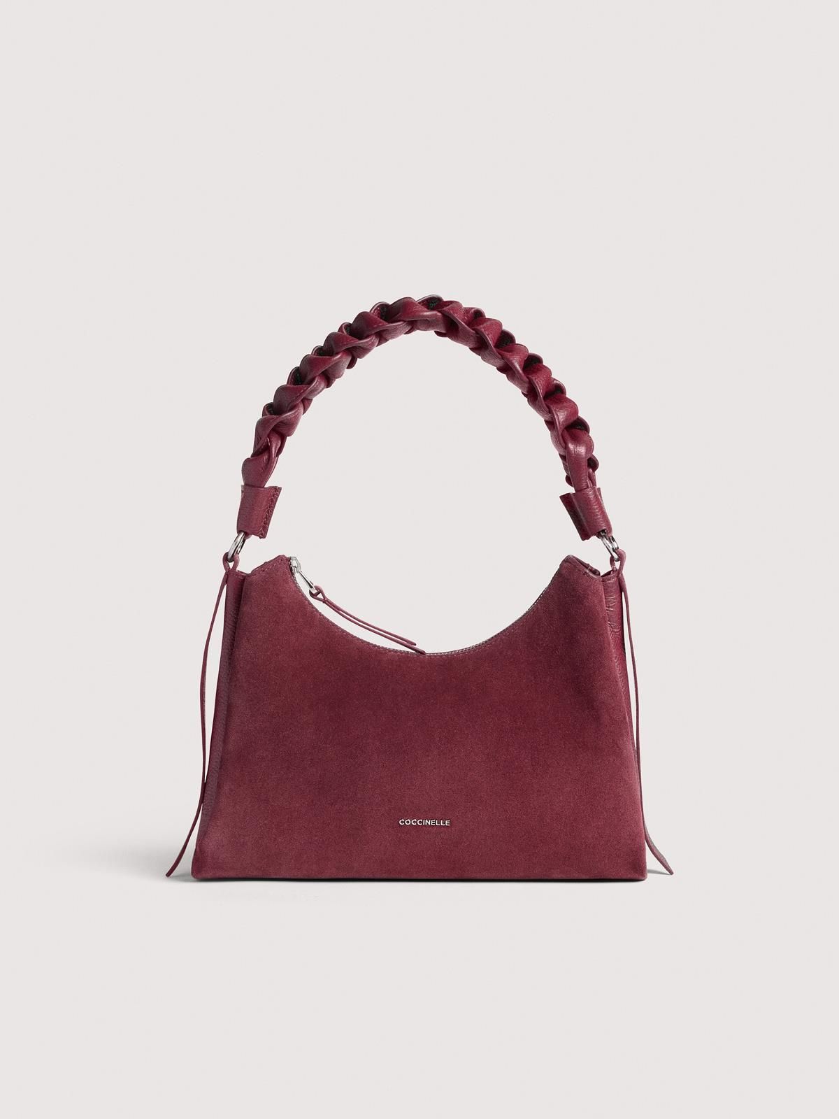 Hand – en schoudertas Coccinelle Boheme Suède in bordeaux. Deze schoudertas voor dames heeft een gevlochten handvat wat het model zeer elegant maakt. Is volledig in suède en ideaal voor het dagelijks gebruik. De extra linten aan de zijkant maken het model nog vrouwelijker. Is gemaakt uit 3 binnenvakken waarvan 1 met ritssluiting. Logo gestempeld in goud als extra detail.