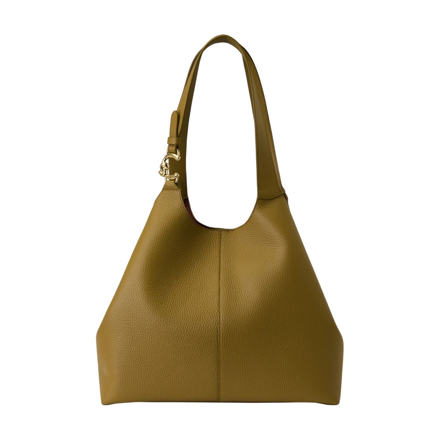 Hand- en schoudertas C-EASY large van Coccinelle in groen leer. Deze handtas heeft aan de handvaten het C met plectrum detail in goud. Is afgesloten met een drukknoop sluiting en een riem met drukknop voor het model terug mooi in zijn vorm te krijgen en als extra afsluiting. De binnenkant is 1 open ruim vak met een aparte etui in groen leer met ritssluiting die je kan afhalen met behulp van karabijnhaakje.