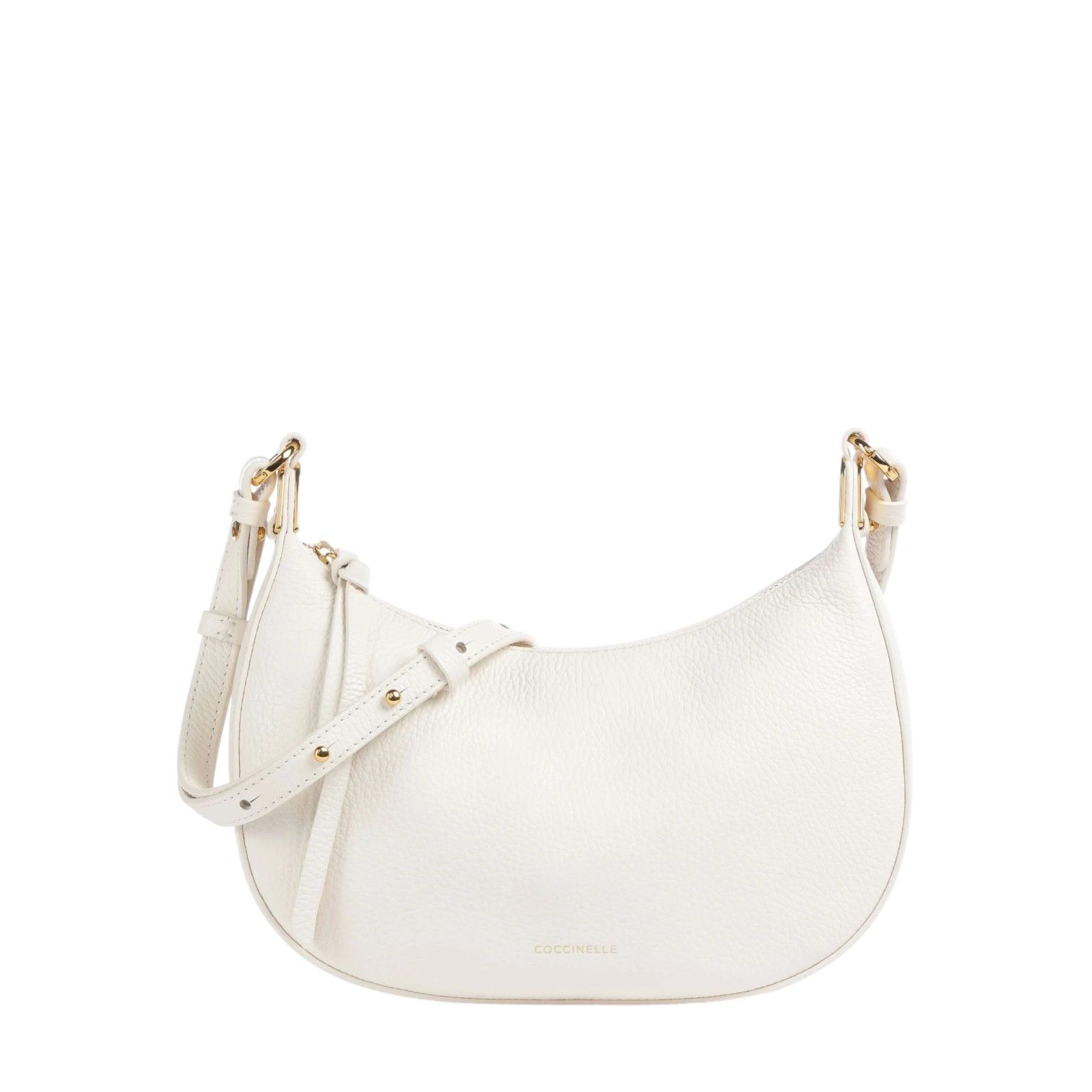 Crossbody Fujiko van Coccinelle voor dames. Deze handtas is in offwit generfd leer. Is mooi afgewerkt met gouden details en ronde vormen. Is afgesloten met een ritssluiting en heeft een vaste, verstelbare schouderband. Heeft binnenin 1 steekvakje.