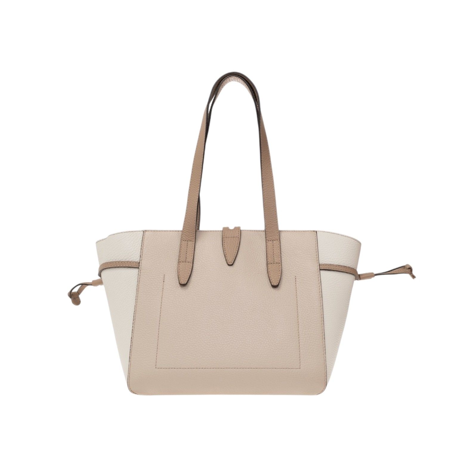 Hand -en schoudertas Basrfua Large van Furla voor dames. Deze handtas is een ruime shopper in beige en off wit leder. Heeft dubbele handvaten en is afgesloten met een ritssluiting en met een draaisluiting. Heeft aan de zijkant een verstelbaar silhouet dankzij het trekkoord. Heeft binnenin ook nog een steekvakje met ritssluiting. Is afgewerkt met een ring voro sleutels of decoratieve bedeltjes aan te hangen.
