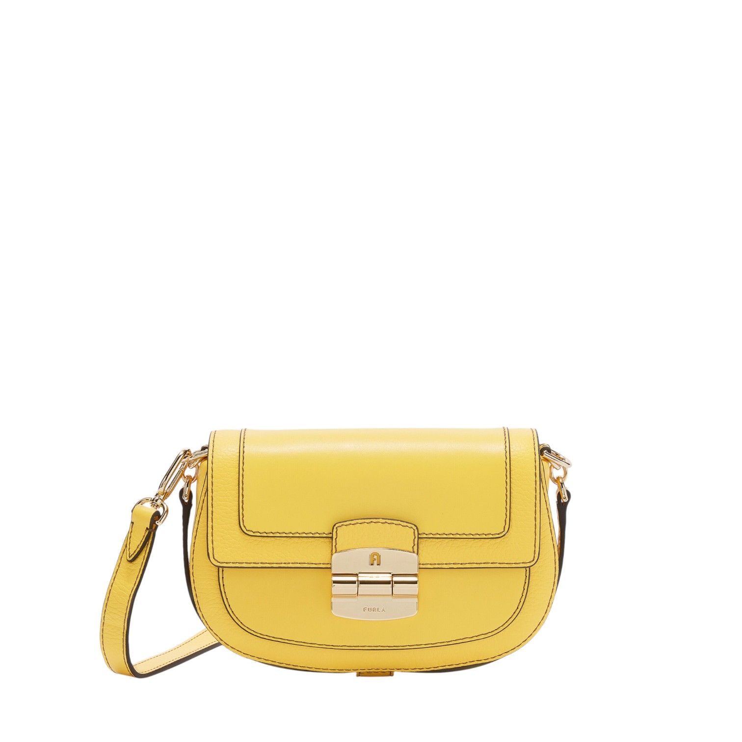 Deze Furla Club 2 Crossbody S in geel. De afgeronde lijnen uitgevoerd in zacht en glad leer hebben een verfijnde uitstraling. Hij kan op de schouder of crossbody worden gedragen. Voorzien van een afneembare korte of lange riem en afgesloten met een klepsluiting.