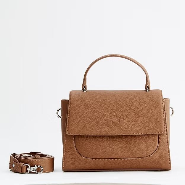 Hand-en schoudertas Charlène van Nathan-Baume voor dames. Deze prachtige handtas is het allernieuwste model van Nathan. Deze handtas is in cognac leer met een flap en sluitklep. Heeft 2 korte handvaten en een afneembare, verstelbare schouderband. Is mooi afgewerkt met het iconisch N logo op de voorkant van de handtas. Binnenin bestaat de handtas uit 2compartimenten; 1 ruim met aan de zijkant een steekvak met ritssluiting en dan nog 1 steekvak.