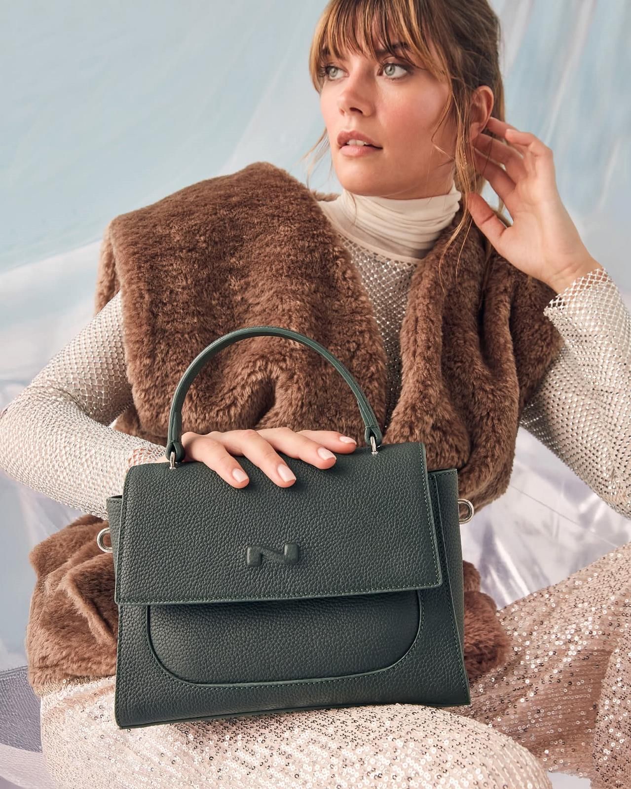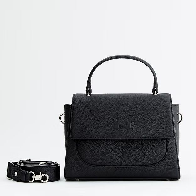 Hand-en schoudertas Charlène van Nathan-Baume voor dames. Deze prachtige handtas is het allernieuwste model van Nathan. Deze handtas is in zwart leer met een flap en sluitklep. Heeft 2 korte handvaten en een afneembare, verstelbare schouderband. Is mooi afgewerkt met het iconisch N logo op de voorkant van de handtas. Binnenin bestaat de handtas uit 2compartimenten; 1 ruim met aan de zijkant een steekvak met ritssluiting en dan nog 1 steekvak.