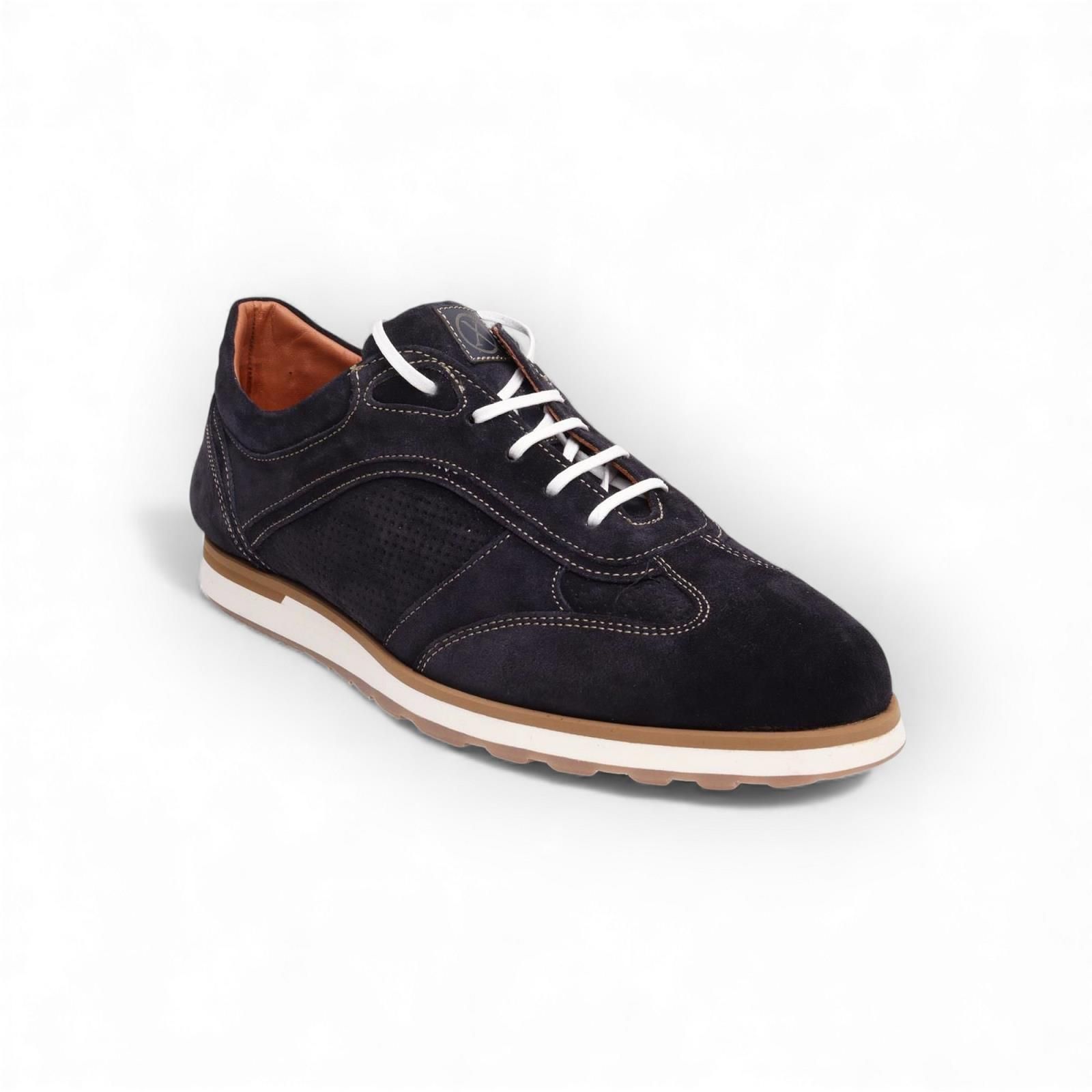 Jerry sneaker voor heren van Ambiorix. Blauwe runner van Ambiorix met witte stiksels en witte veters. Is breed en comfortabel aan de voet. De binnenzool is uitneembaar.