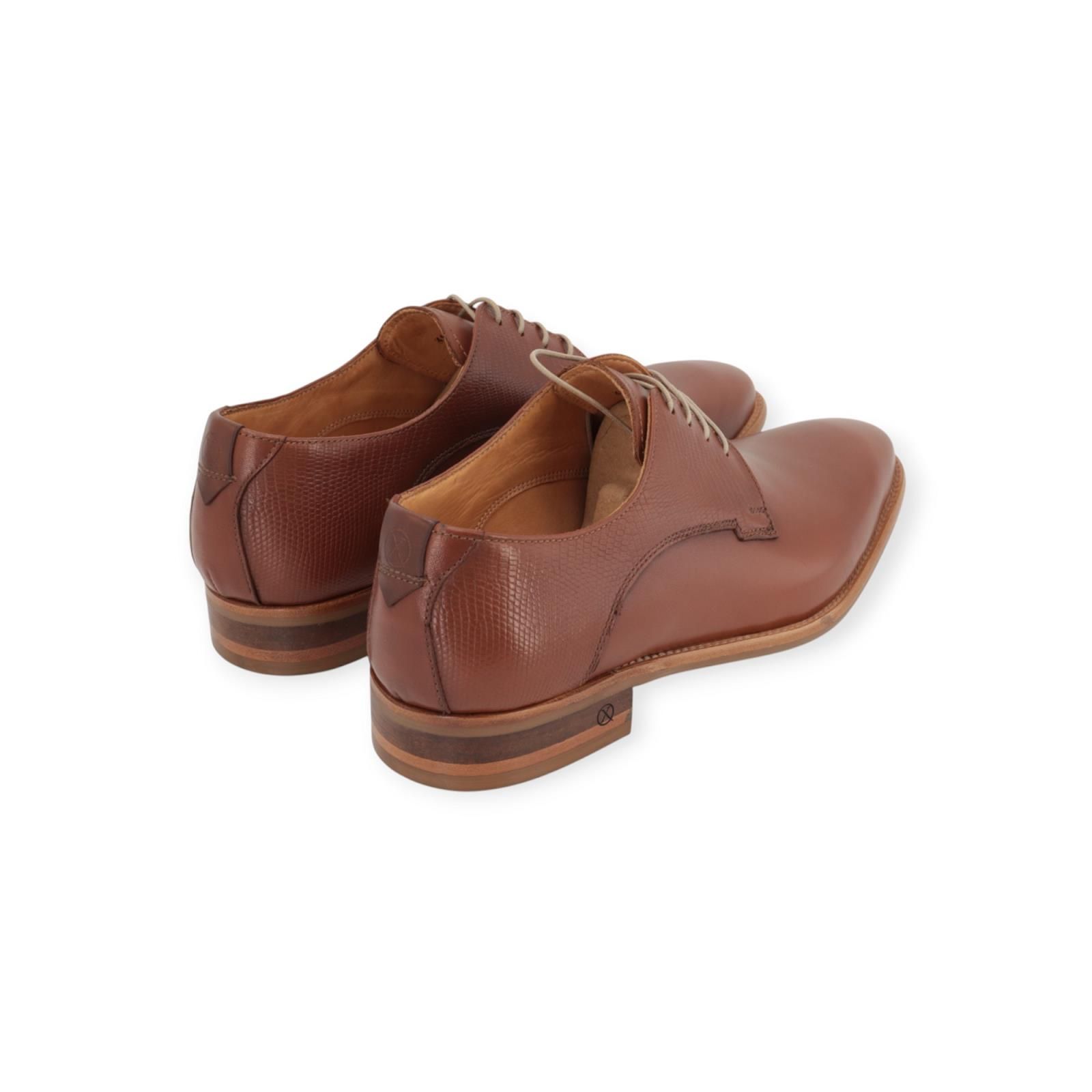 Veterschoen Rodi Burnisch Oak van Ambiorix voor heren. Deze veterschoen is in cognac zacht kalfsleer. Mooi afgewerkt met een subtiele laserprint aan de zijkant en hielflap. Heeft een houten zool met gestikte afwerking rond de schoen en een rubberen antislip met olympische spelen print.