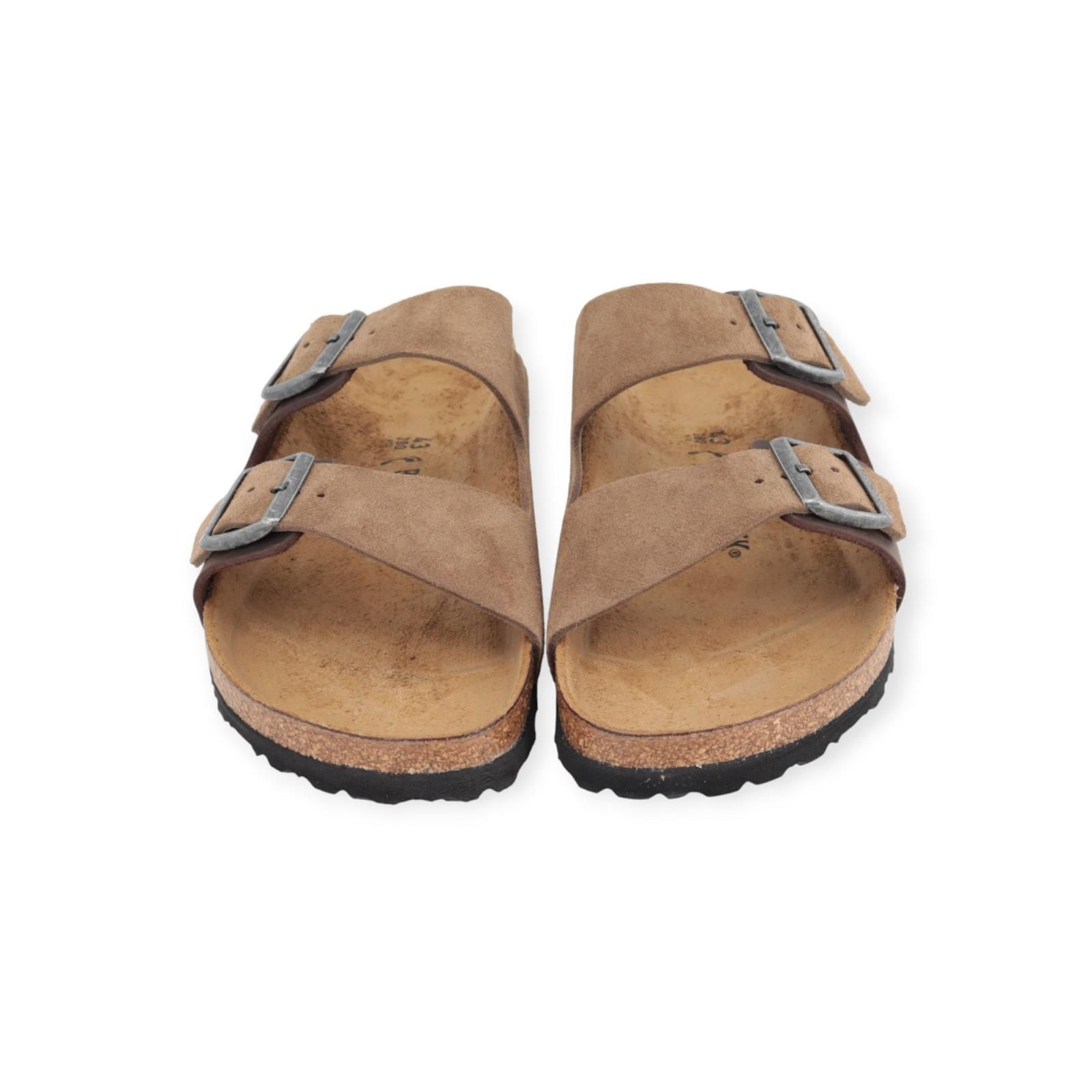 Arizona BS (Bettung Soft) slipper van Birkenstock voor heren. Deze slipper overtuigt door zijn goede pasvorm en zijn nonchalant, natuurlijk design. Het bovenmateriaal is in bruine nubuck met zacht suède die zeer zacht en soepel aanvoelt. Het aangename soft-voetbed zorgt voor extra comfort.