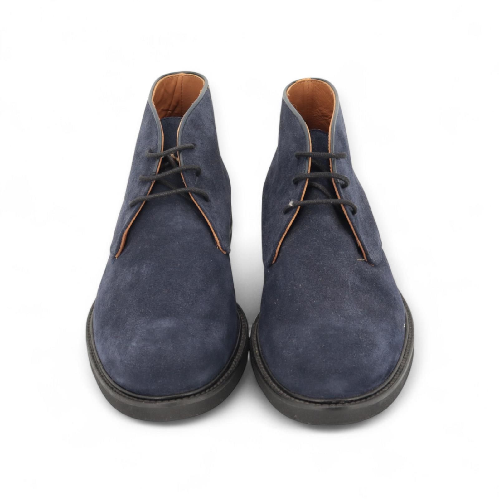 Enkellaars Dexter van CTWLK voor heren. Deze enkellaars is in blauw suède en met zwarte veters. Is op een lichte zwarte antislipzool.